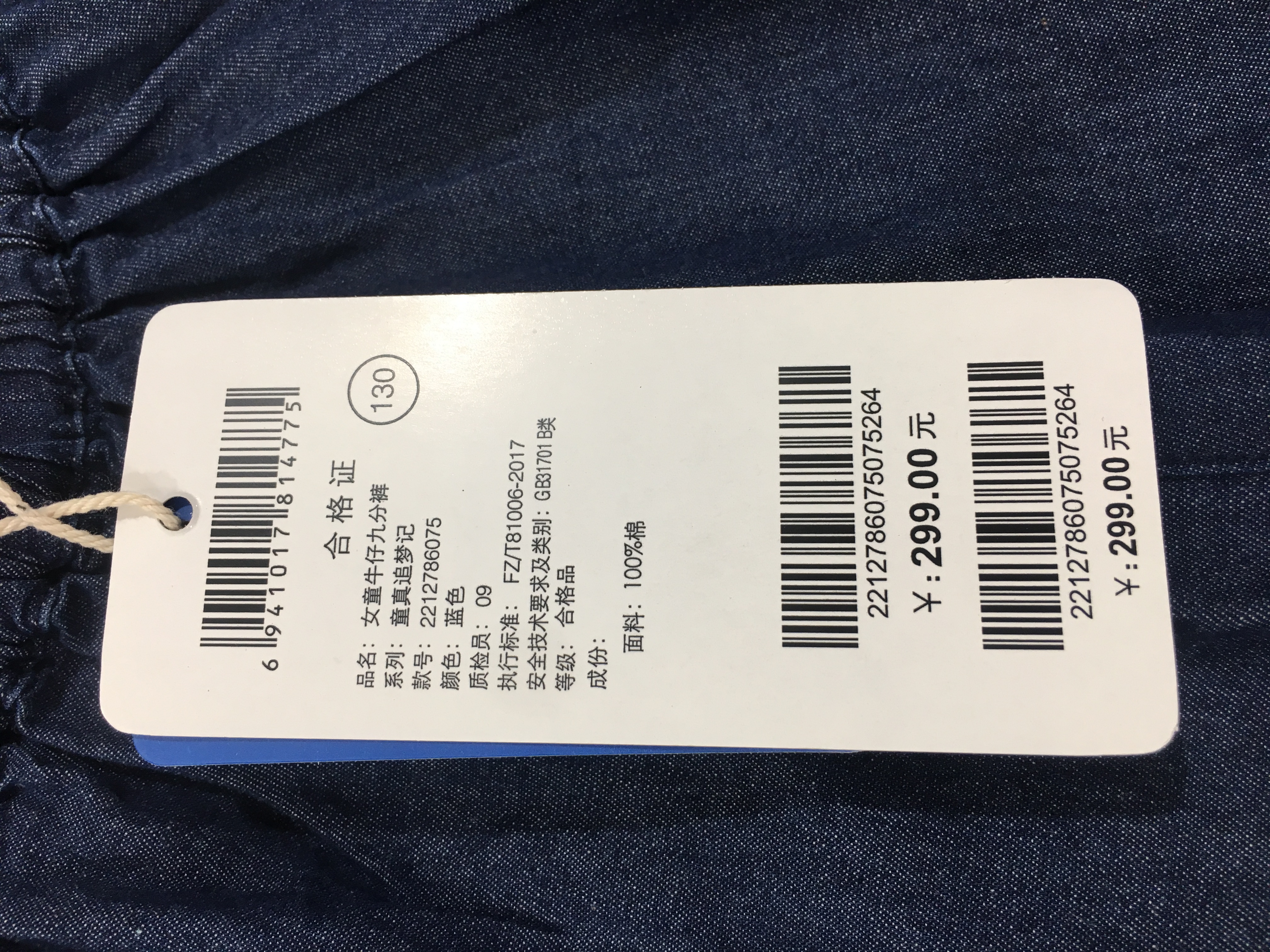 NEEZA乐鲨女童牛仔九分裤2212786075