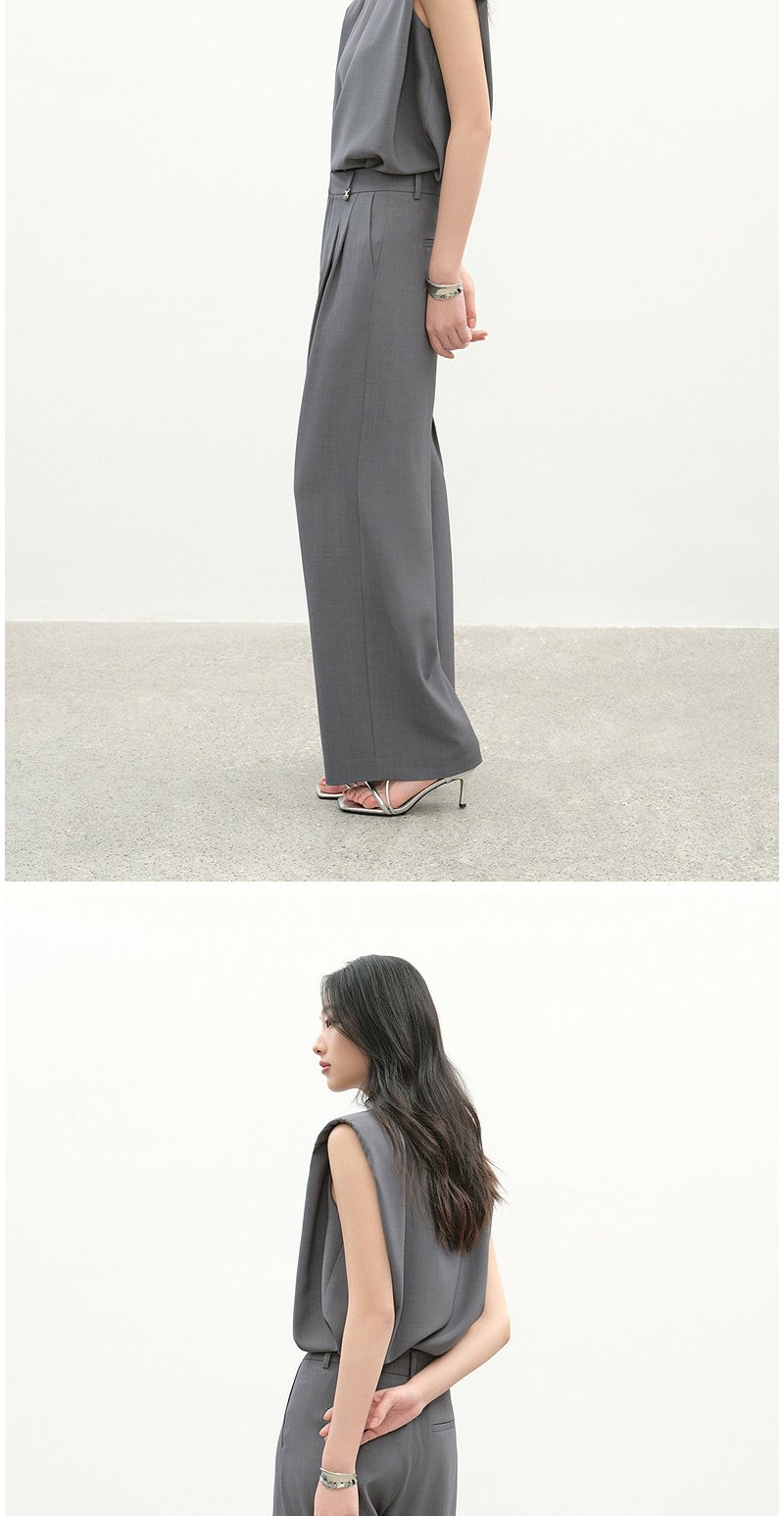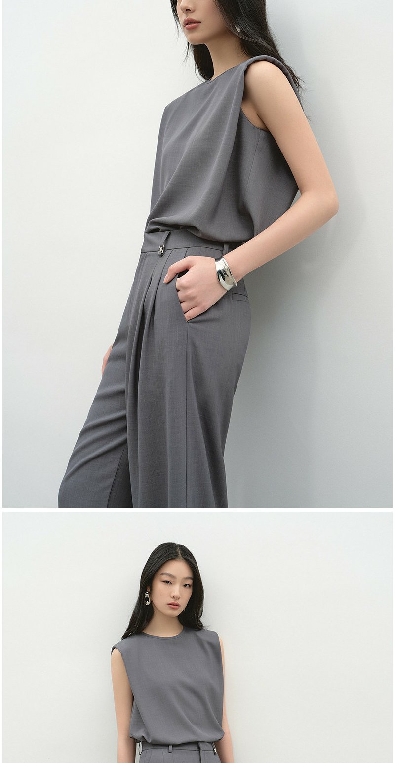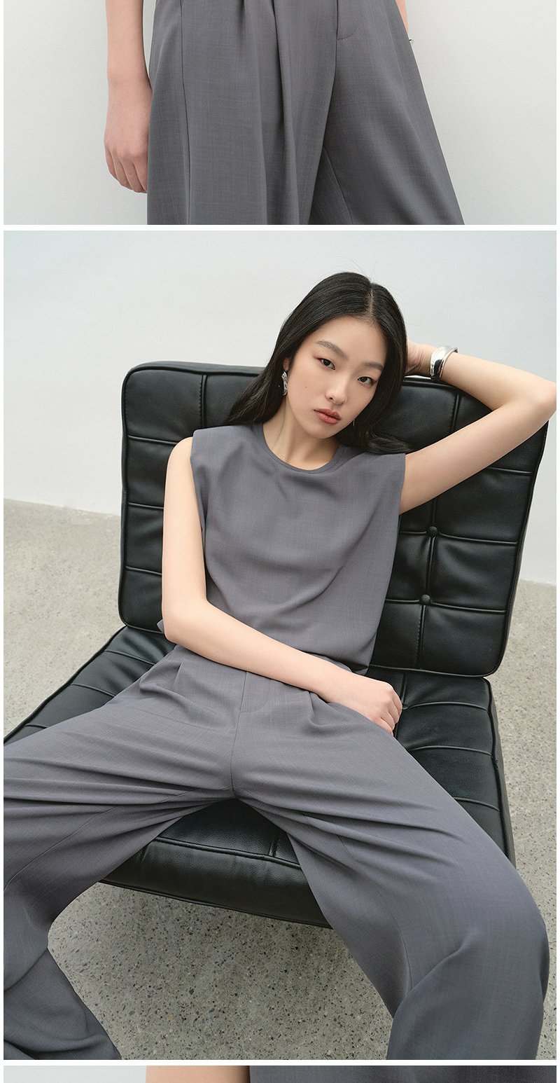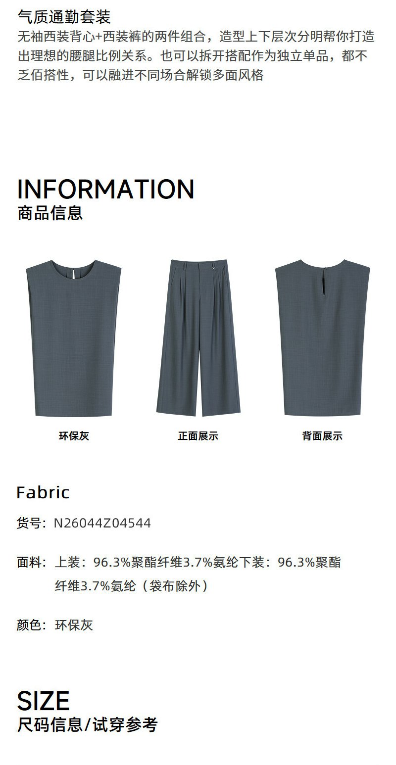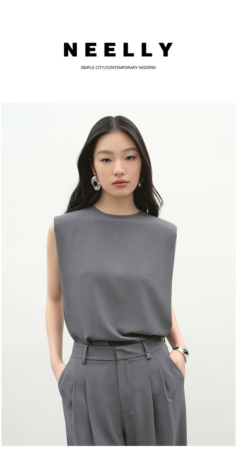 NEELLY纳俪商场同款夏季新款气质通勤套装女经典灰色系背心两件套N26044Z04544