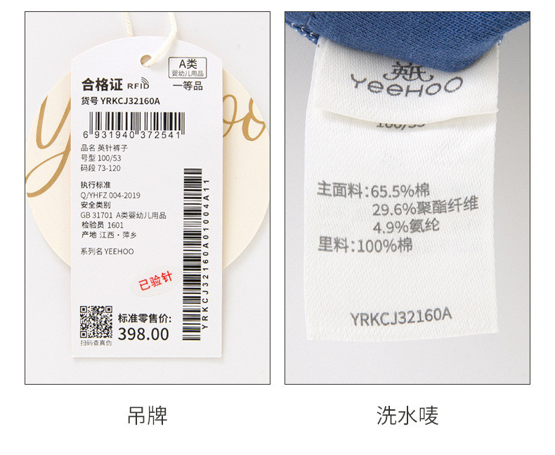 英氏童装牛仔长裤儿童裤子男宝宝休闲裤外穿秋裤YRKCJ32160A