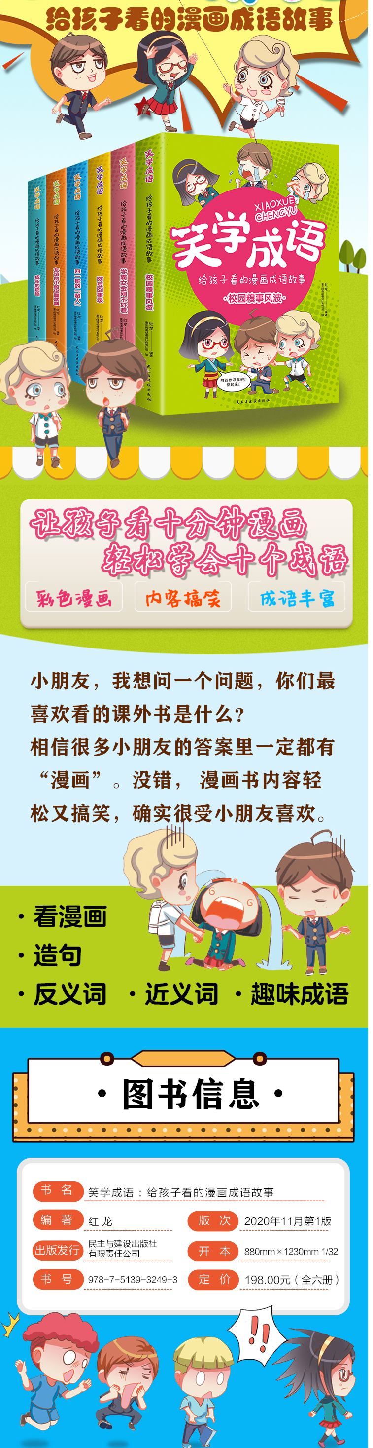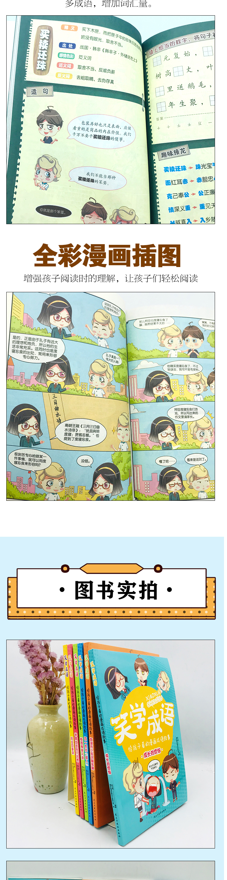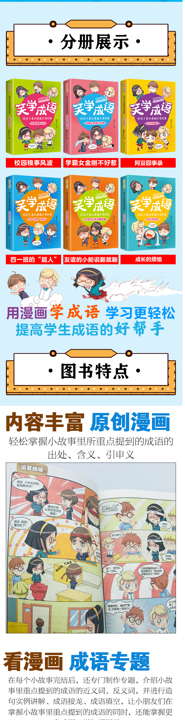 给孩子看的漫画成语故事书 全套6册笑学成语6-8-12岁儿童趣味成语漫画书中华成语故事书看漫画学成语小学生二三四五六年级课外书籍