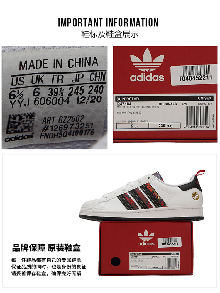 Adidas/阿迪达斯三叶草 21年春夏新品 情侣款 SUPERSTAR 低帮 舒适 贝壳头 休闲鞋 Q47184