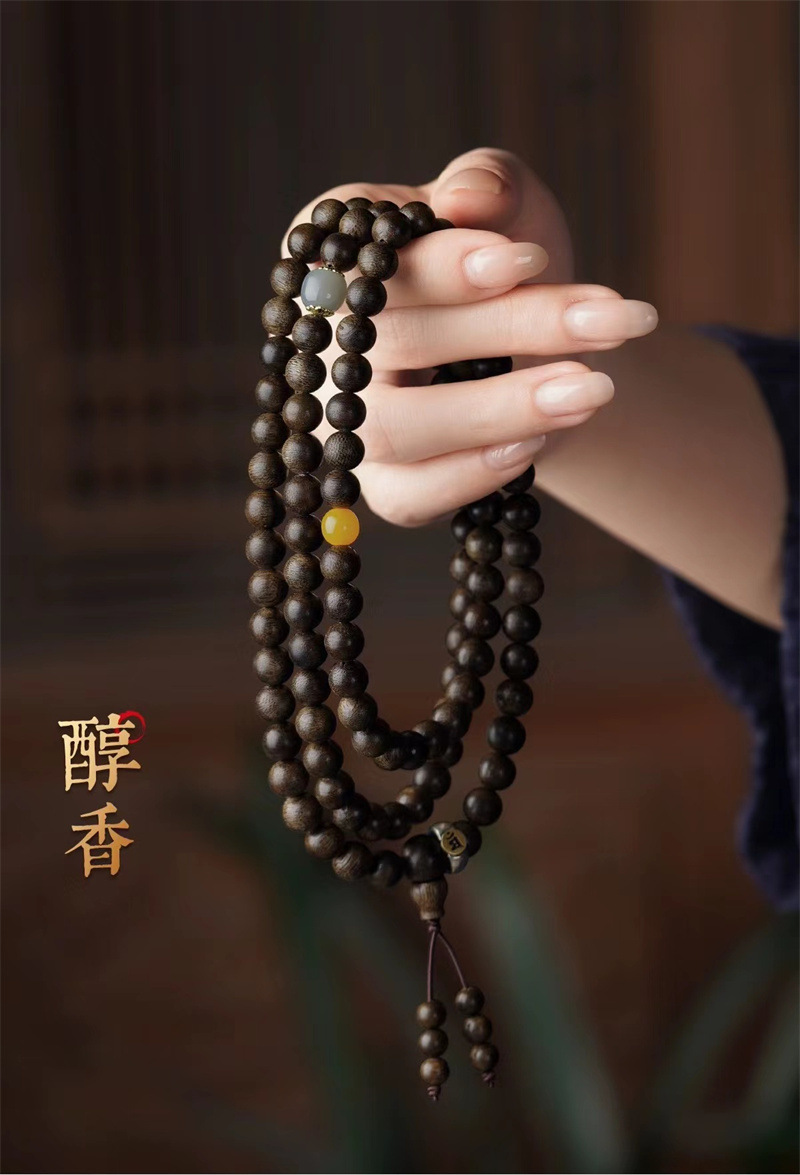 六鑫珠宝 天然芽庄奇楠沉香手串108颗 男女款念珠手串