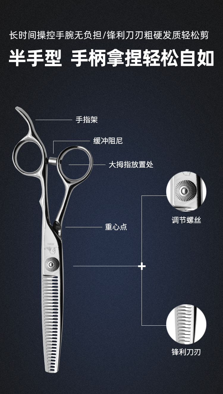 ZEBRA斑马牙剪Z69 去发量40%-50%男发逆刃牙剪 鹿角齿宽齿型设计适用于男发修剪,剪切有力效果自然。