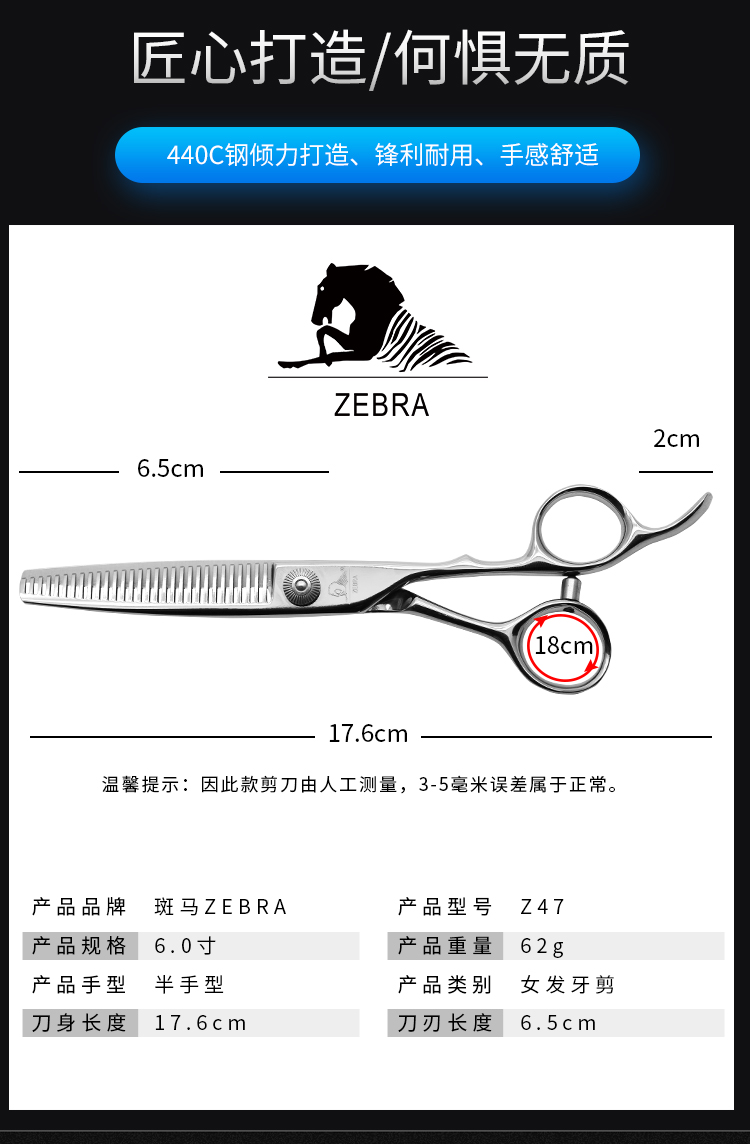 ZEBRA斑马专供款剪刀Z47 10-15% 女发牙剪 美发工具
