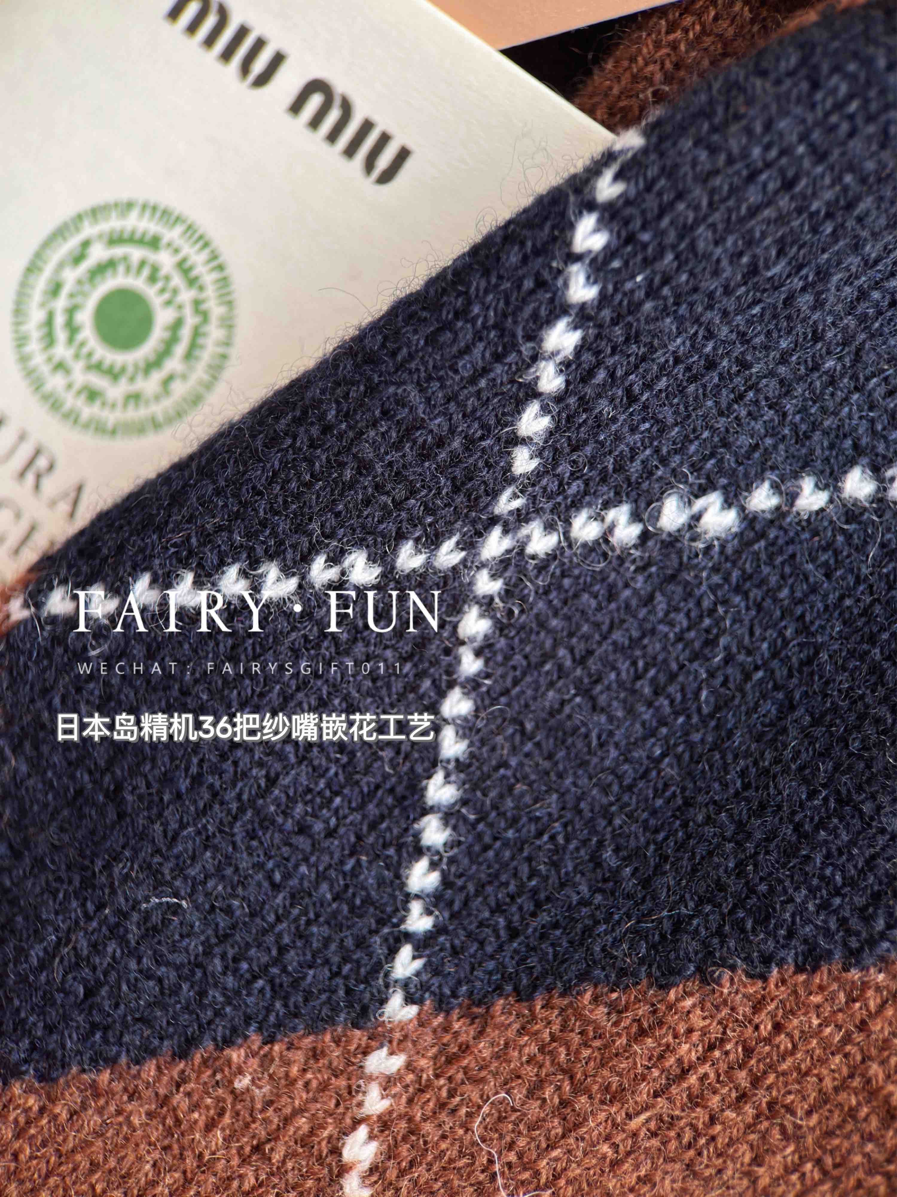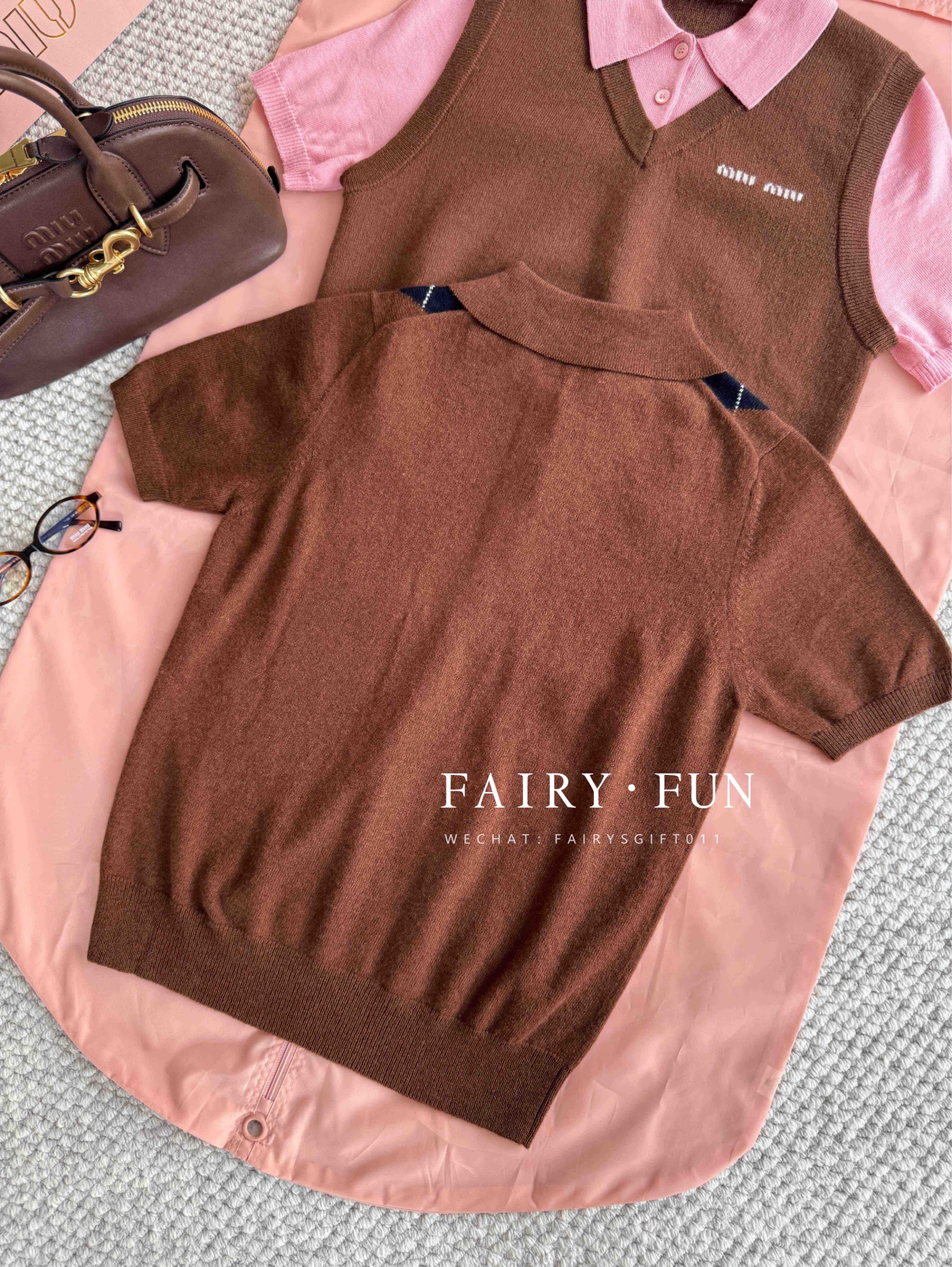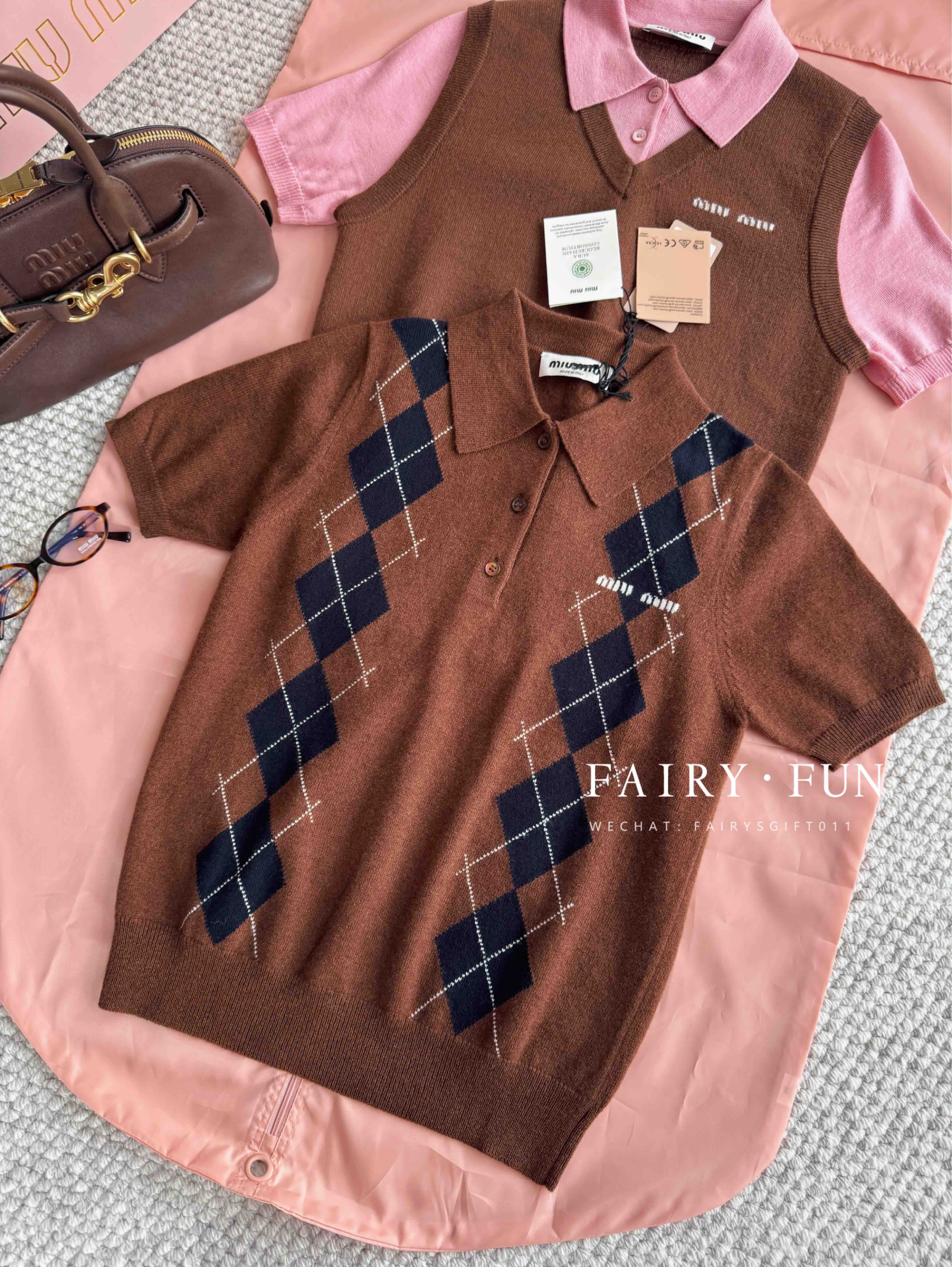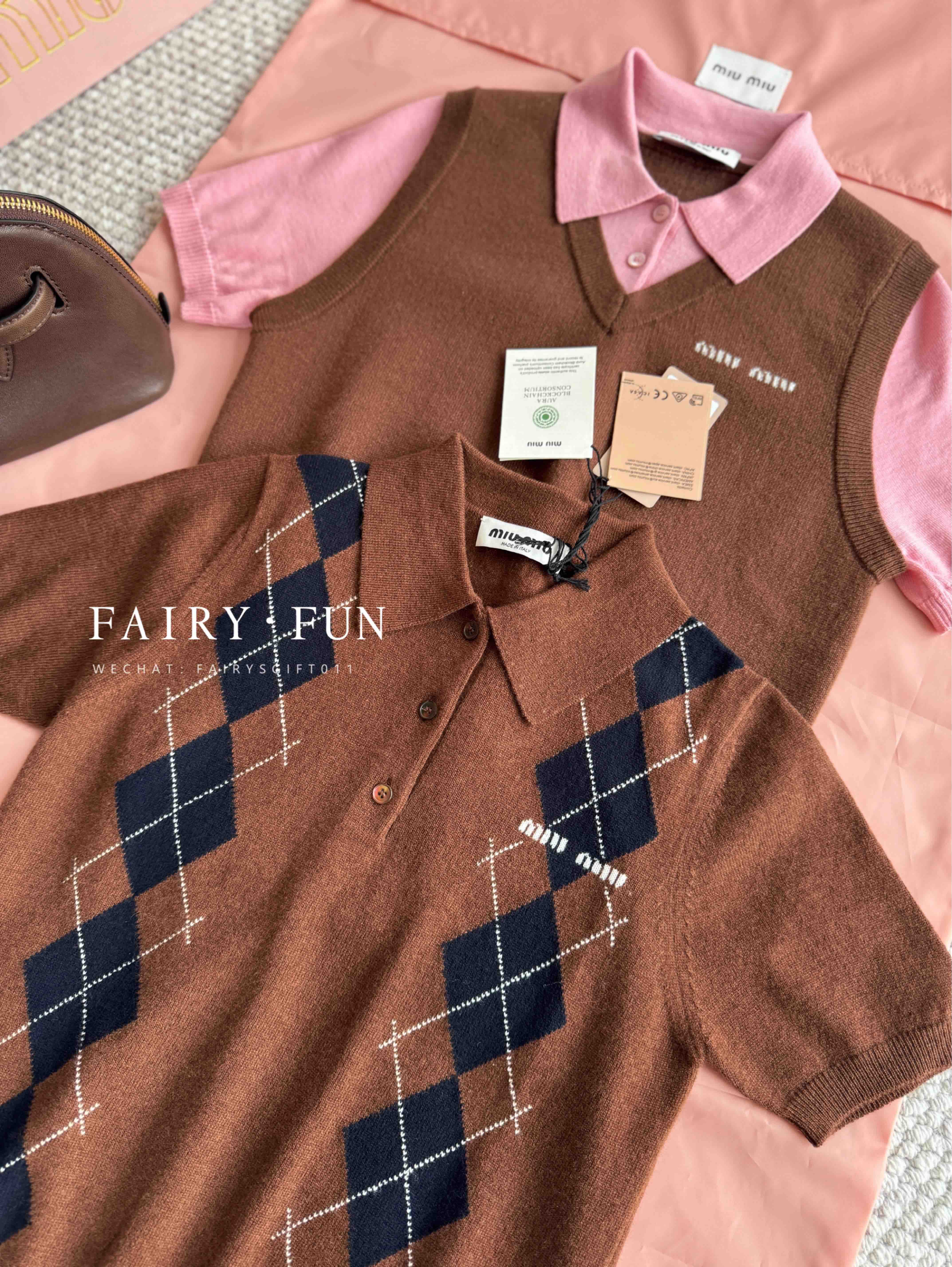MIU-S 棕色菱格羊绒Polo.