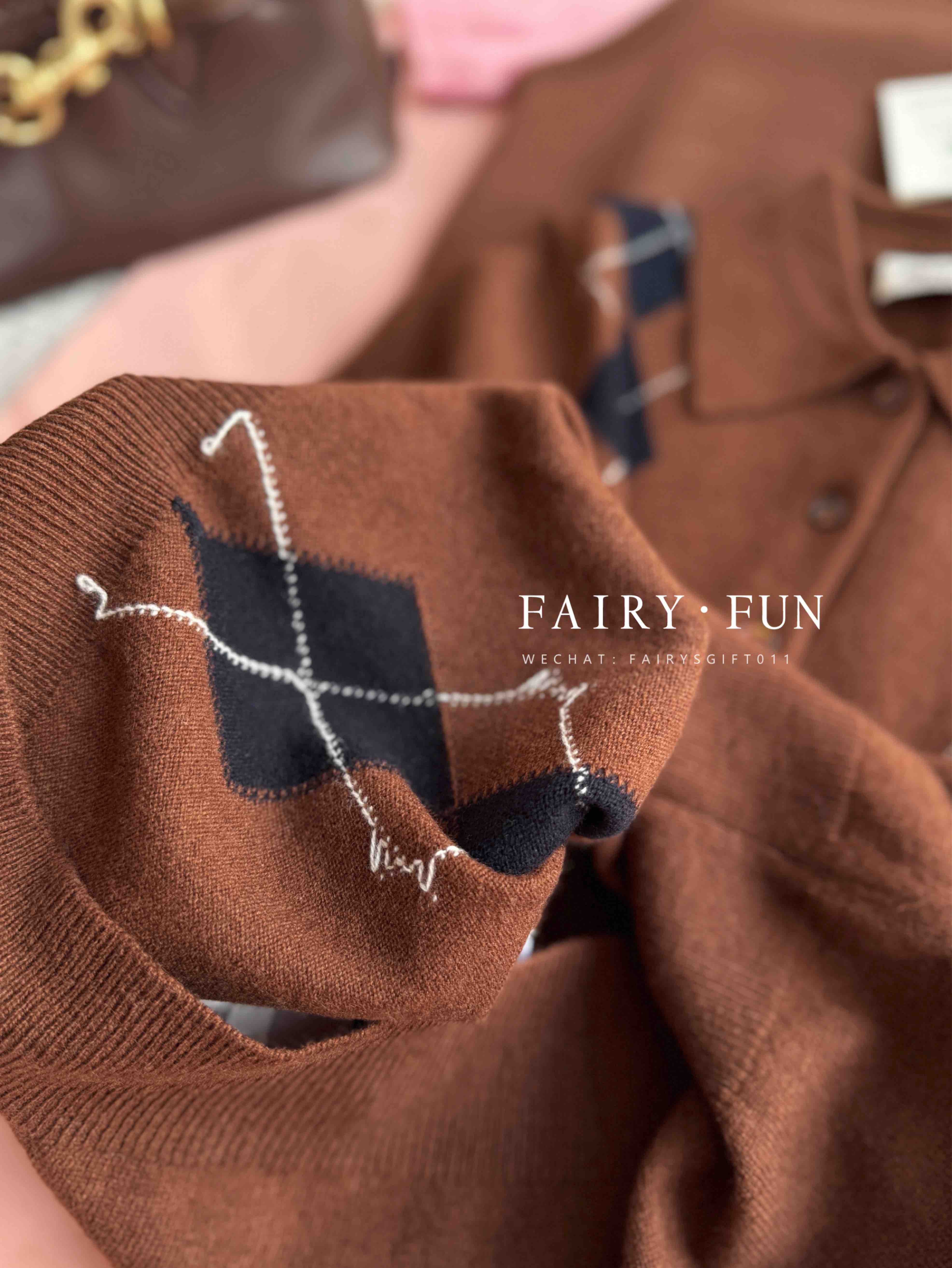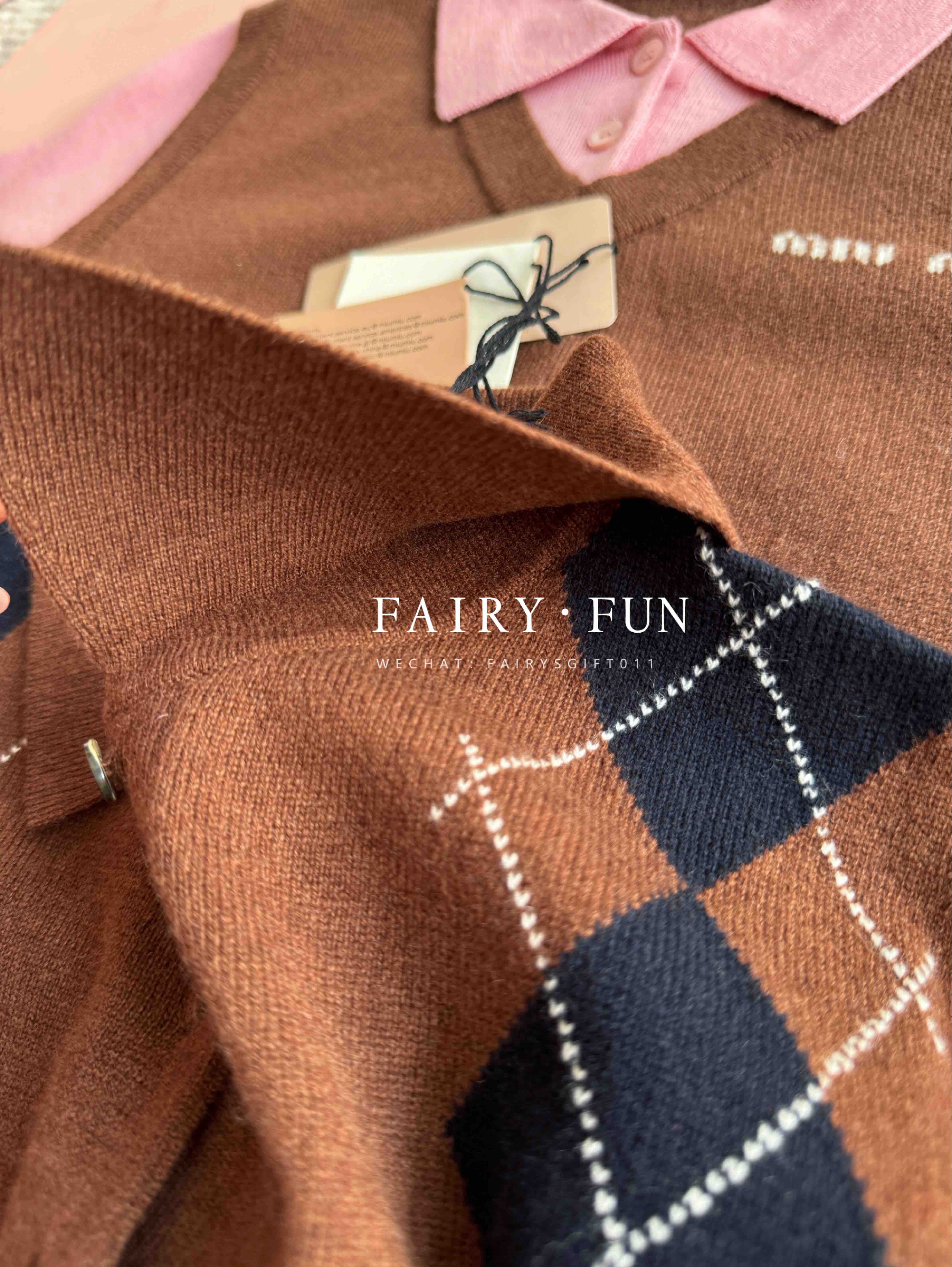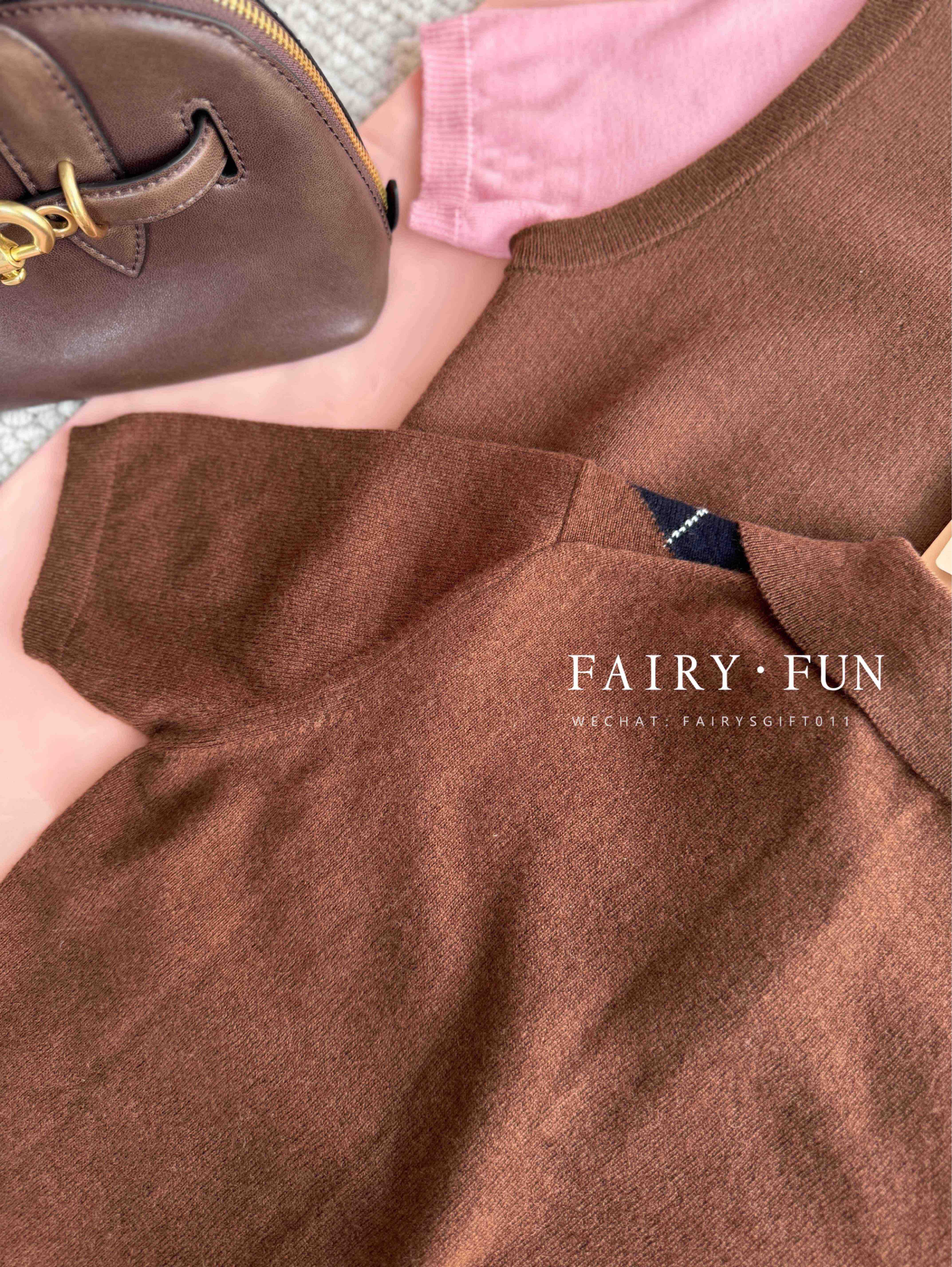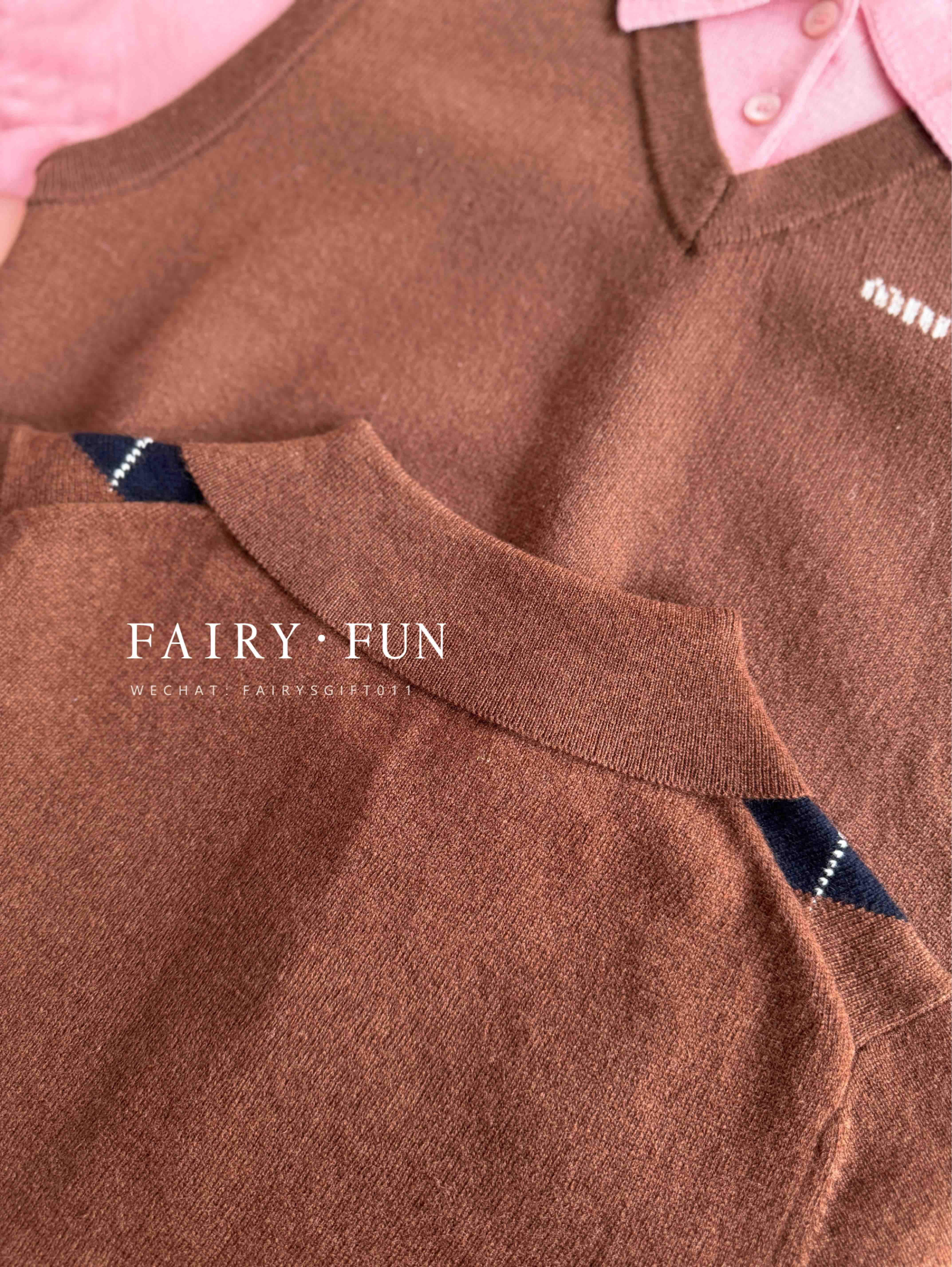 MIU-S 棕色菱格羊绒Polo.
