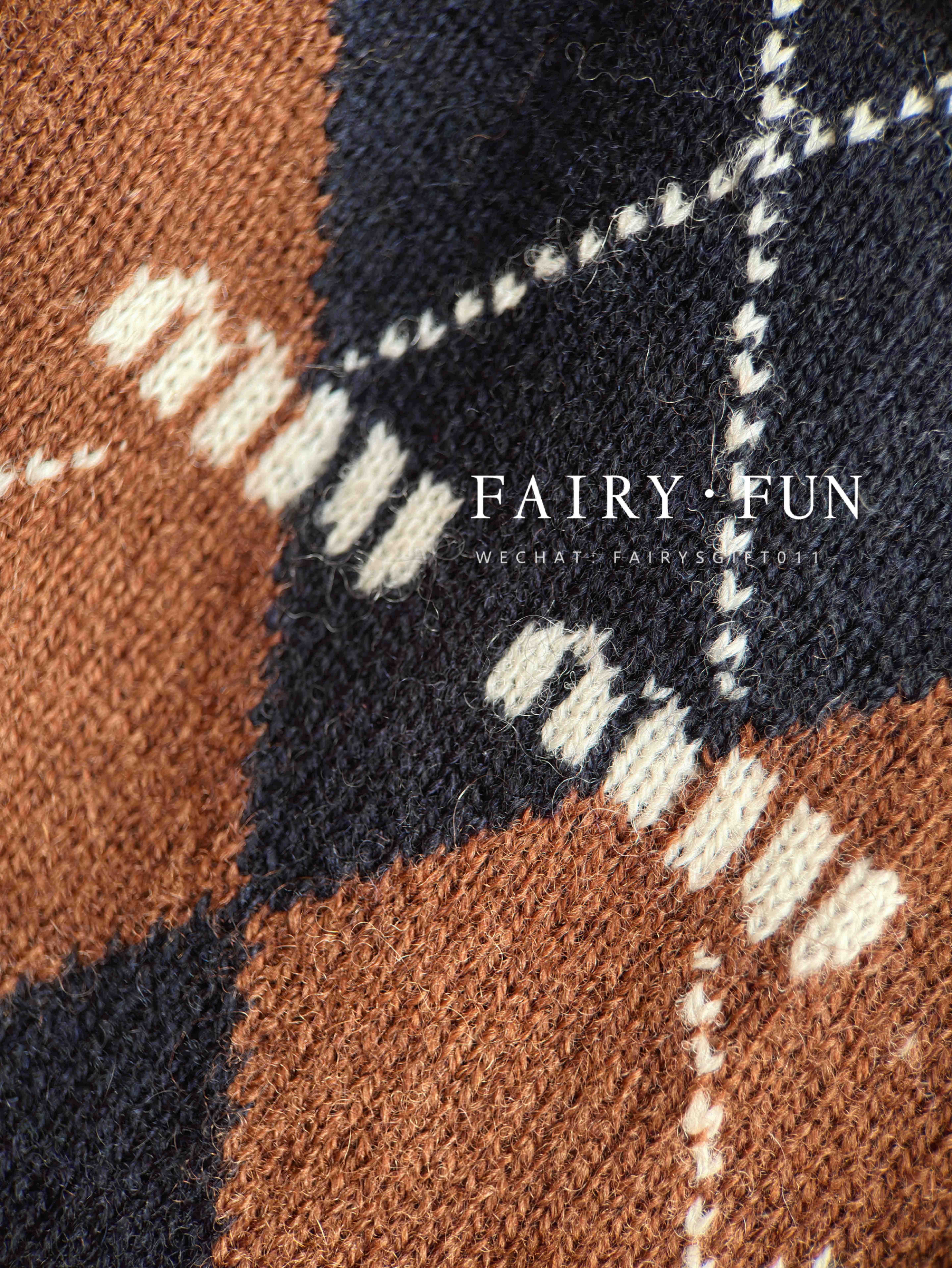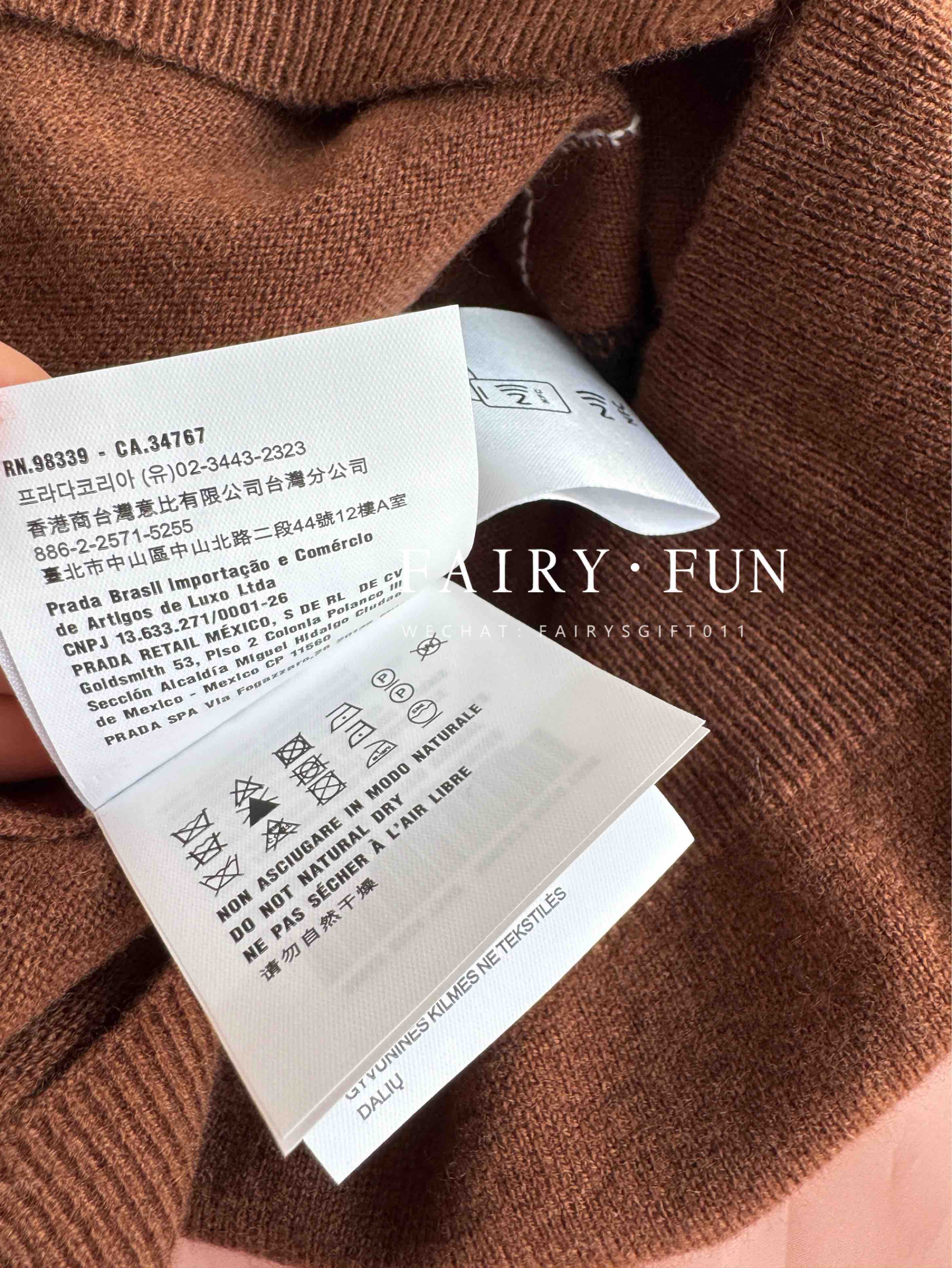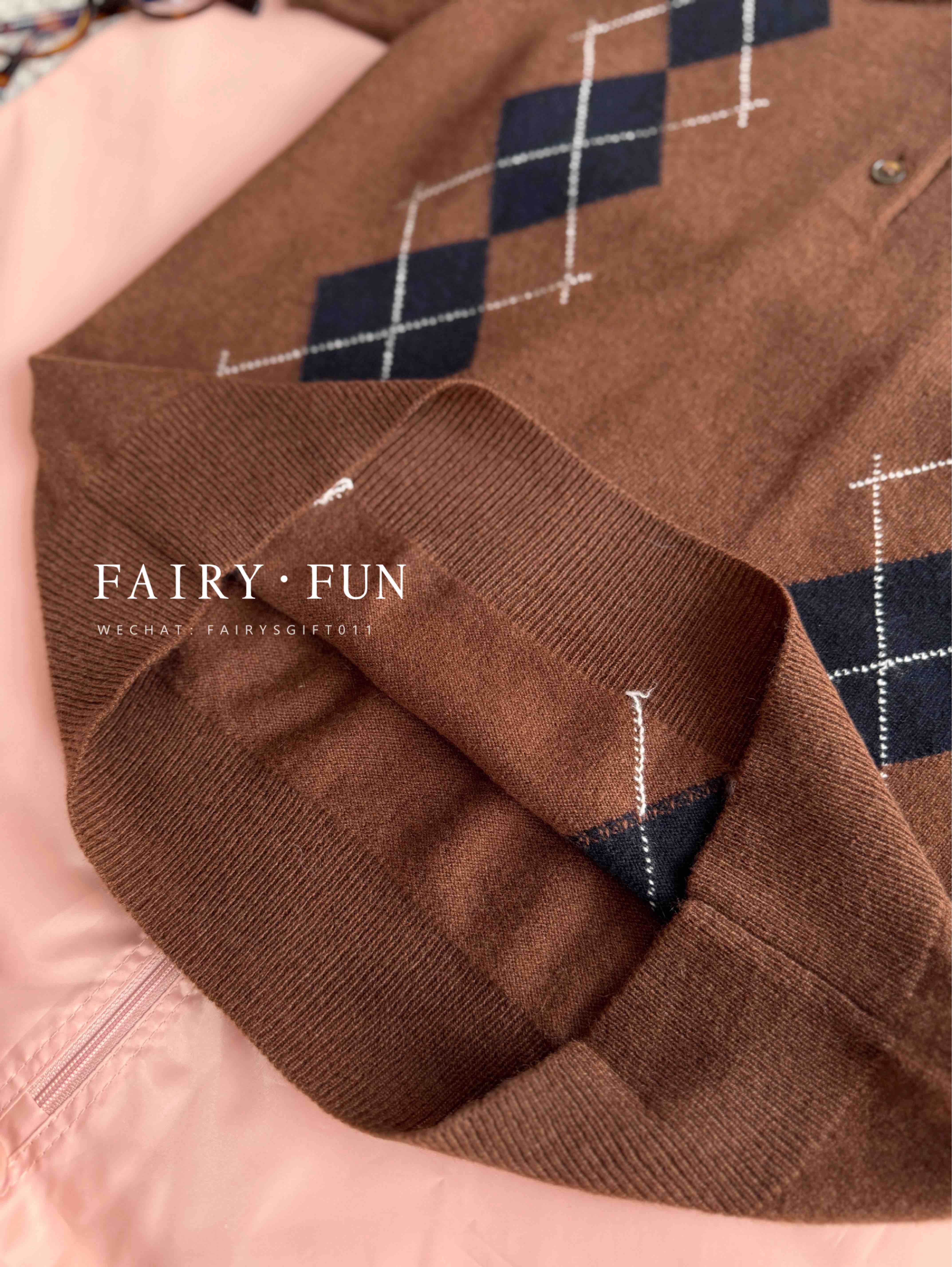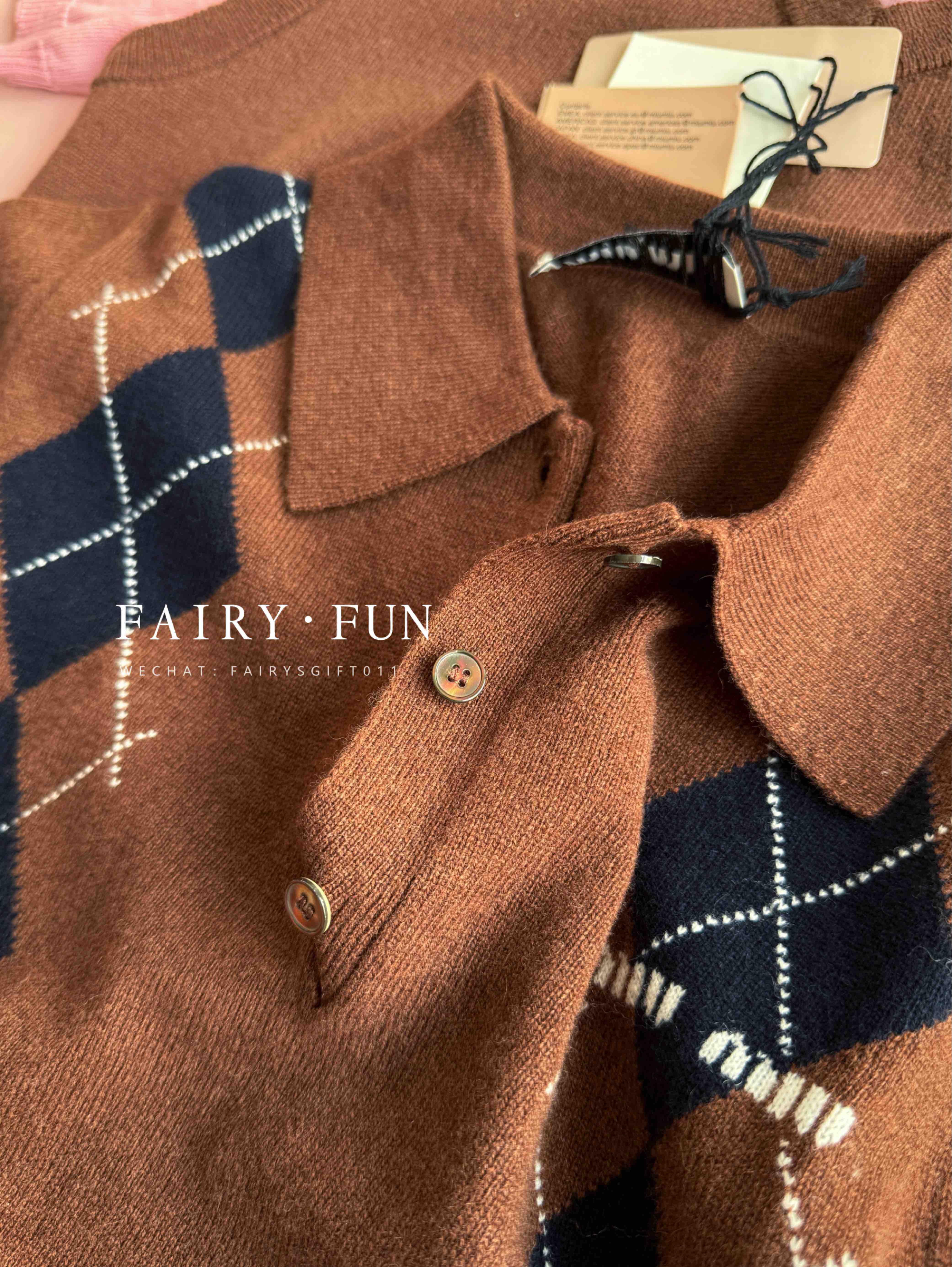 MIU-S 棕色菱格羊绒Polo.