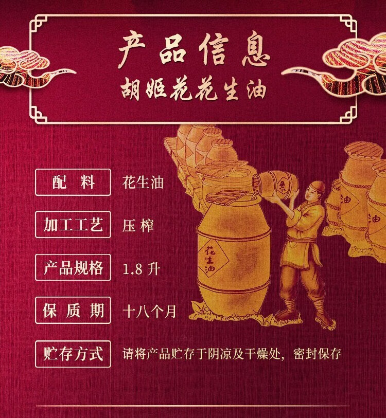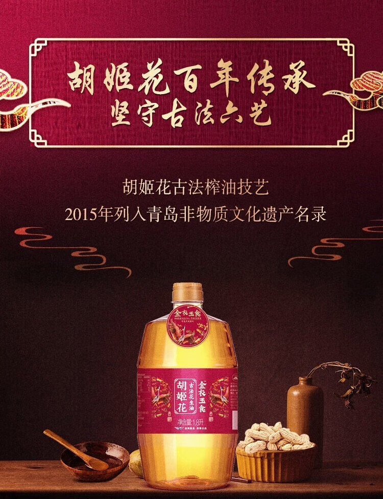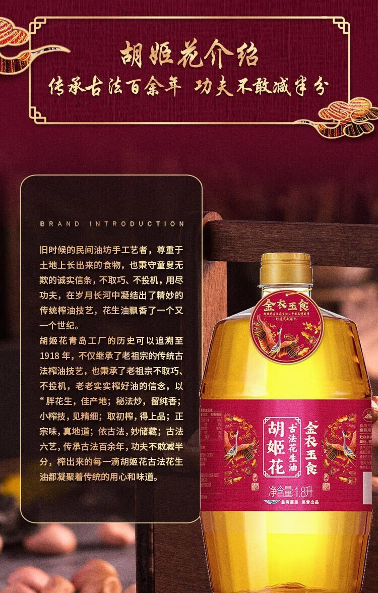 【发出后不支持拦截退货】胡姬花 金衣玉食古法花生油 1.8L