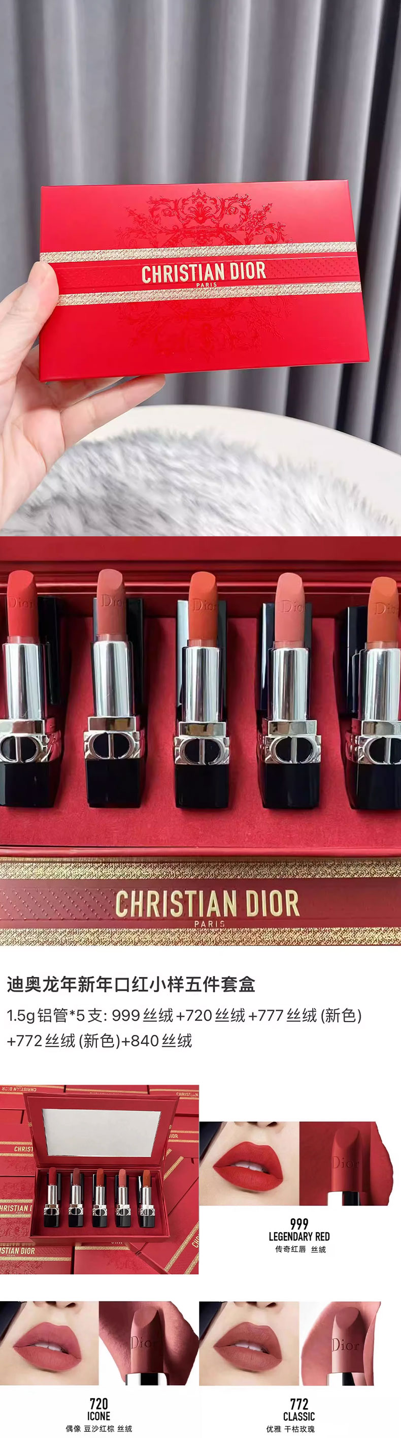 Dior/迪奥烈焰蓝金口红五件套1.5g*5只礼盒装 送礼袋 A-5624(效期28-5)