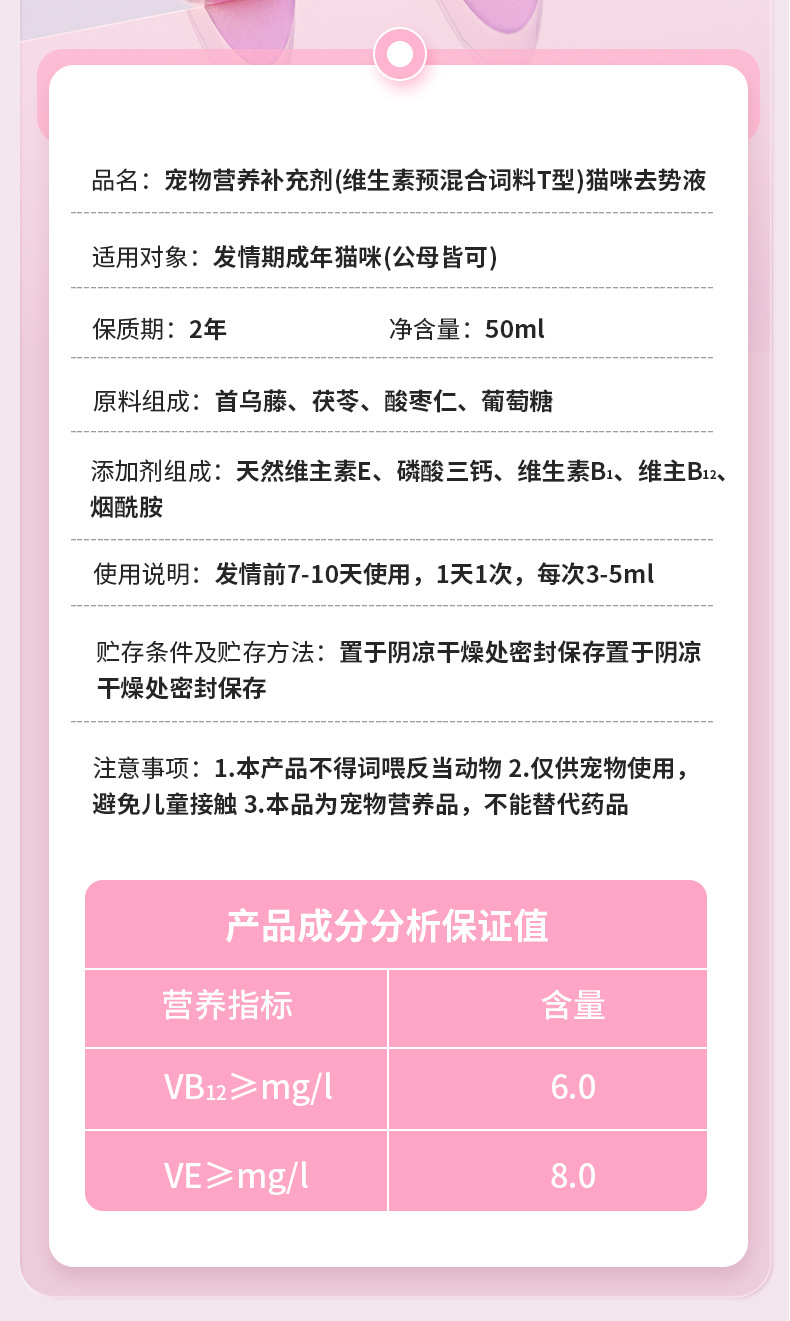 宝莱美露猫咪缓情液50ml发情期成年猫嚎叫焦躁营养液公猫母猫通用