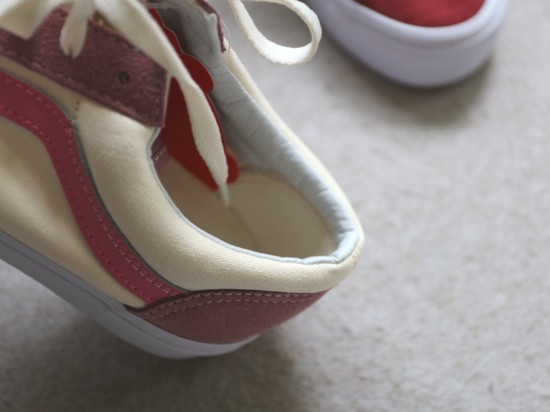 鞋身内里 是布料的 后跟一圈是皮的 可以缓解磨脚情况