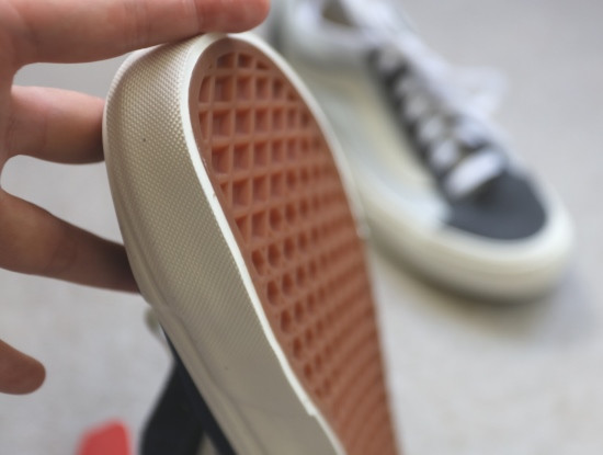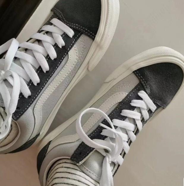 鞋身帆布的厚度 跟OS差不多 但 拼接的是反绒牛皮 OS 拼接是的反绒麂皮