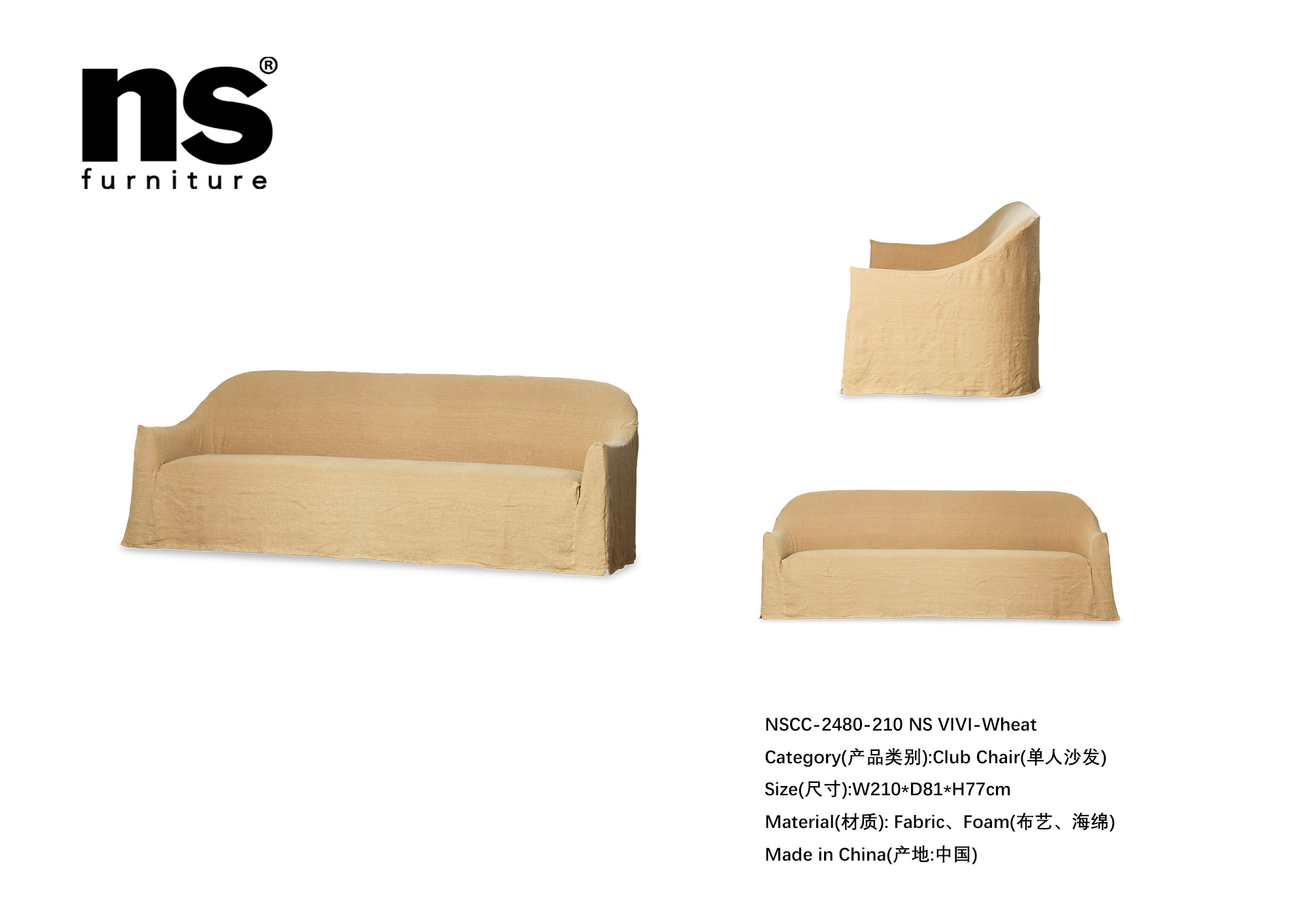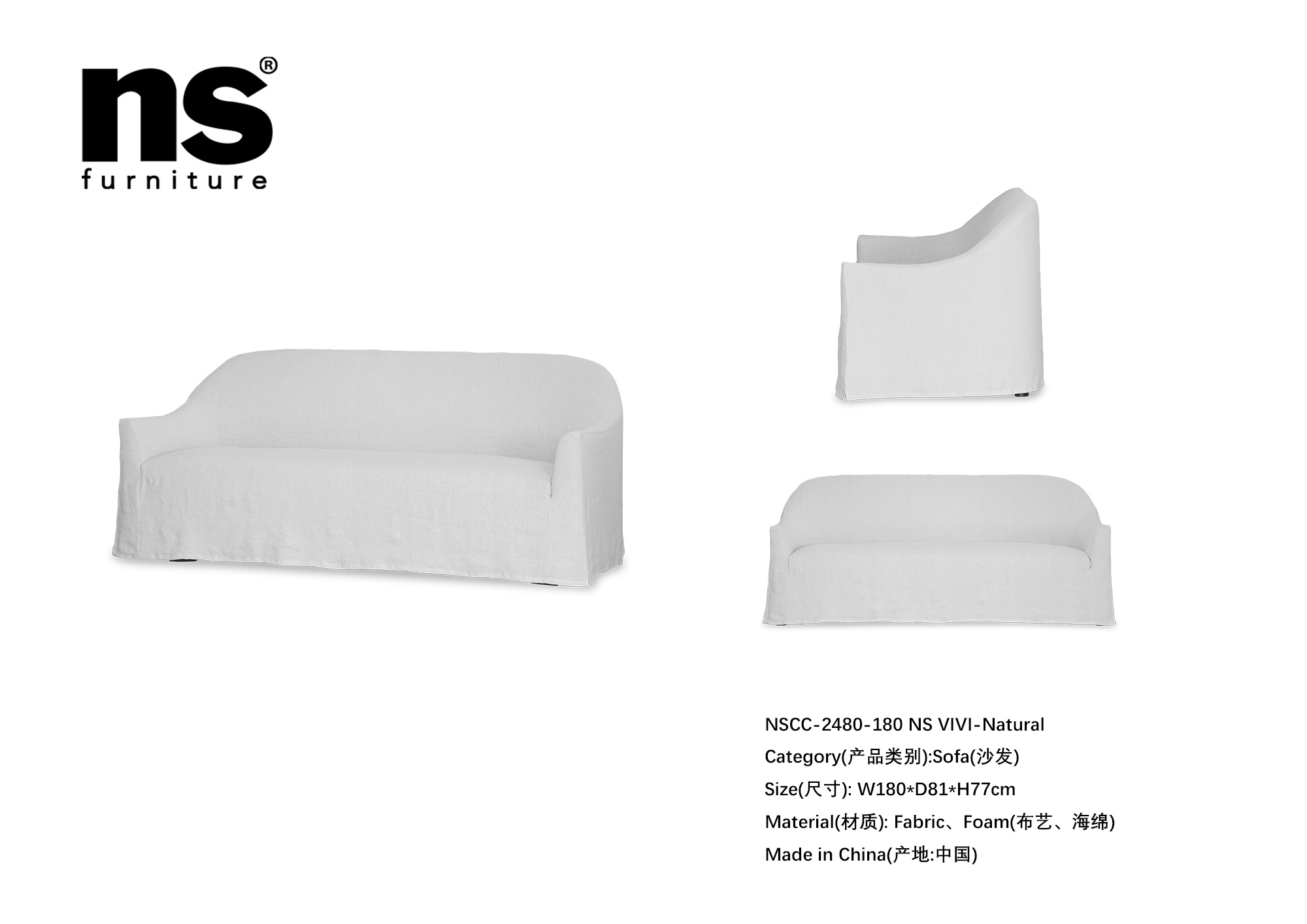 NS家居ns furniture软包活套布艺三人位沙发NSCC-2480-210