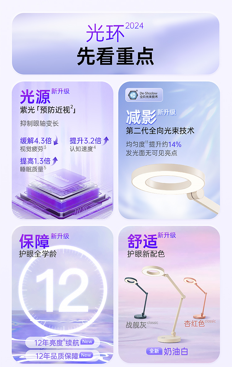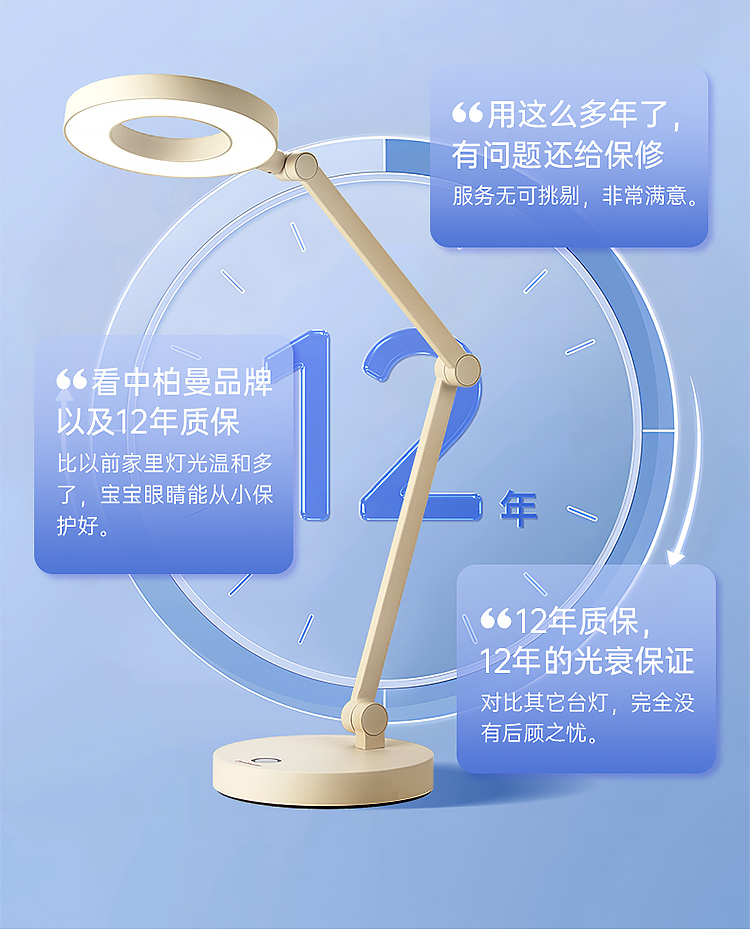 10年性能质保,1 年内性能问题包换。(充电产品2年,灯泡5年,护眼台地灯12年)