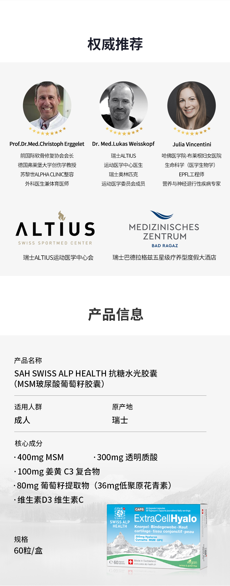【Hedy专属】瑞士抗糖水光盒口服玻尿酸MSM葡萄籽姜黄素