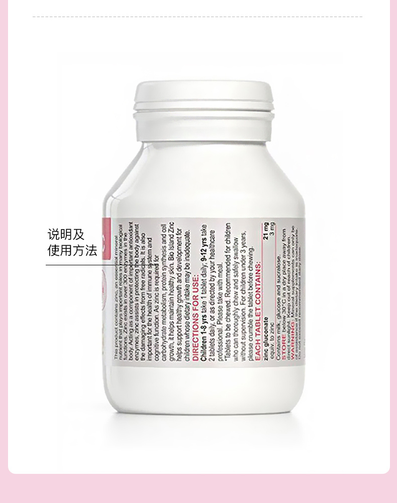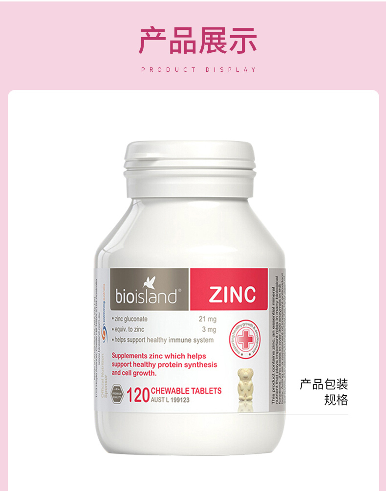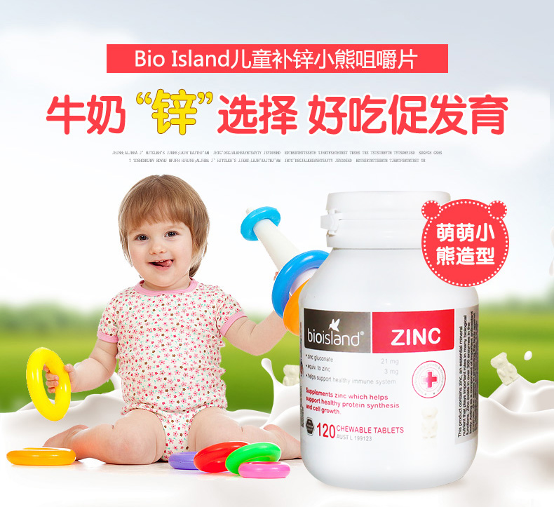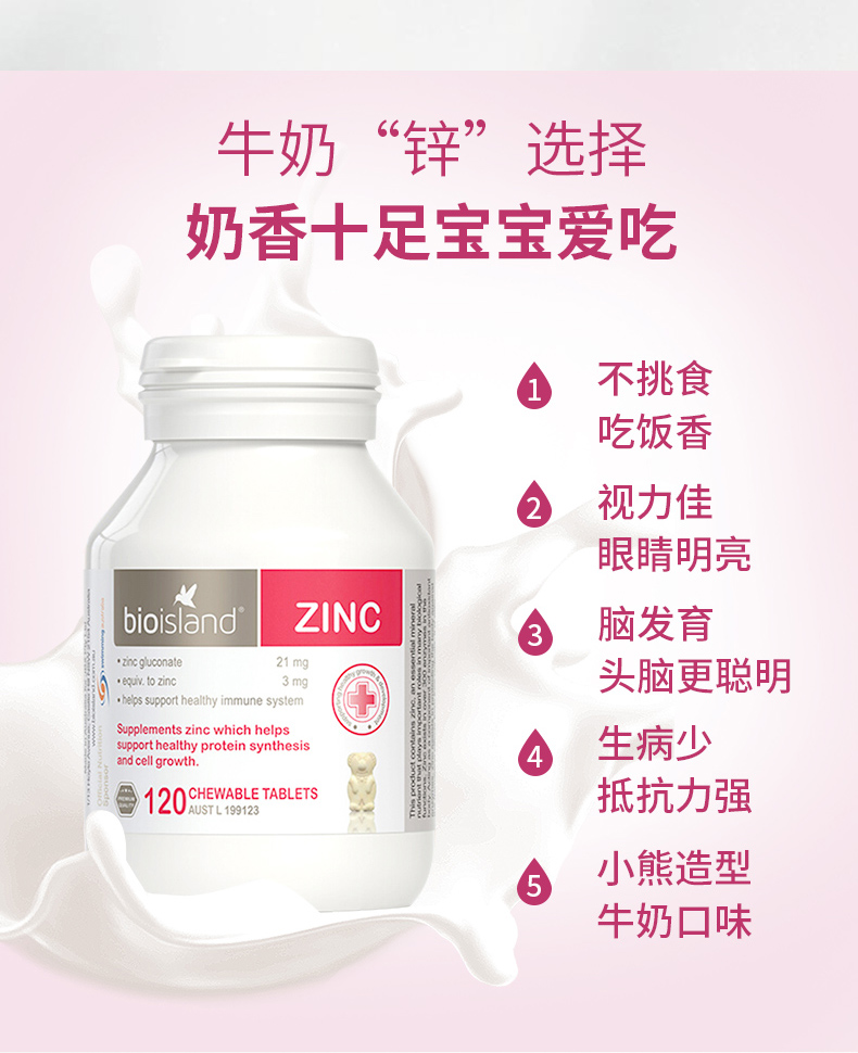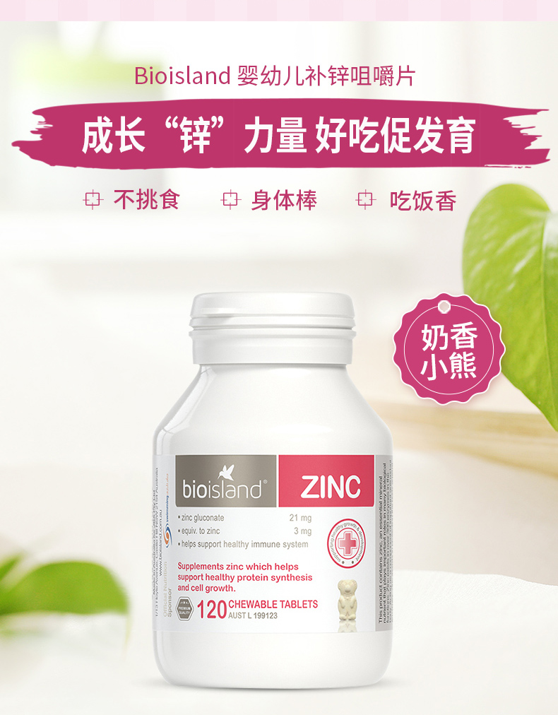 【香港发货】澳洲Bio Island佰澳朗德婴幼儿补锌咀嚼片120粒