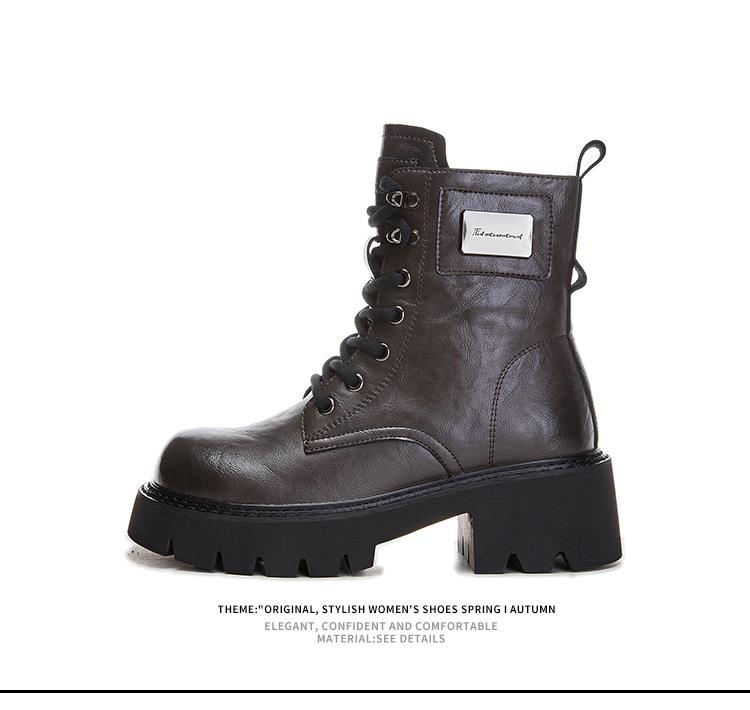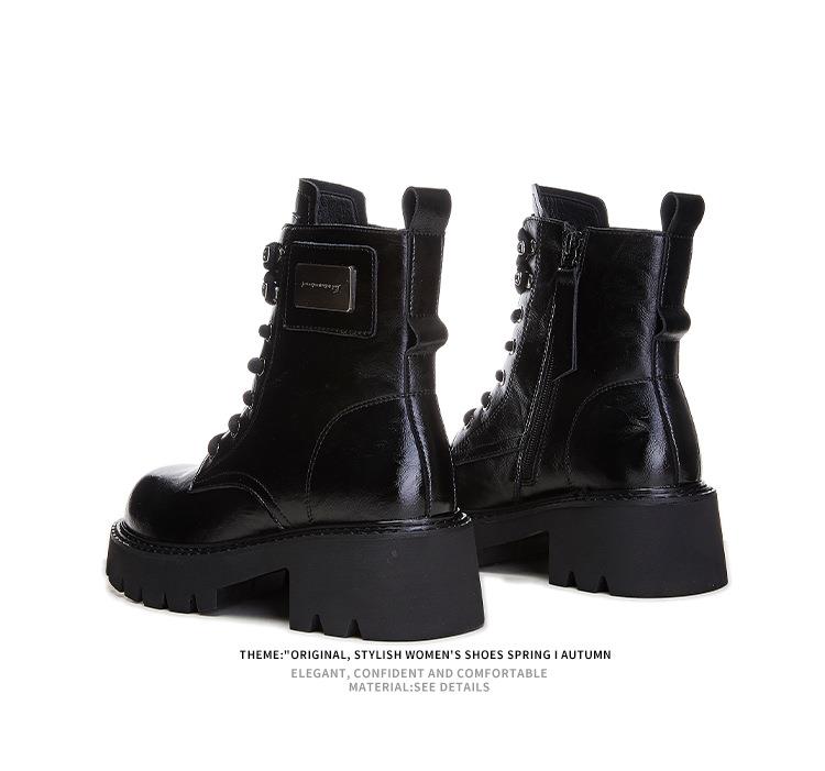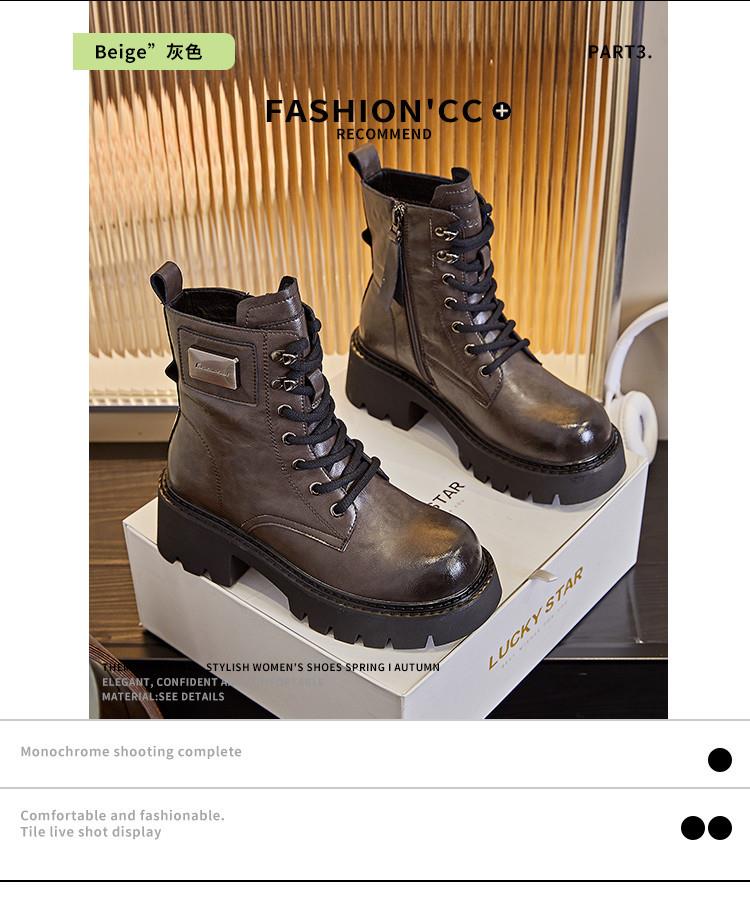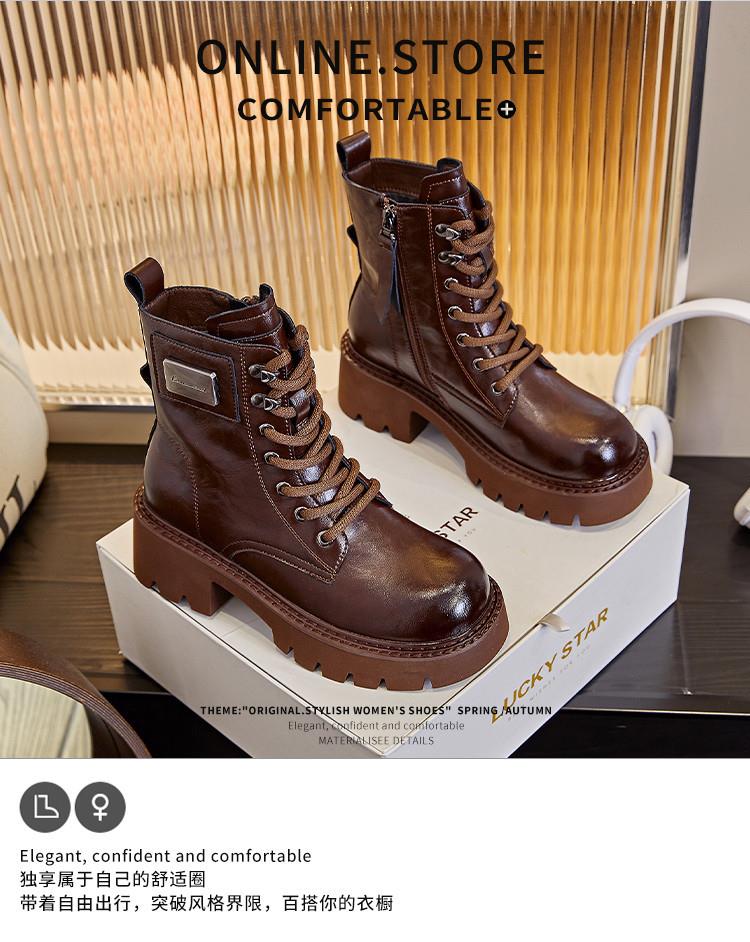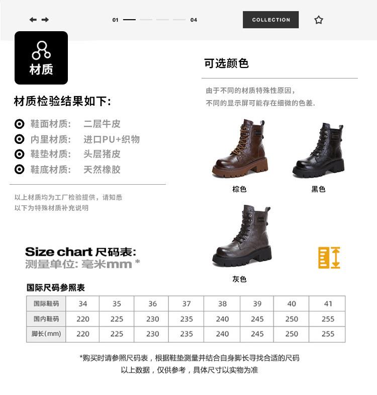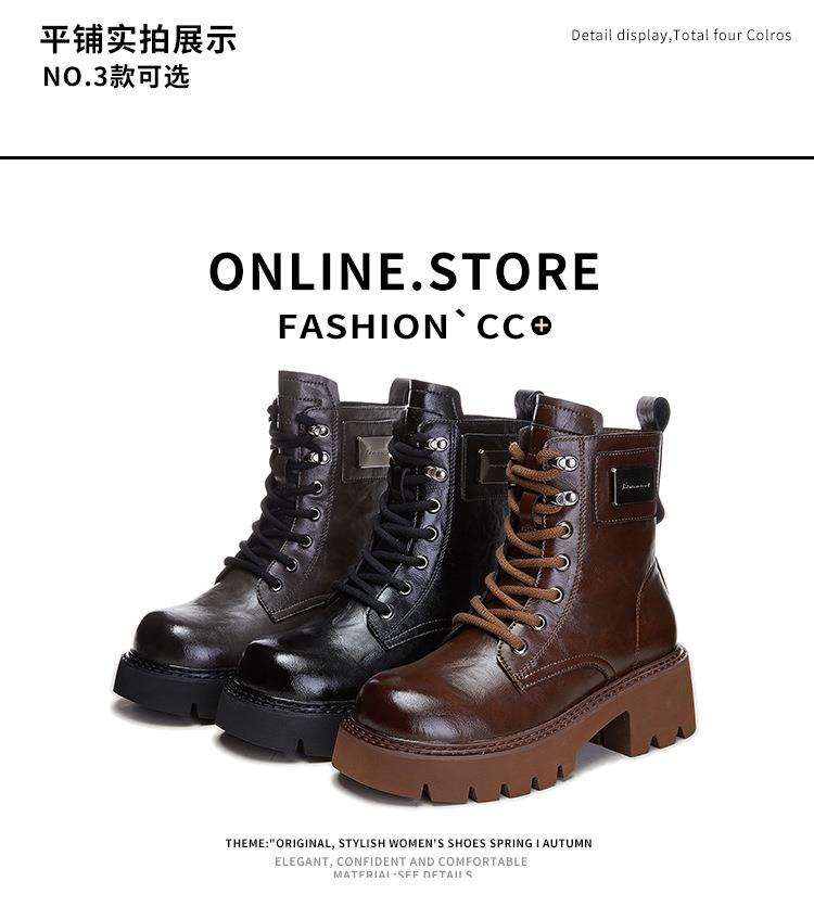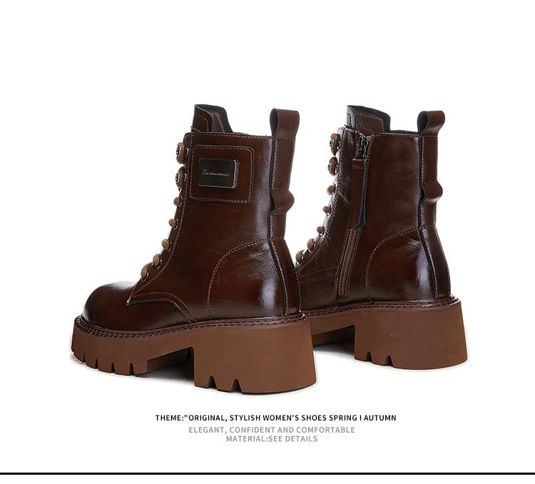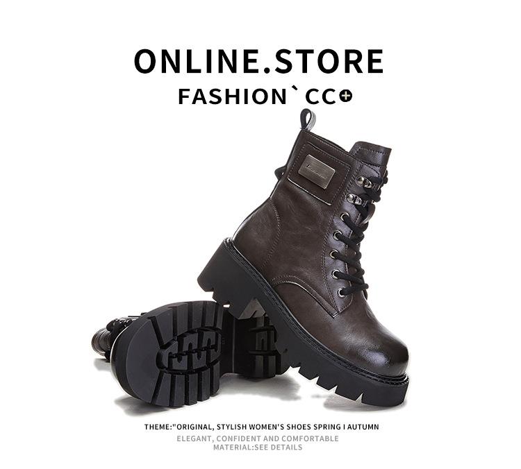 真皮马丁靴女2023秋冬新款美拉德粗跟圆头短靴女复古休闲时尚女靴