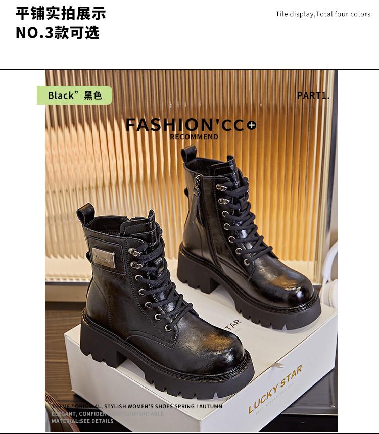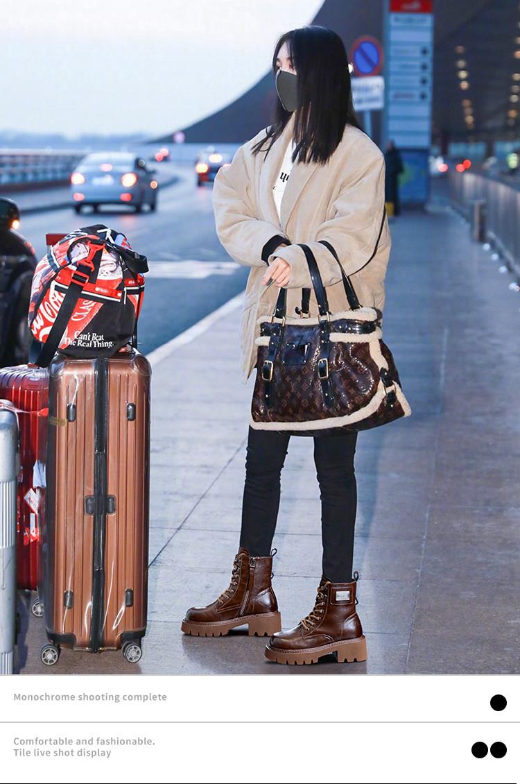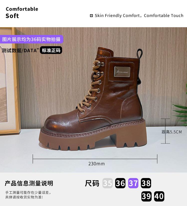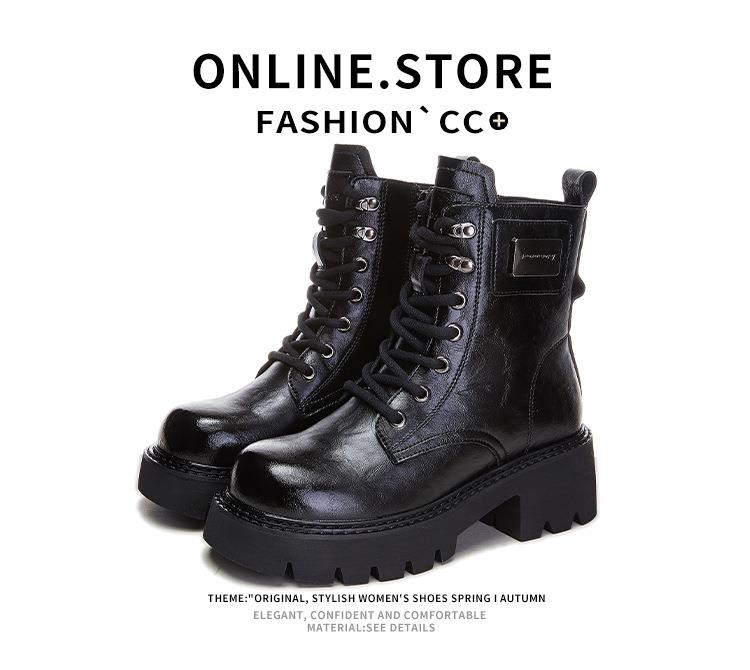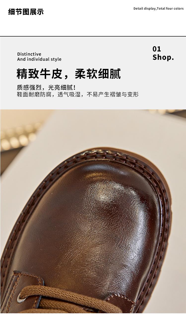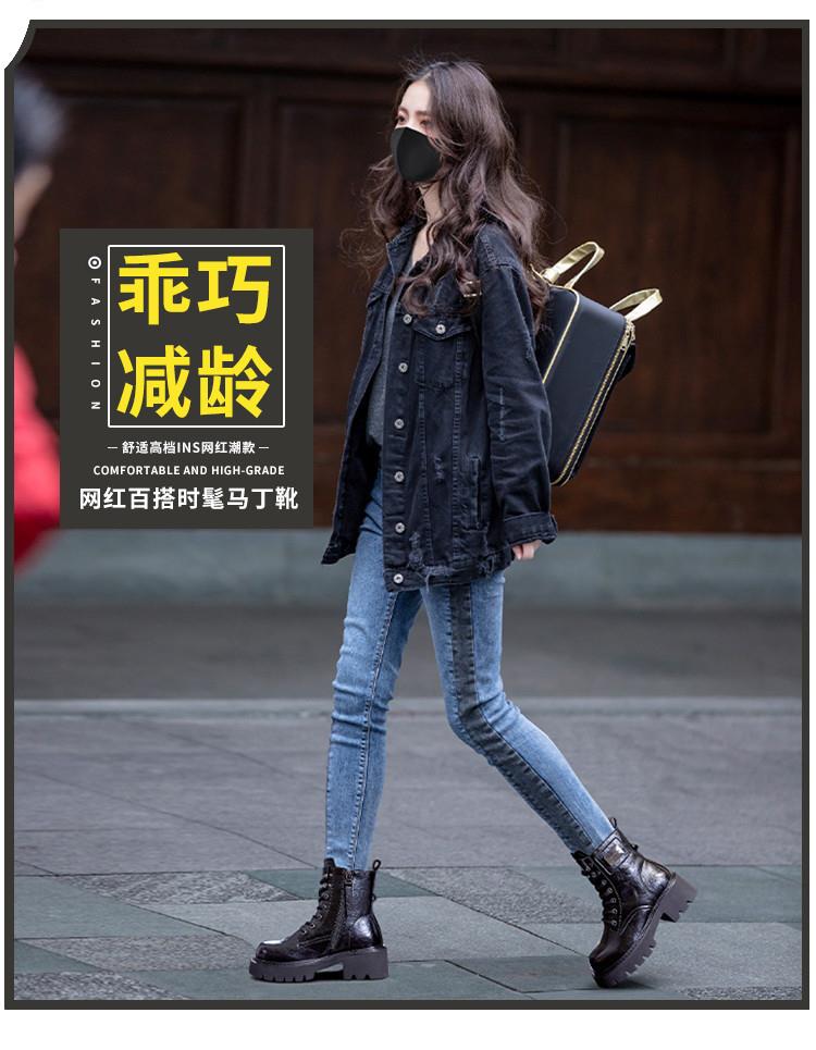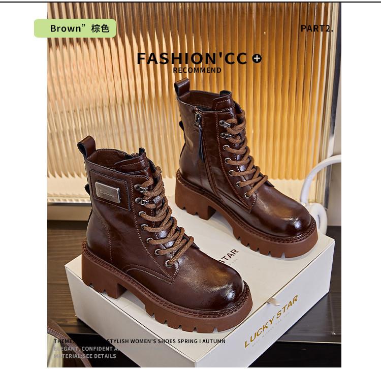 真皮马丁靴女2023秋冬新款美拉德粗跟圆头短靴女复古休闲时尚女靴