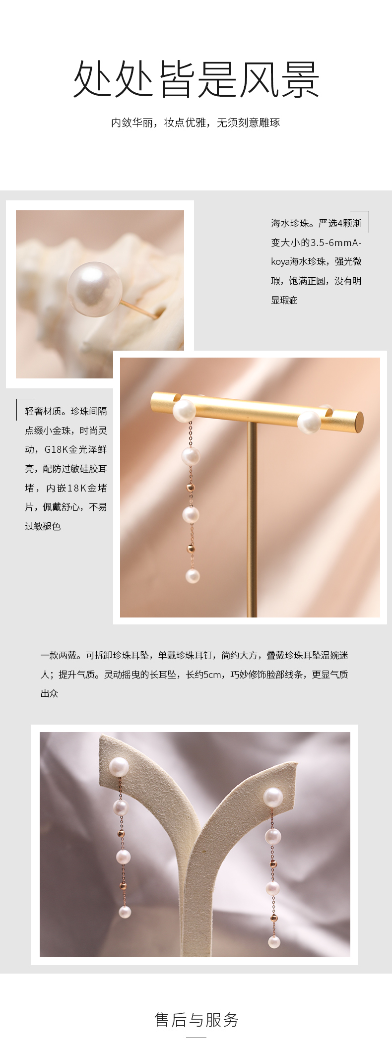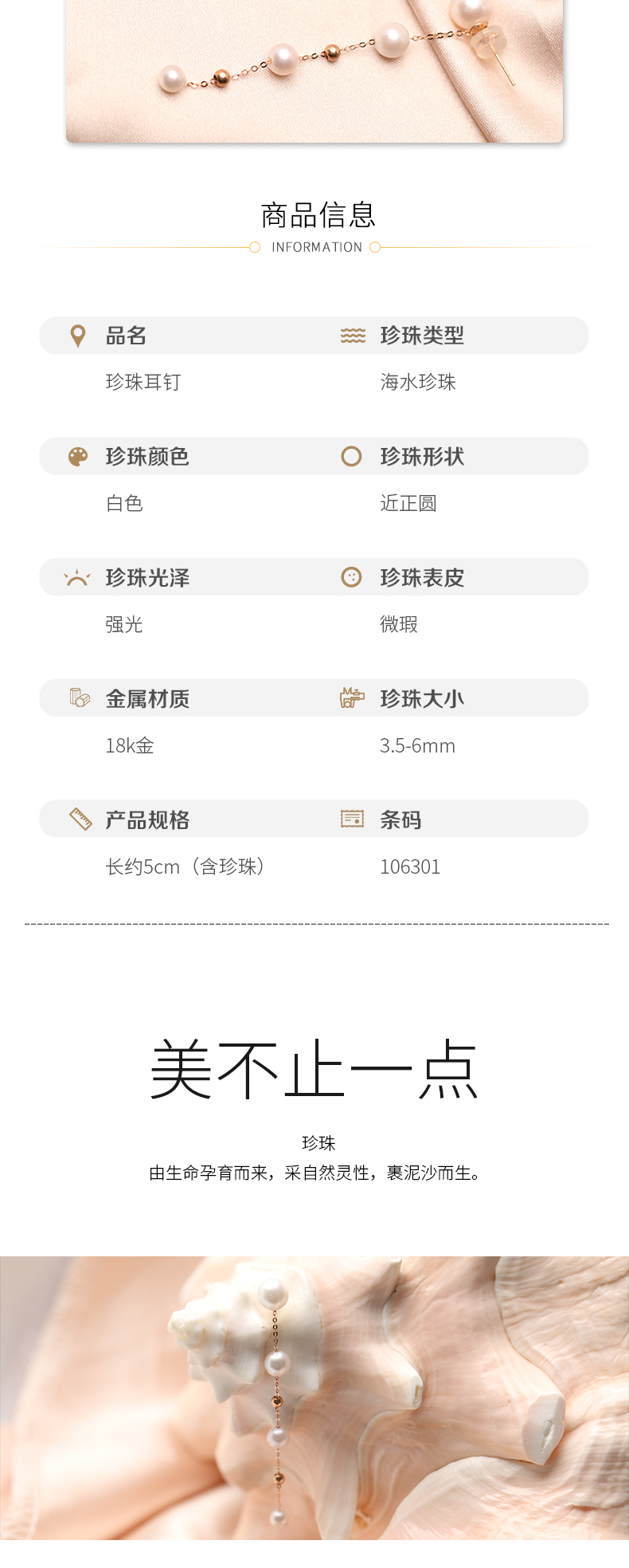 美裕 【流影】金18K海水珍珠耳钉 3.5-6mm白 106301