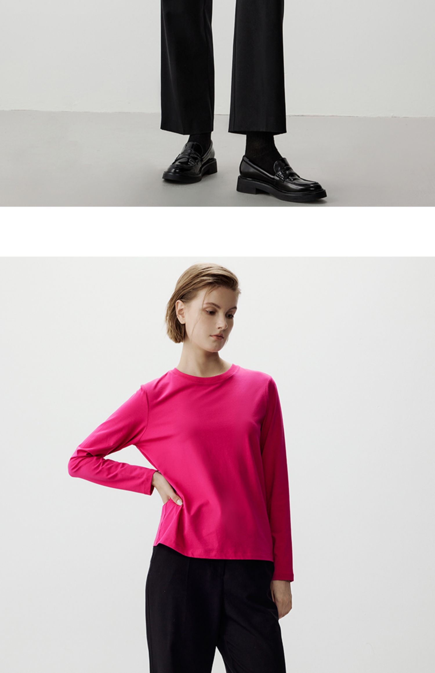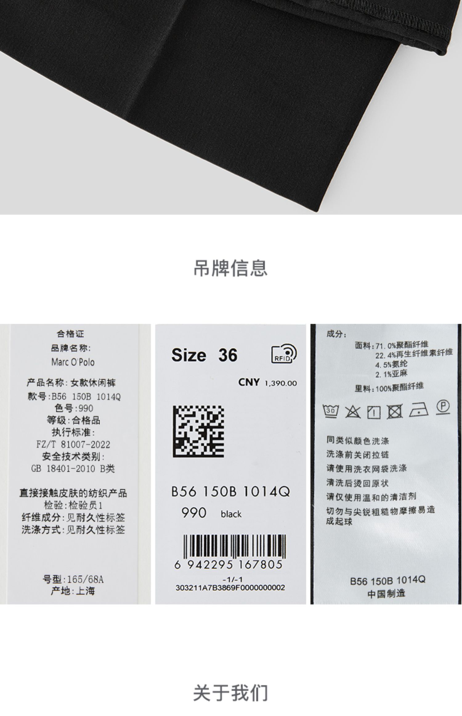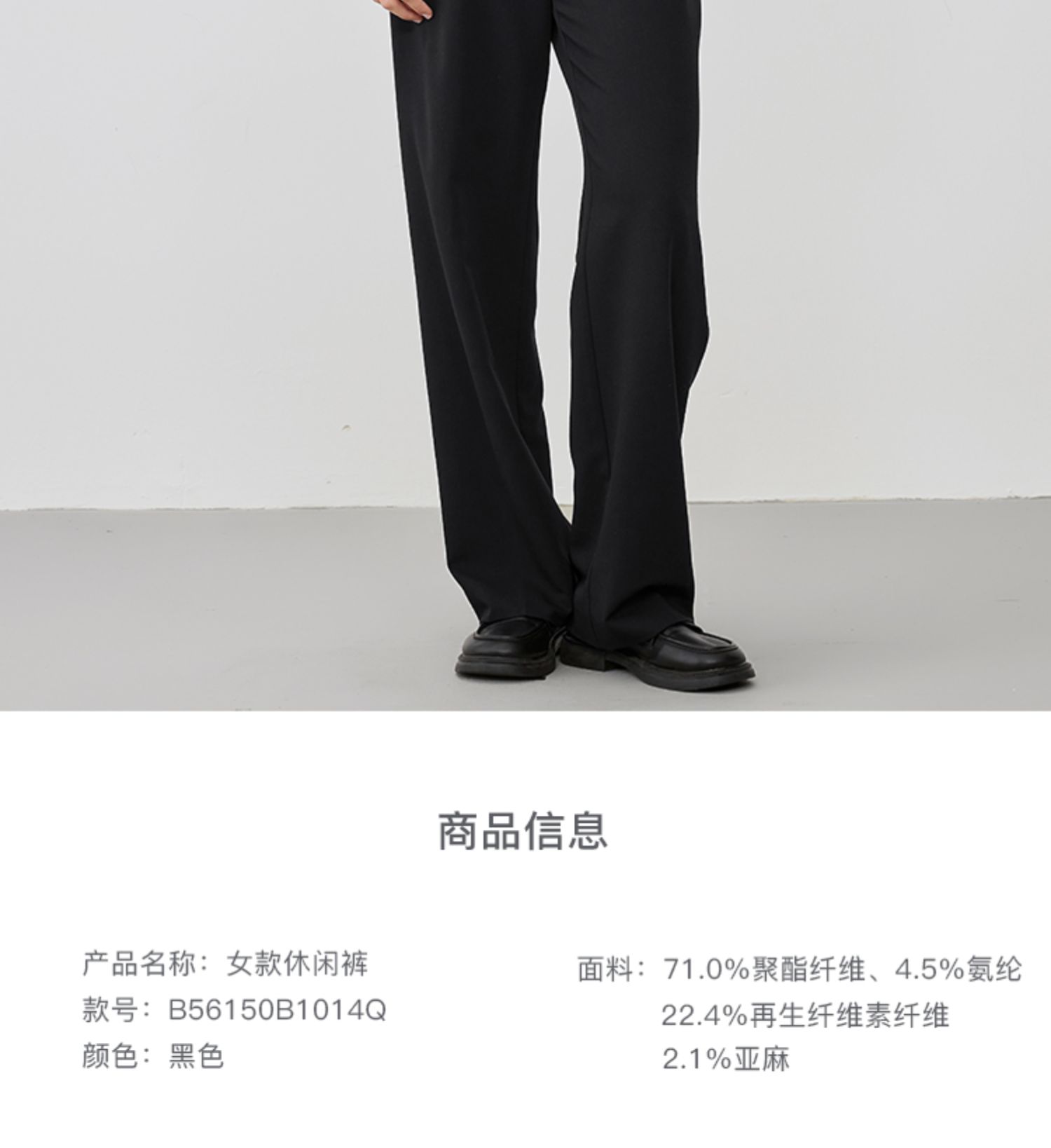 Marc O'Polo/MOP【品牌经典系列】黑色细直筒宽松薄款休闲西裤女
