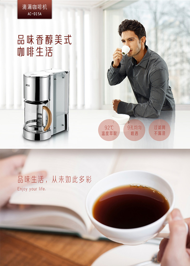 北美电器(ACA) 滴漏式咖啡壶美式咖啡机 电水壶可冲茶泡茶 AC-D15A