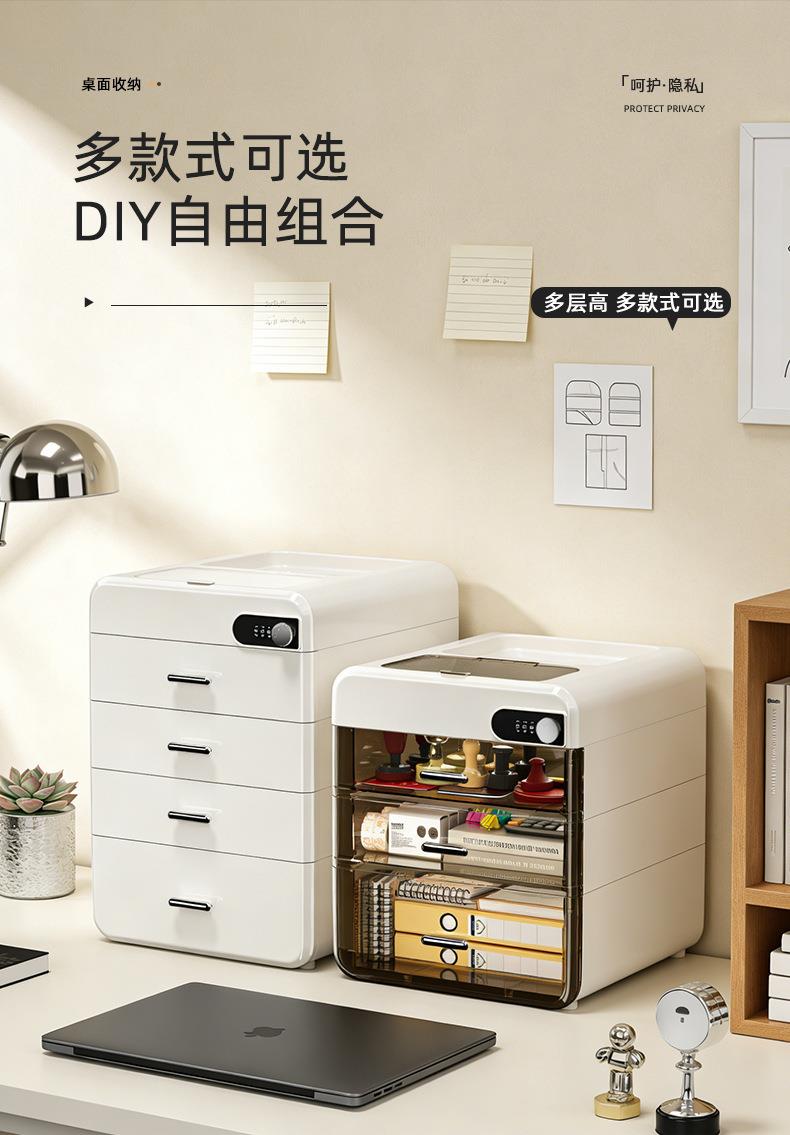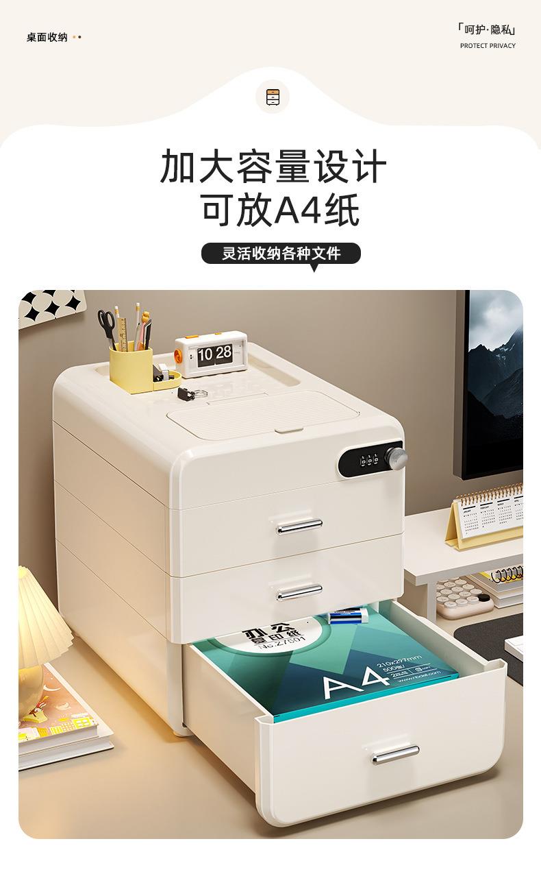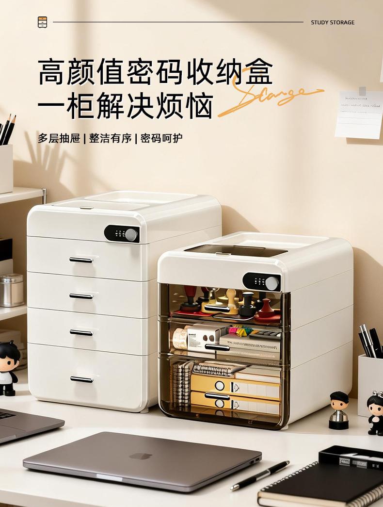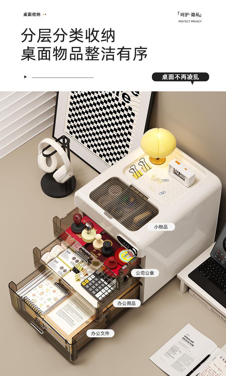 桌面密码收纳盒抽屉式重要文件带锁收纳箱家用办公隐私物品储物柜