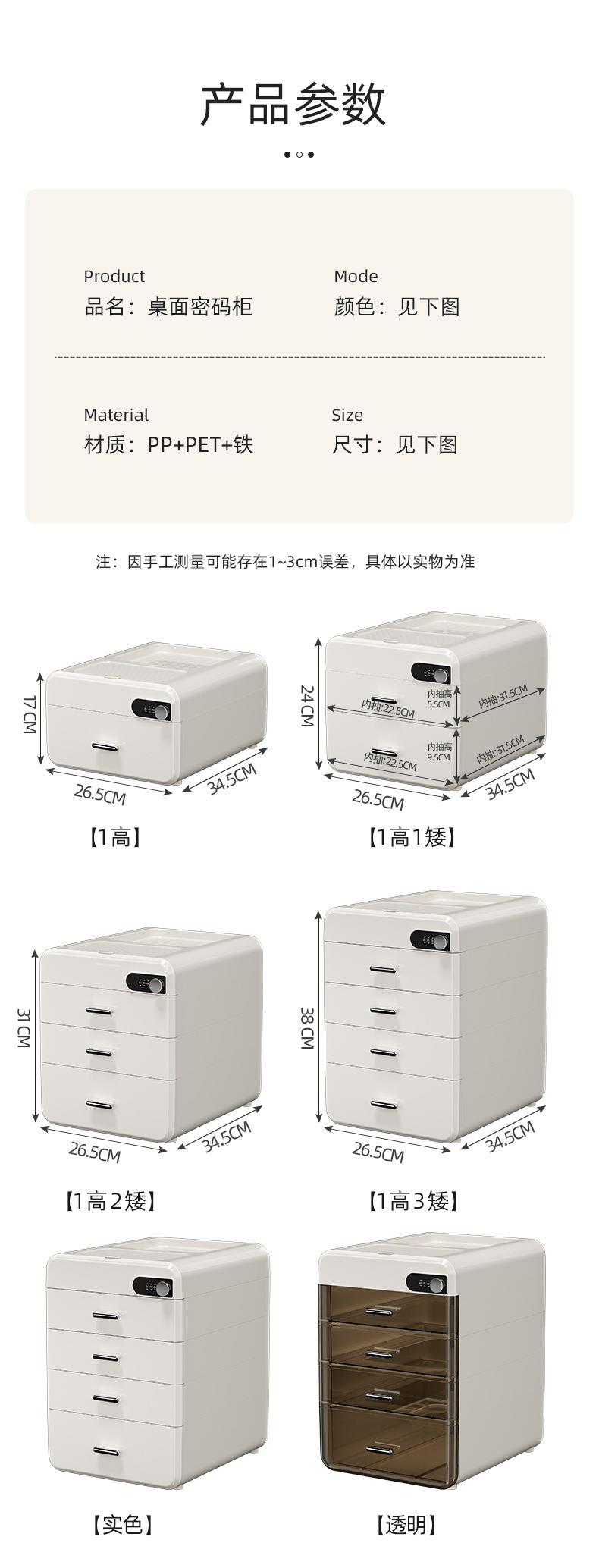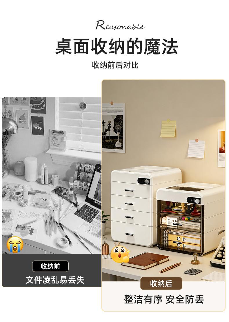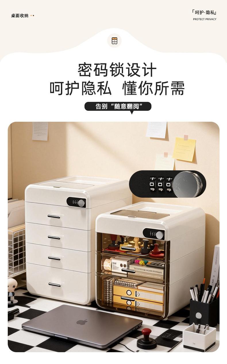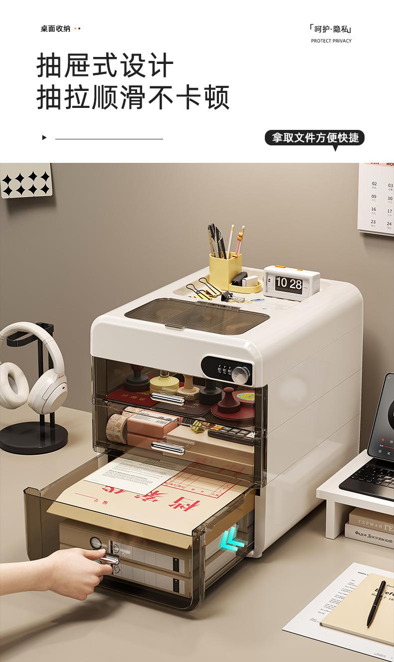 桌面密码收纳盒抽屉式重要文件带锁收纳箱家用办公隐私物品储物柜