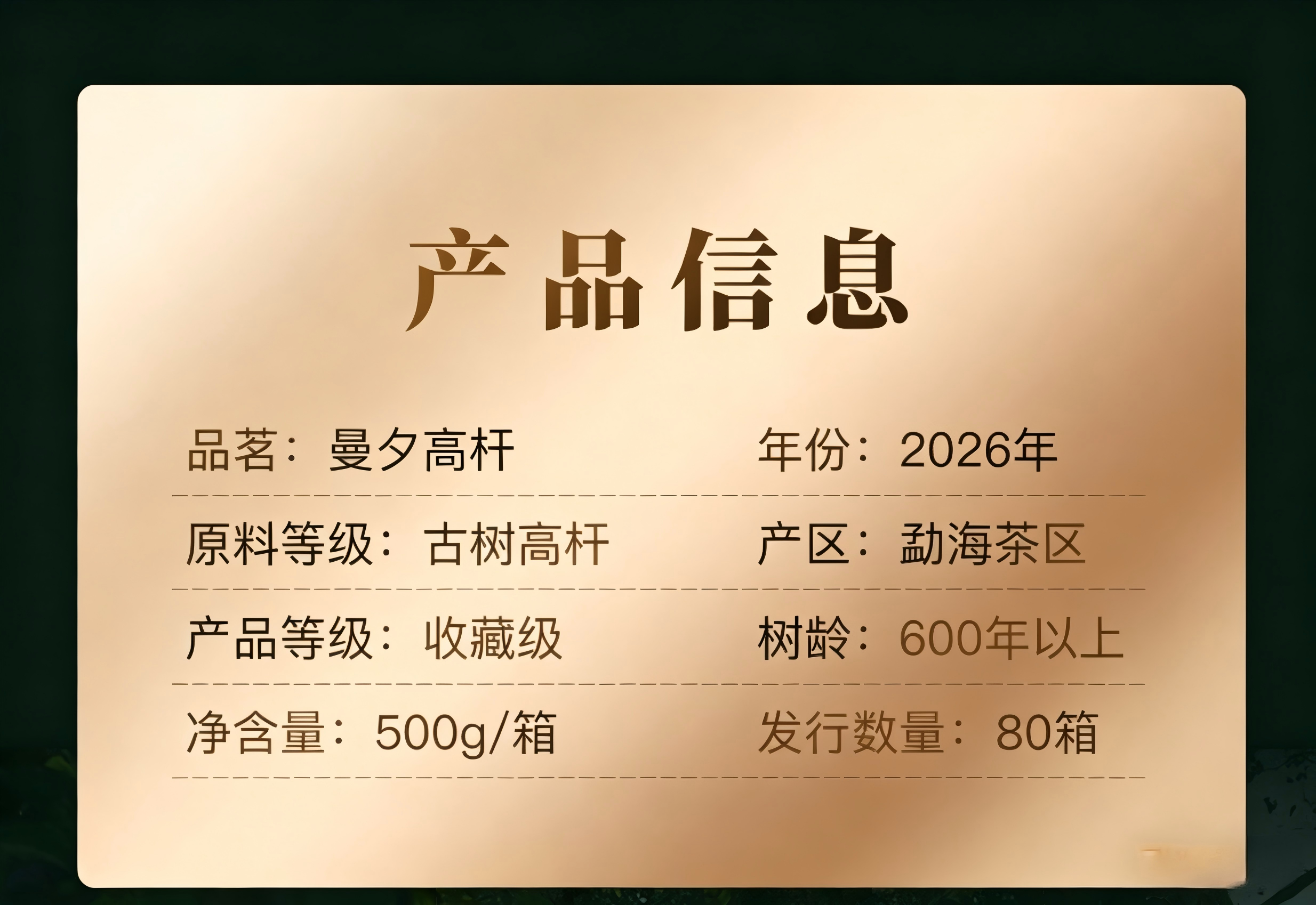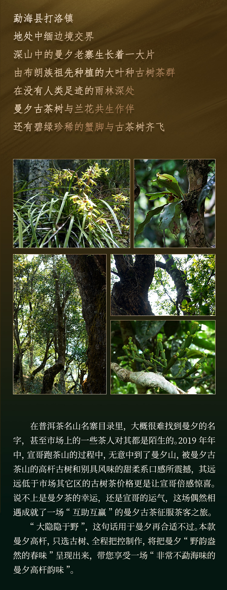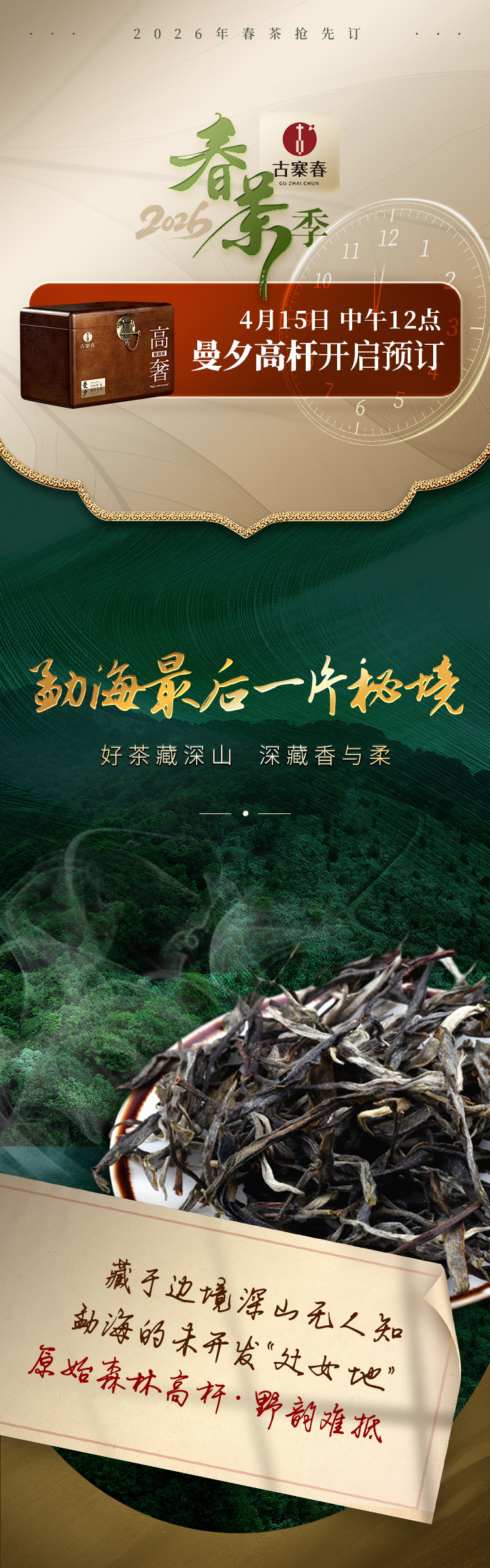 4月15日中午12点【曼夕高杆】2026年春茶预售曼夕头春古树高杆 边境遗珠,仰视森林高杆 勐海味,野韵足!500克/箱