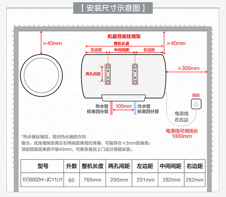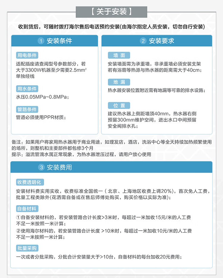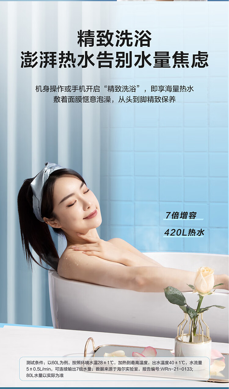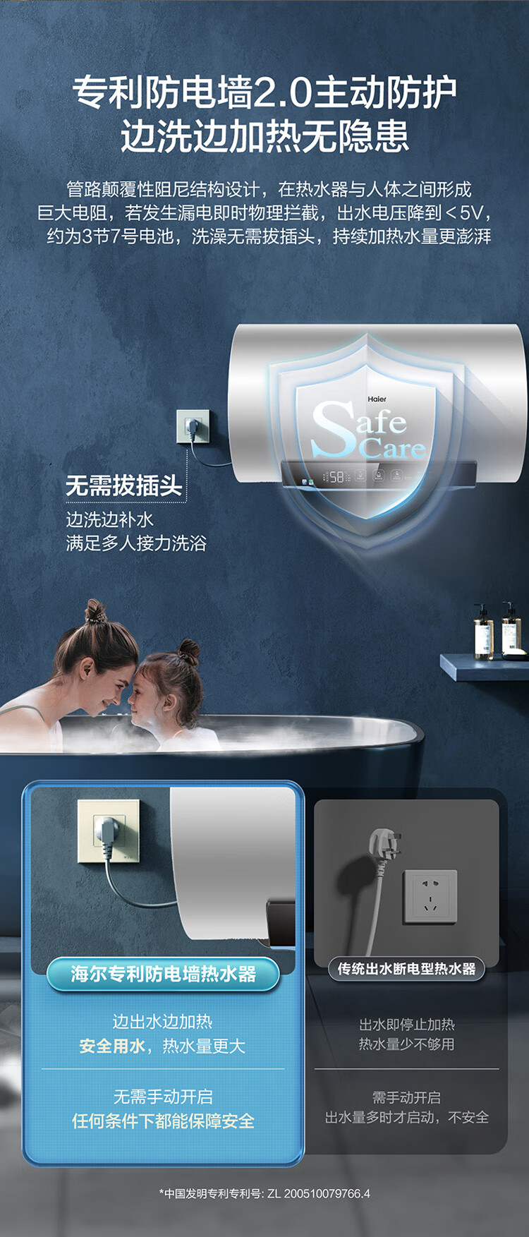 海尔(Haier)【JC11】60升电热水器 3.3KW/2.2KW变频速热 净水洗 内胆免清洗 EC6002H-JC11U1 *