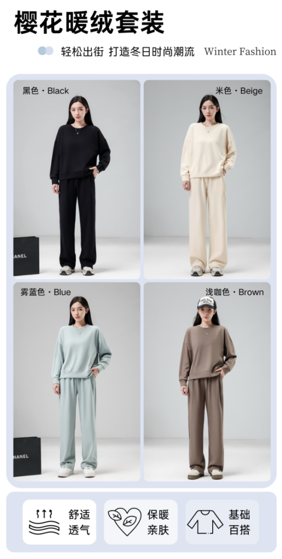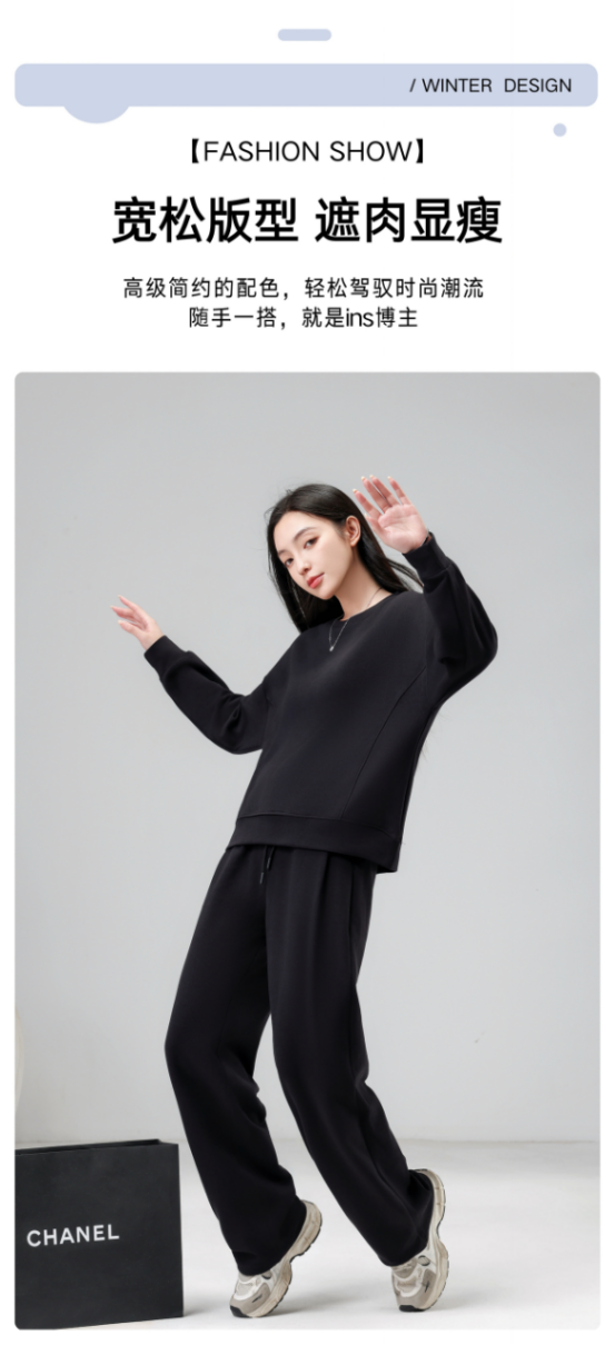 套装基础,颜色就不基础 柔软亲肤 ,时尚百搭穿着舒适 宽松版型 遮肉显瘦 保暖抗寒
