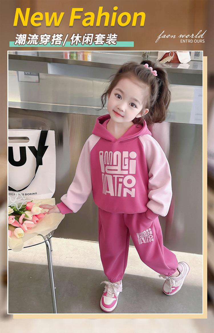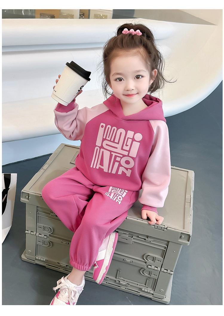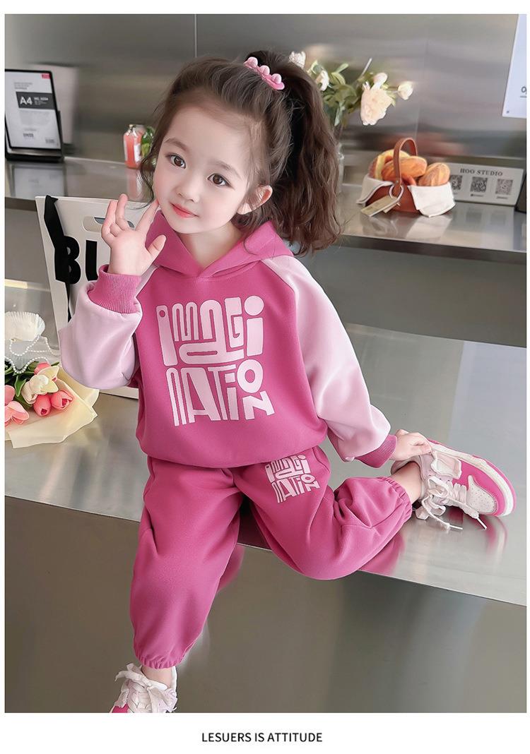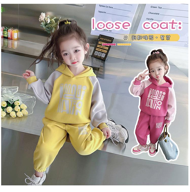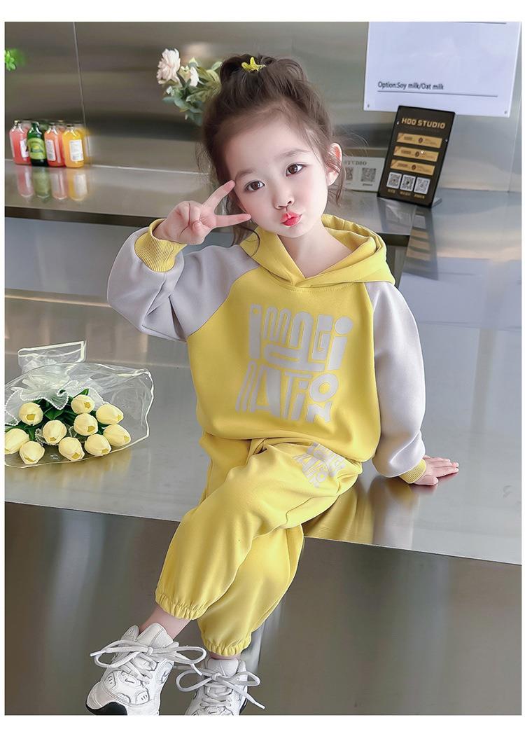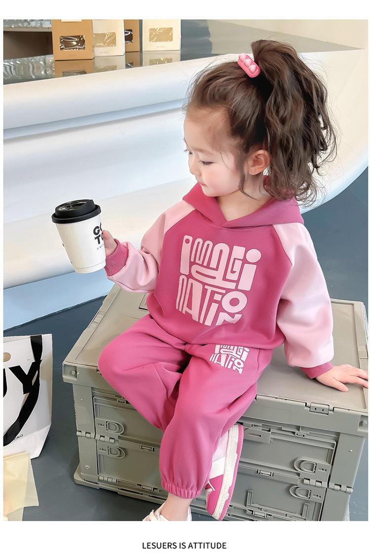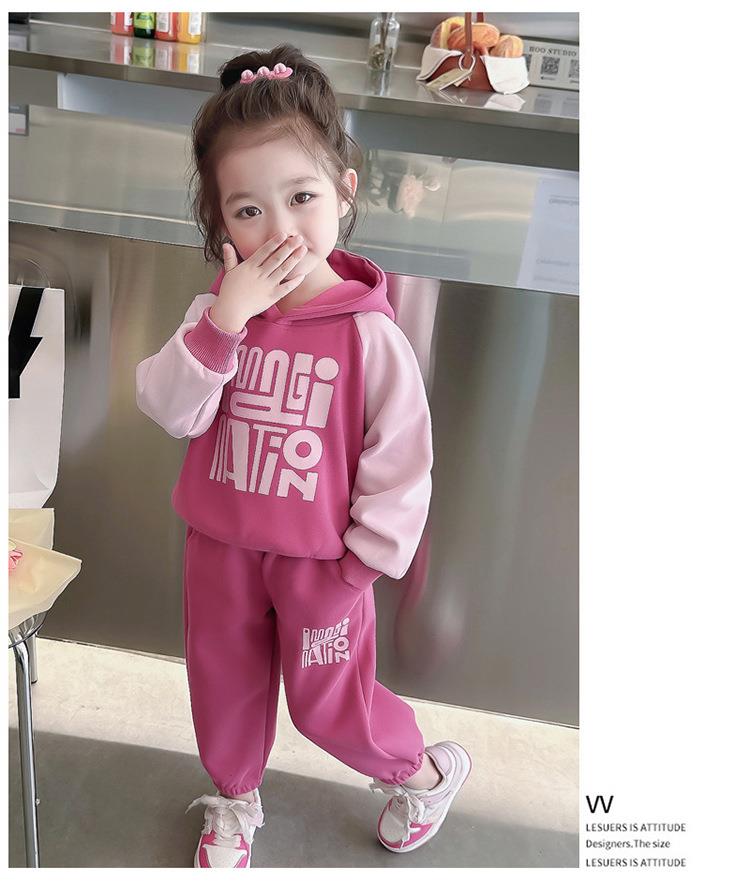 女童字母拼色套装2024春季新款韩版两件套洋气休闲童装潮