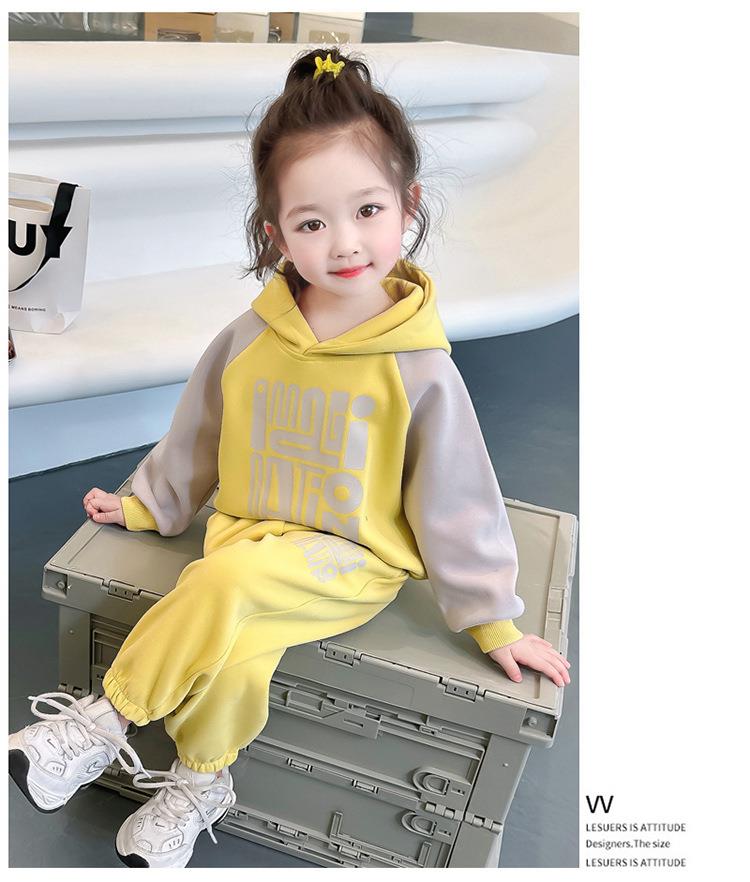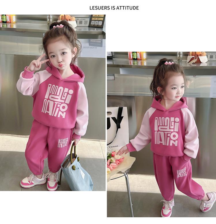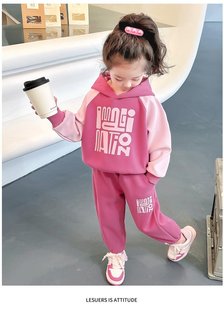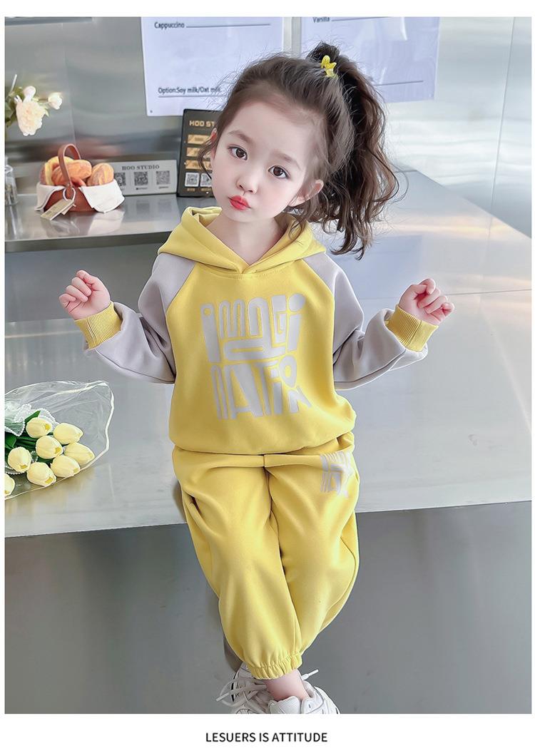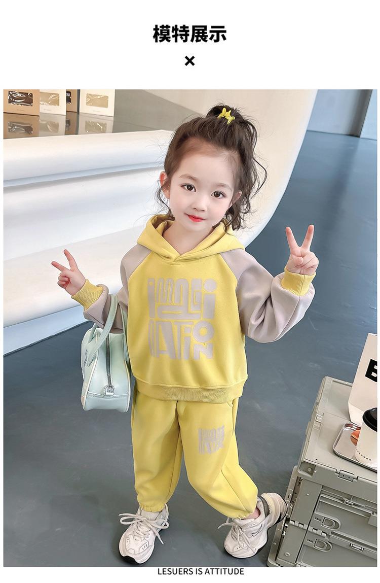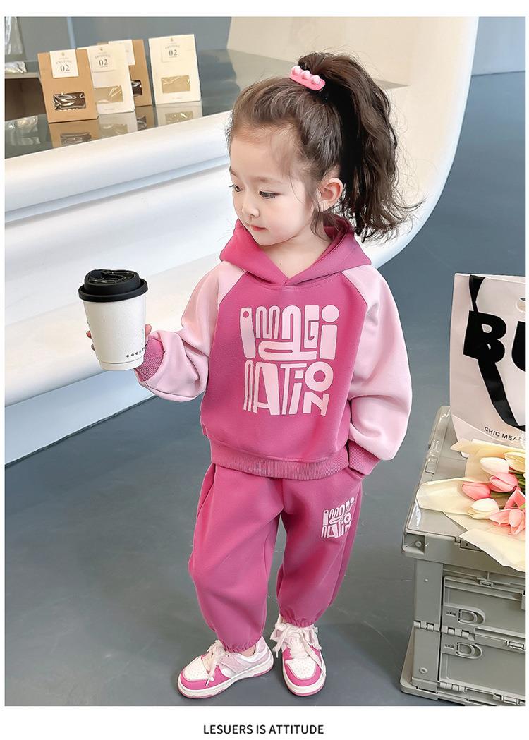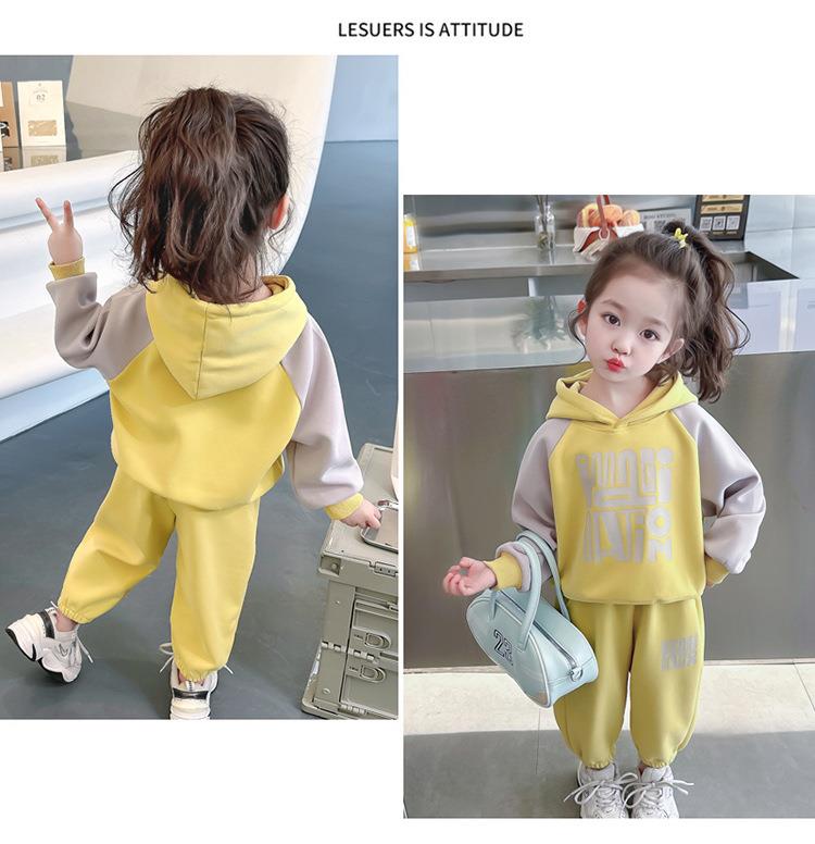 女童字母拼色套装2024春季新款韩版两件套洋气休闲童装潮