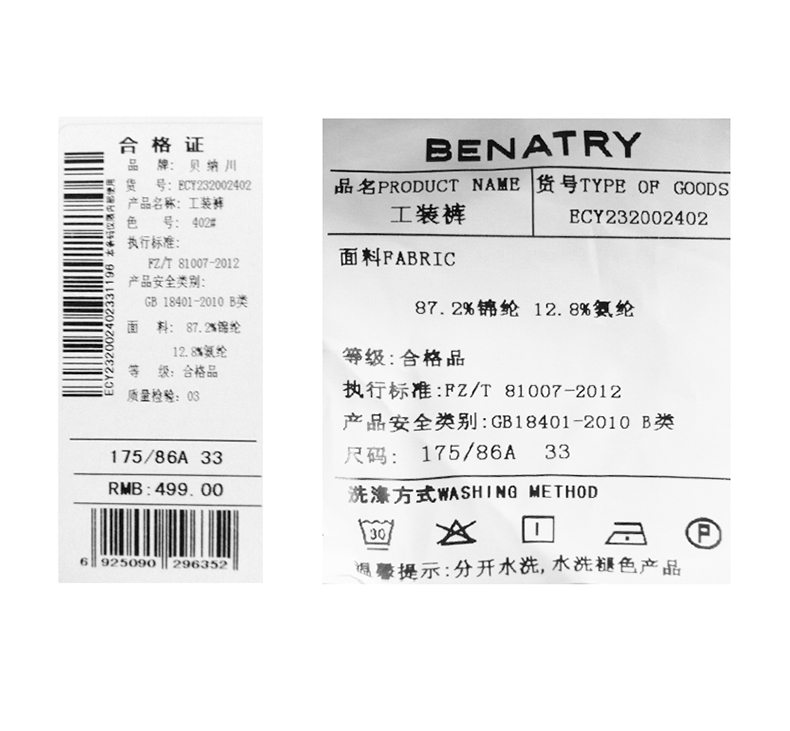贝纳川夏季男士薄款休闲裤抽绳工装裤ECY232002402