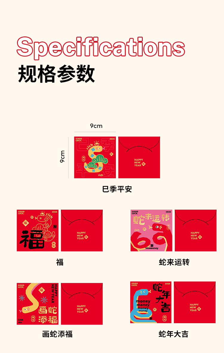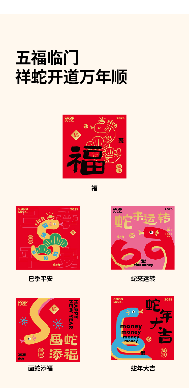 半房 五福蛇年小红包 5只不同花色