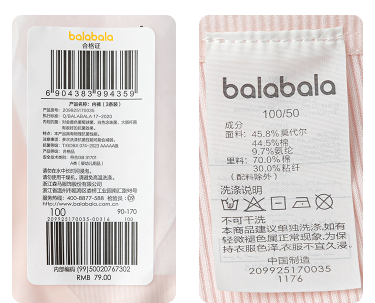 巴拉巴拉balaOne女童内裤棉儿童三角短裤大童不夹PP三条装抗菌裆