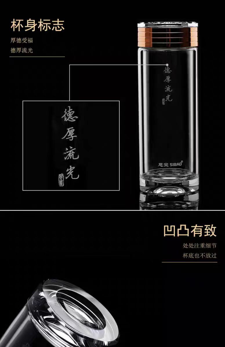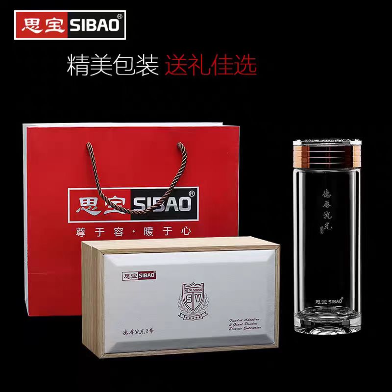 思宝旗舰店德厚流光高硼硅简约人造水晶玻璃杯定制木纹礼盒水杯