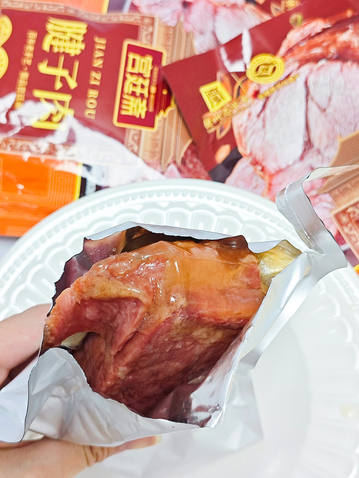 真的要香s我了,不愧是德州老字号的味道 真的不一样❗❗ 光是隔着屏幕就能回味出我前两天吃空的这几袋肉香味❗❗ 香迷糊了❗❗炖得软烂入味,卤汁全被腱子肉吸进去了, 连吃了2袋都不过瘾💢 开袋即食,可以直接大口吃,也可切片, 不敢相信配上一碗汤面是有多绝❗❗ 肉质紧实细腻有嚼劲,一点都不干巴❗ 🔴💰39.9到手3袋,💰59.9到手5袋 【宫廷斋五香腱子肉】 🔺精选农家散养家猪,肉质紧实,鲜嫩多汁 🔺多味秘制香辛料配比,老卤慢炖熬制 🔺真空包装,高温灭菌,开袋即食