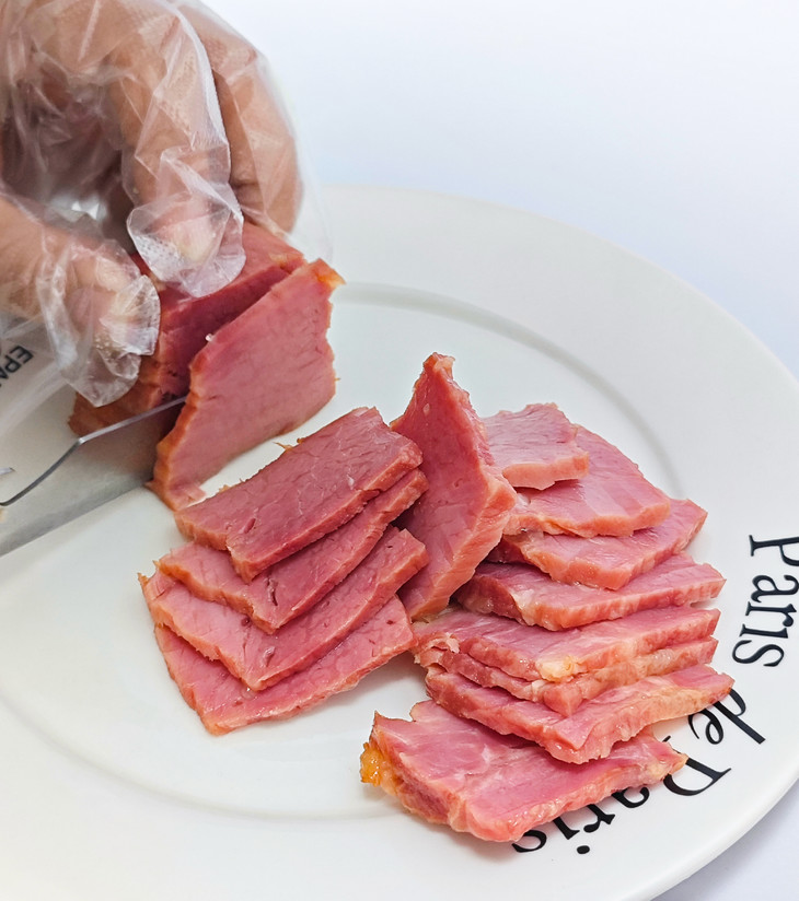 五香猪腱子肉不仅美味,而且都是满满的蛋白质 多吃几口也不用担心体重问题 简直是健身饮食的完美选择! 减脂的同时,还能增加肌肉! 切开腱子肉,纹理清晰 肉缝中满满的卤汁仿佛随时都要溢出来 撕开包装还有包裹着整块腱子肉的卤汁肉冻 简直是腱子肉的精髓所在!