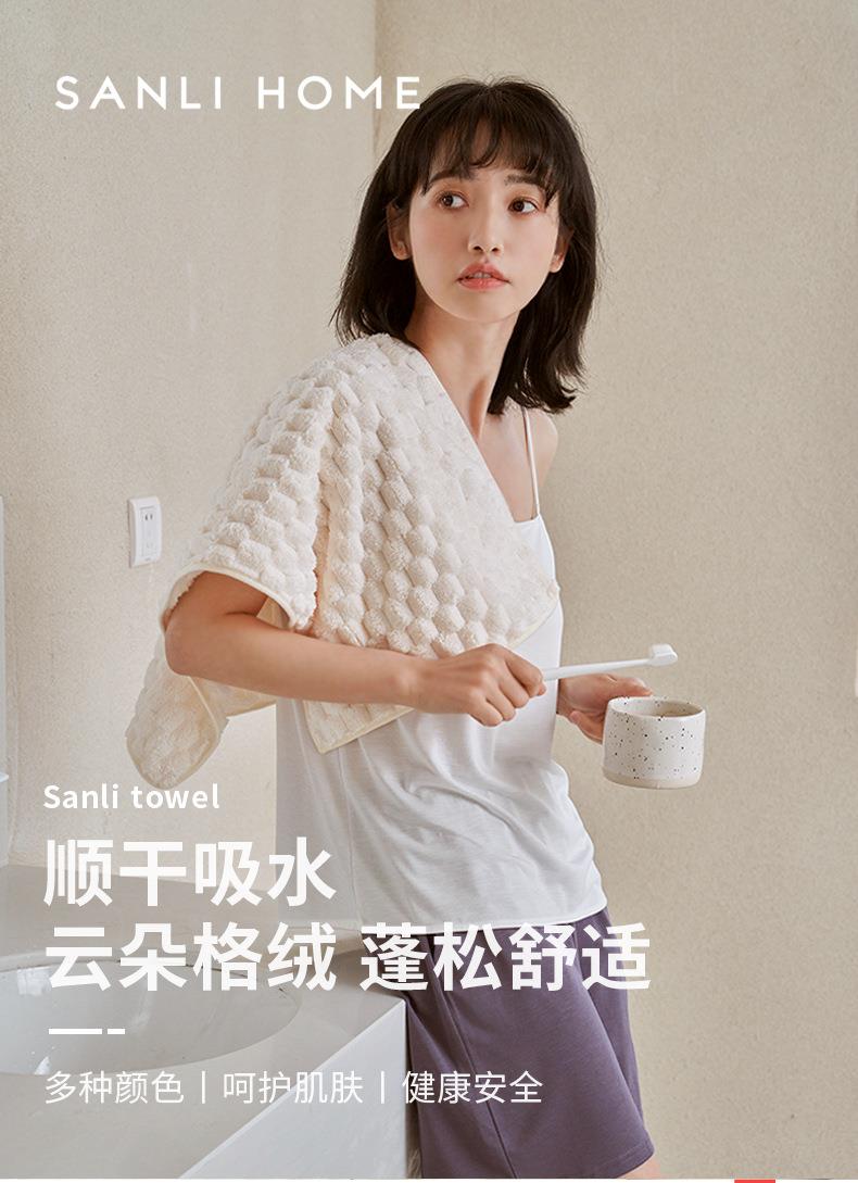 三利毛巾新款云朵格毛巾洗脸巾金龟绒吸水不易掉毛包边面巾洗澡巾