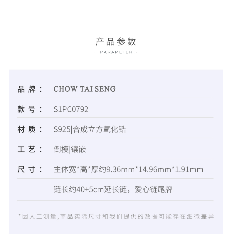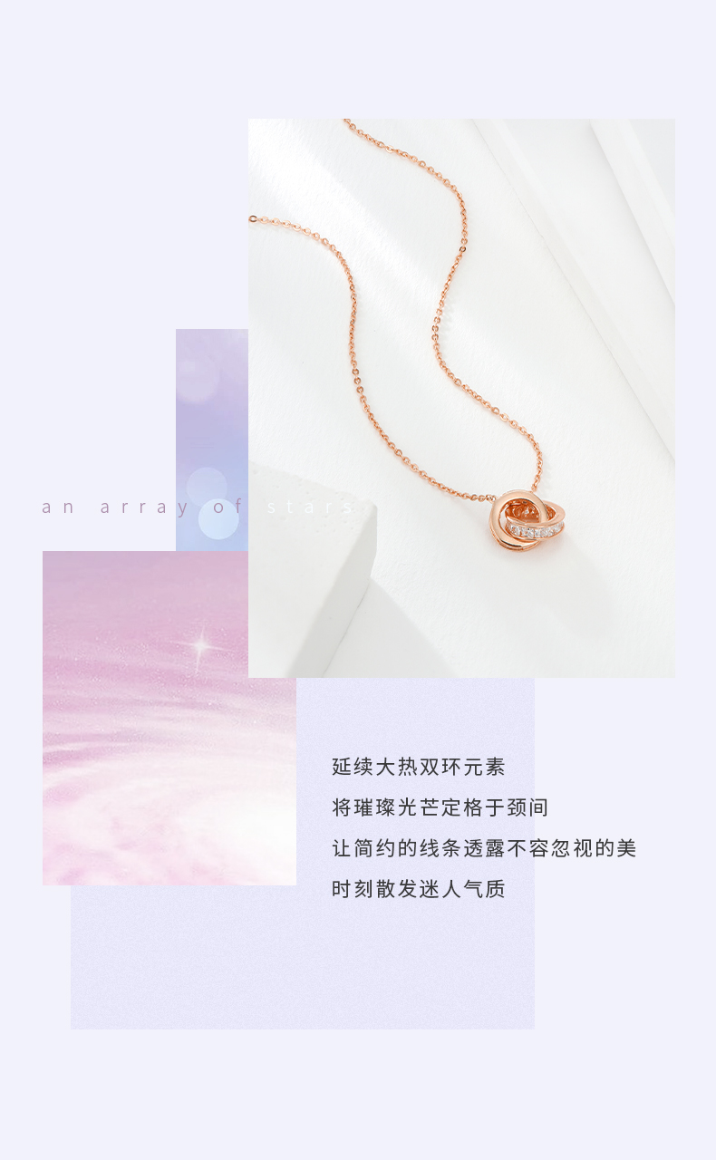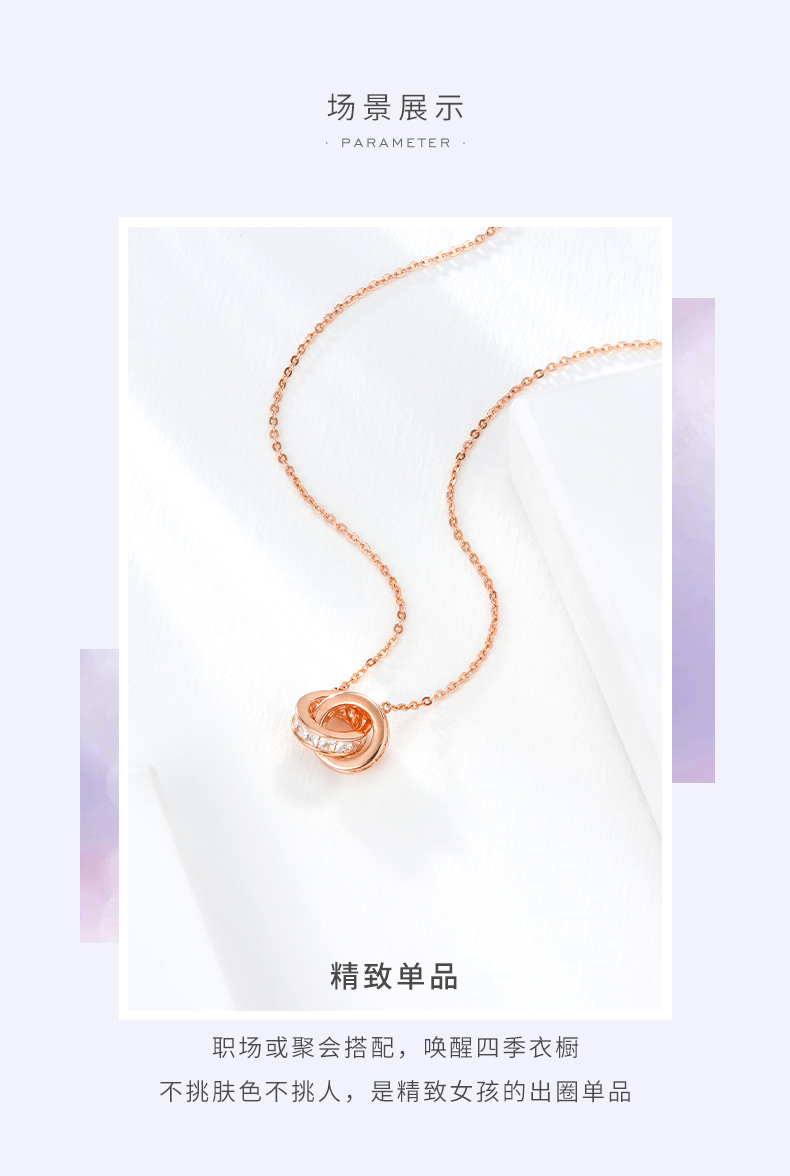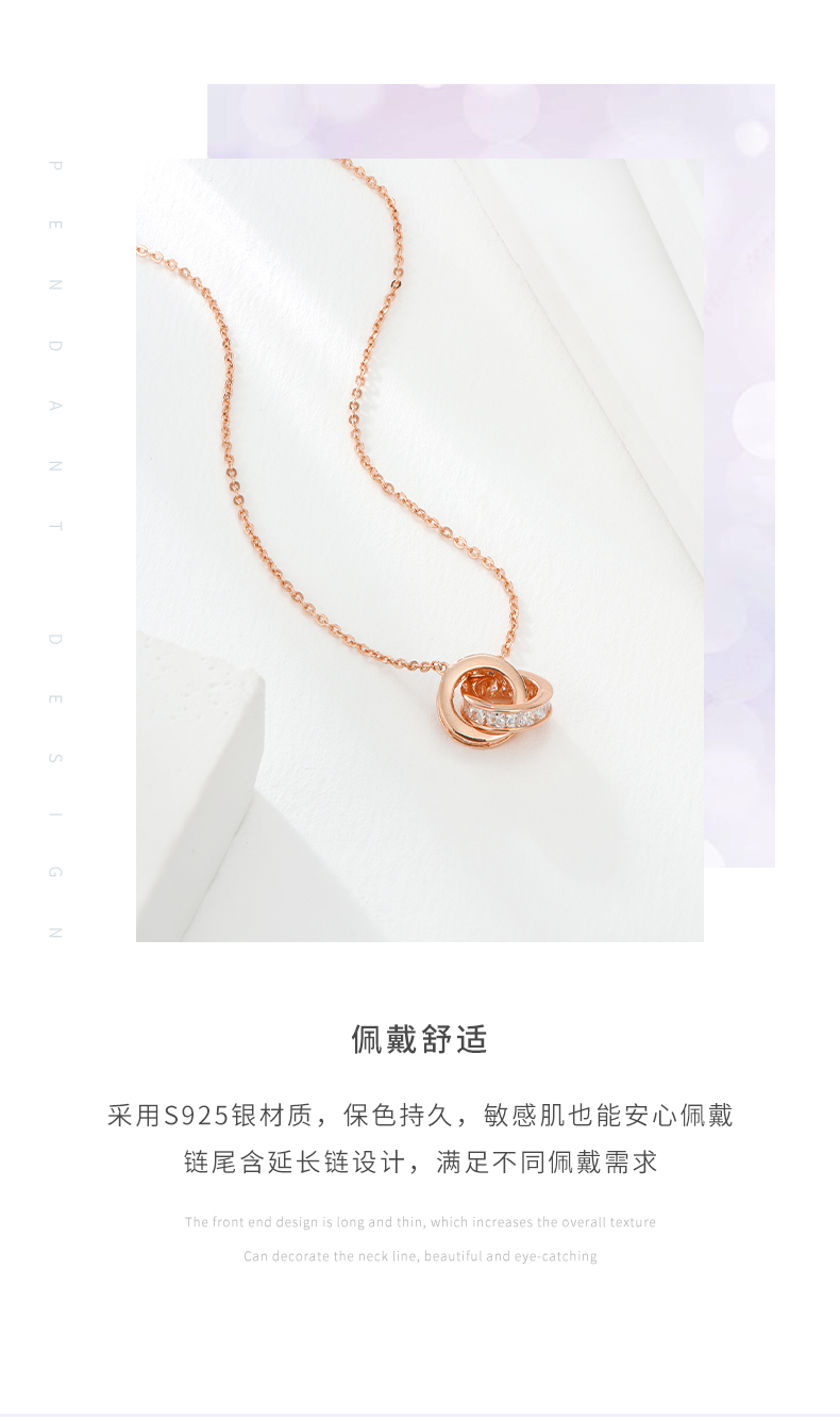 周大生S925银镶锆石项链女ins小众设计双环锁骨链