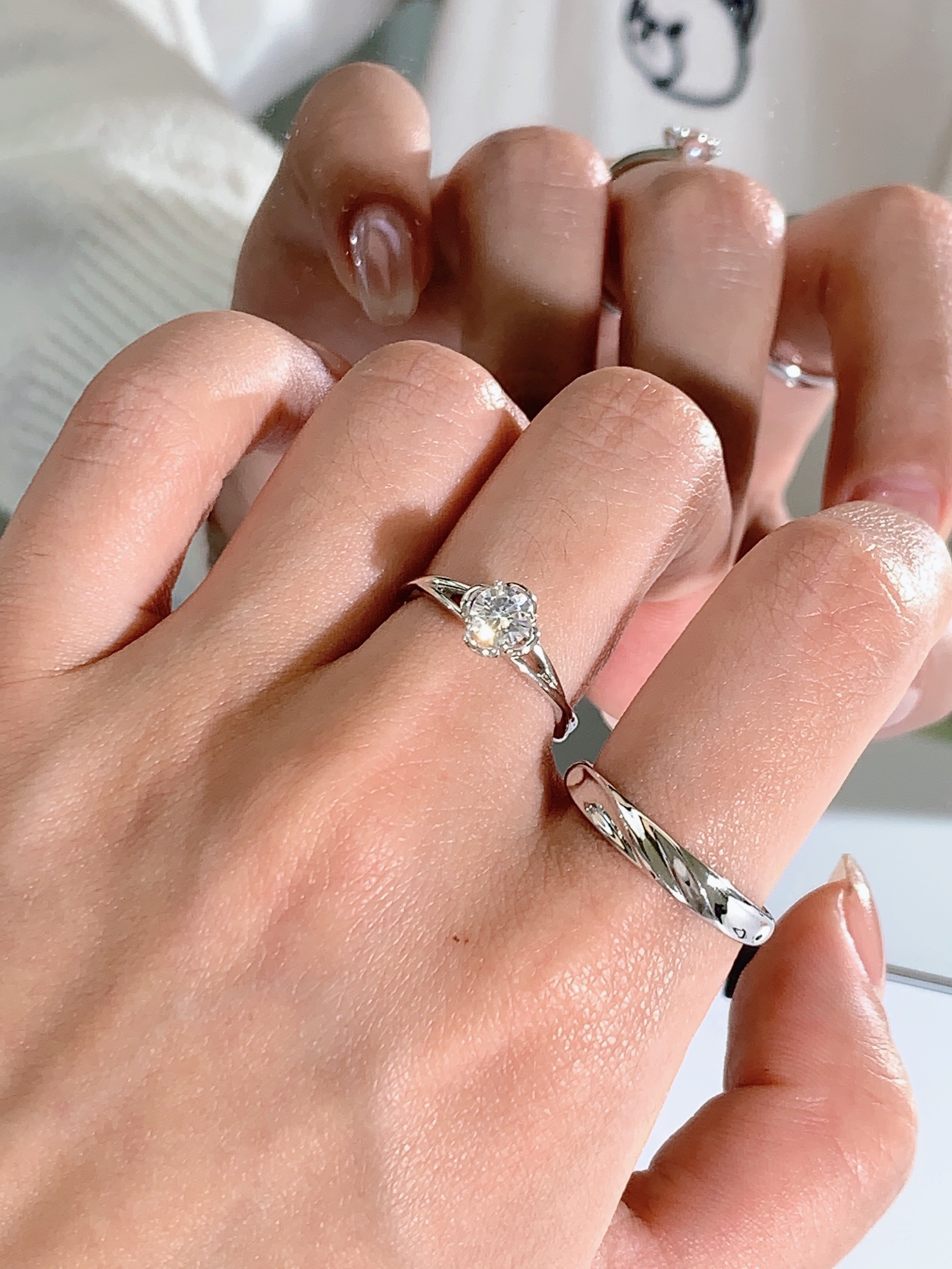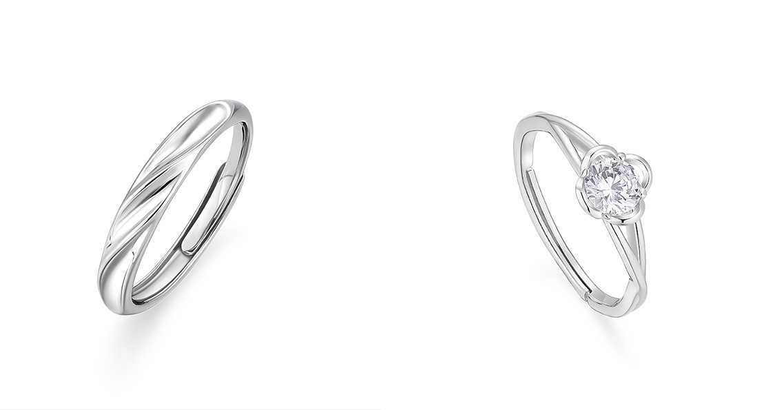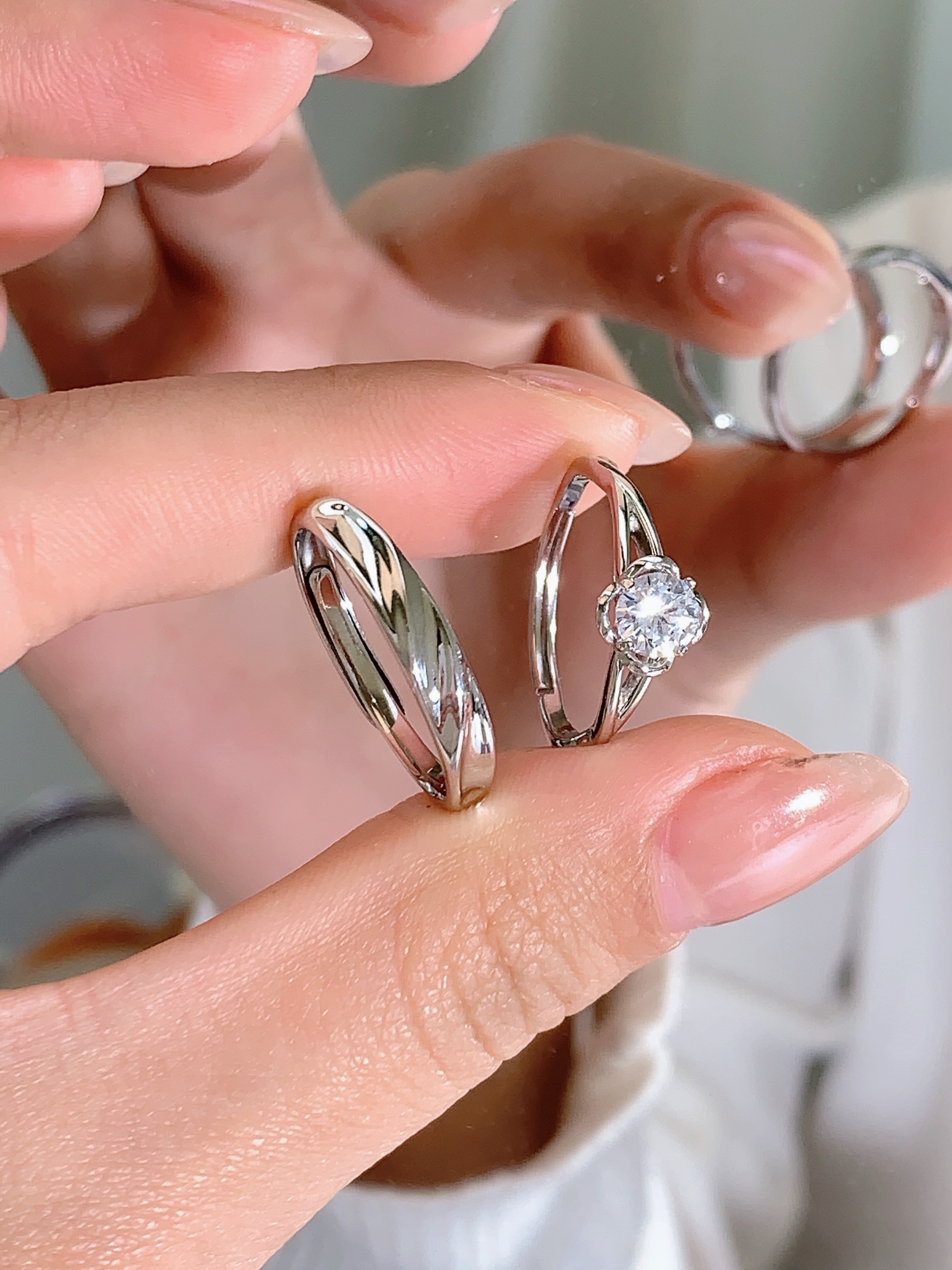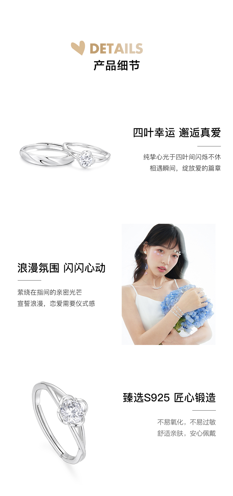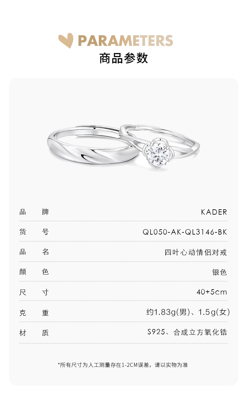KADER卡蒂罗 四叶心动情侣对戒 925银轻奢时尚简约开口可调节一对 浪漫闪耀约会恋爱穿搭幸运配饰 女友礼盒520