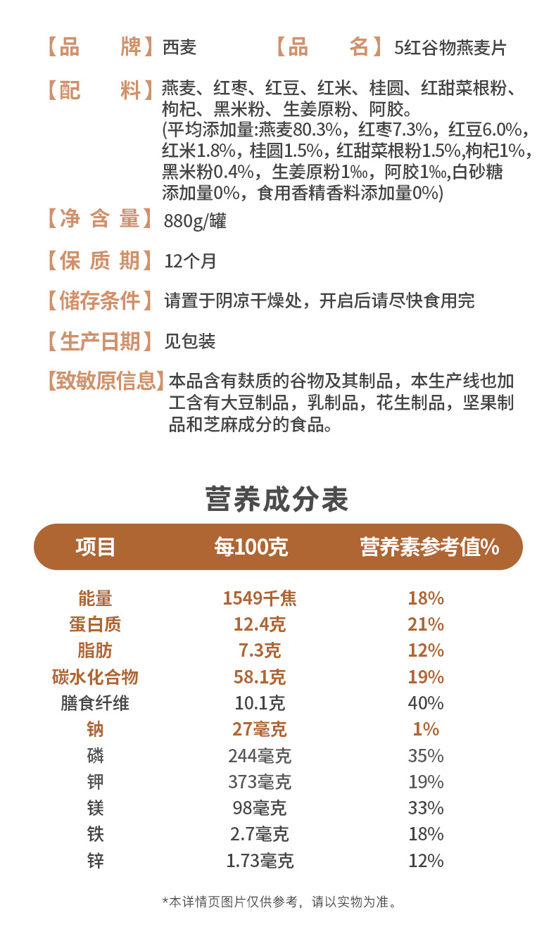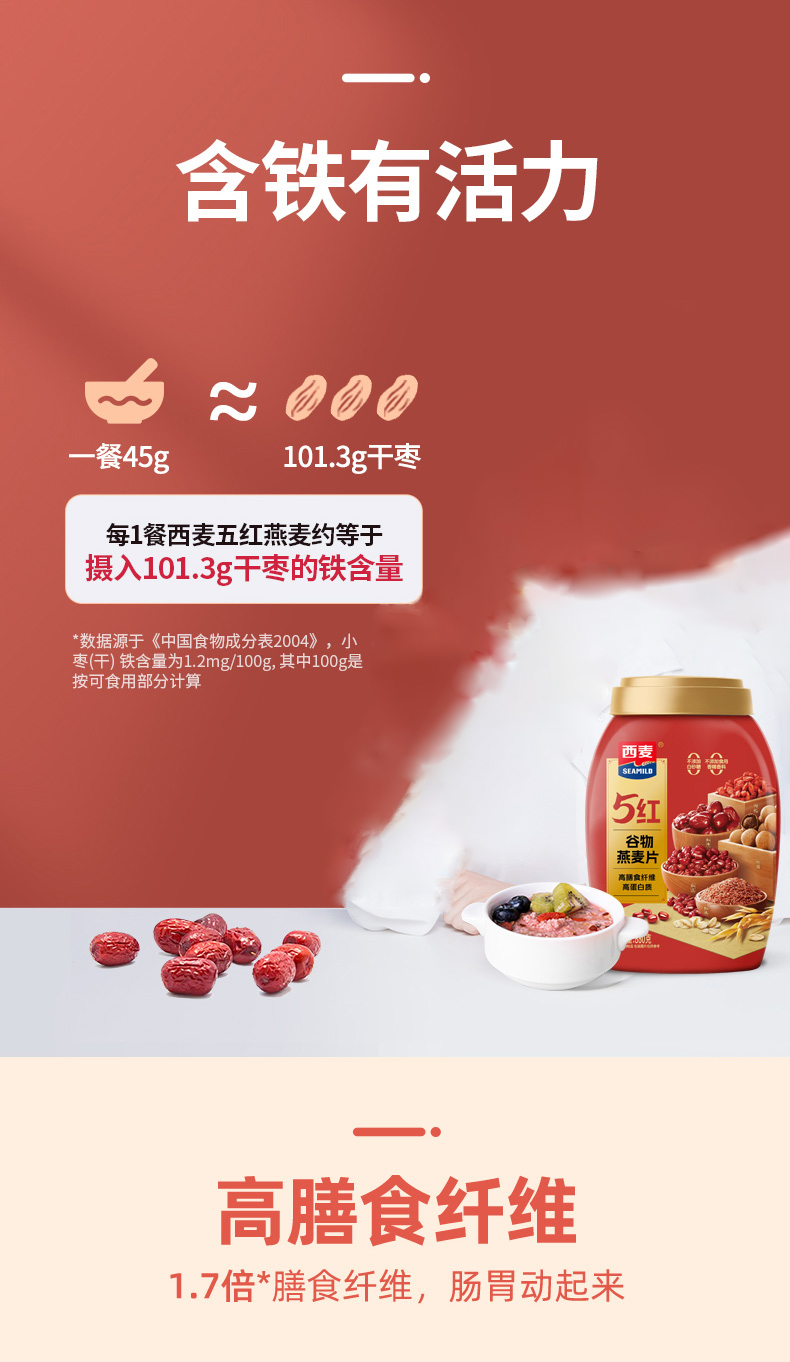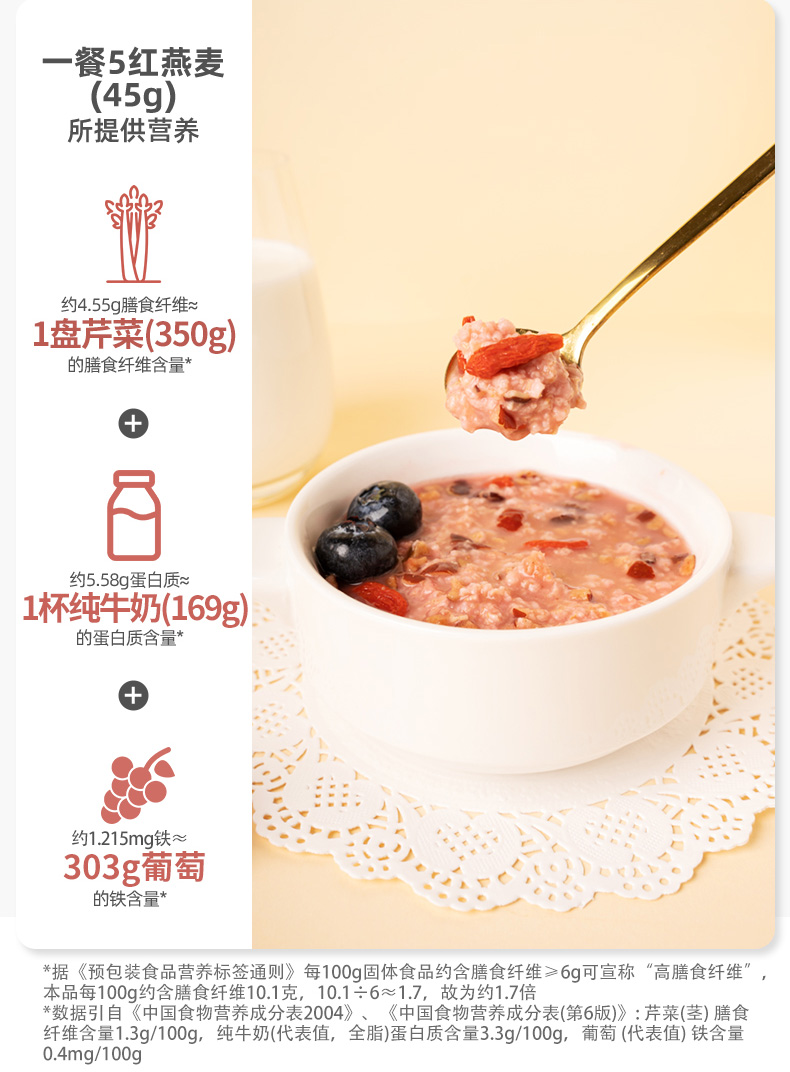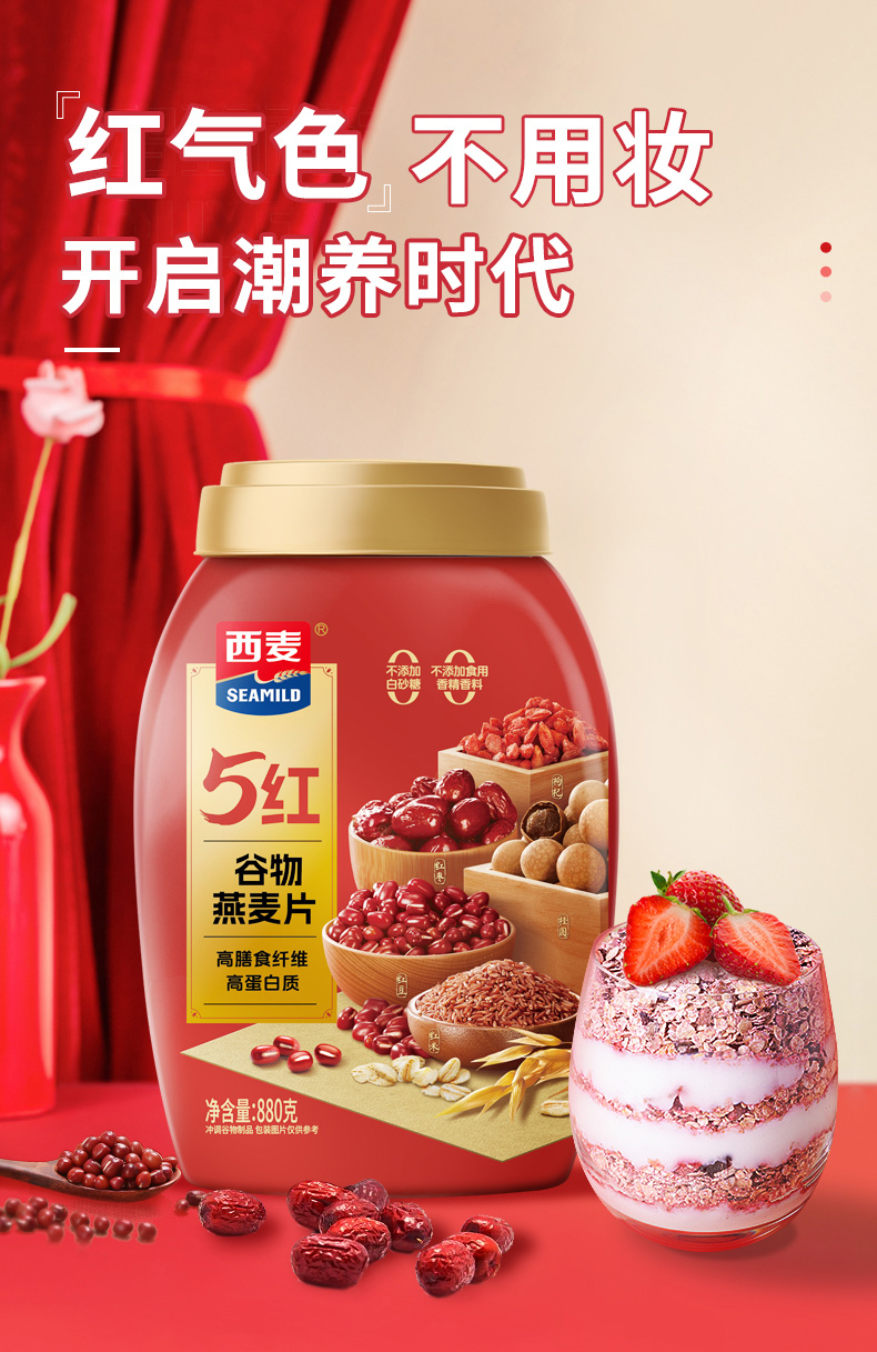 5红谷物燕麦片食养气血以红养红880g桶装家庭装营养早餐代餐