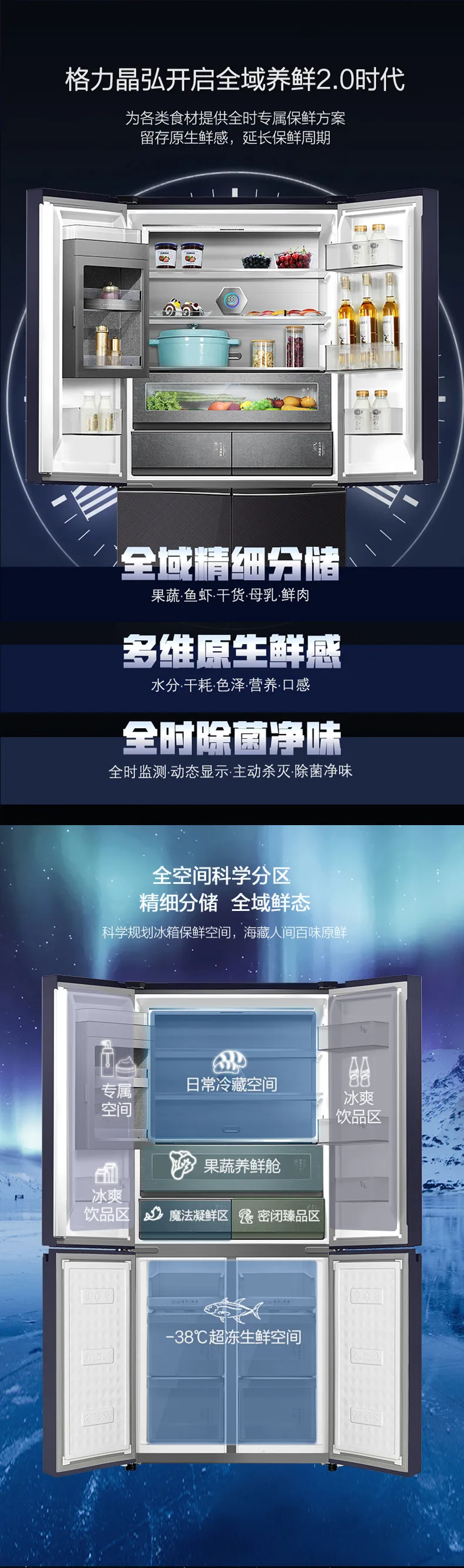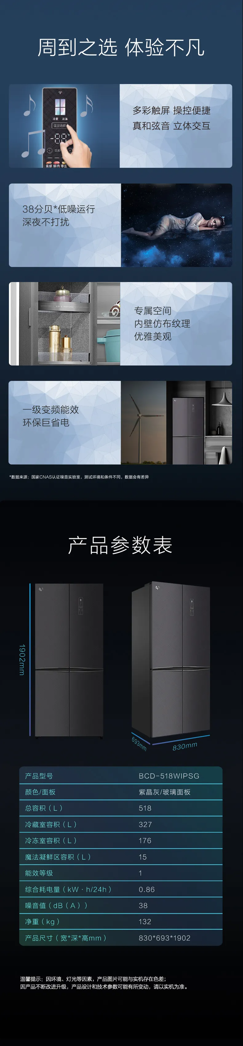 晶弘·十字对开门冰箱 518L BCD-518WIPSG/紫晶灰