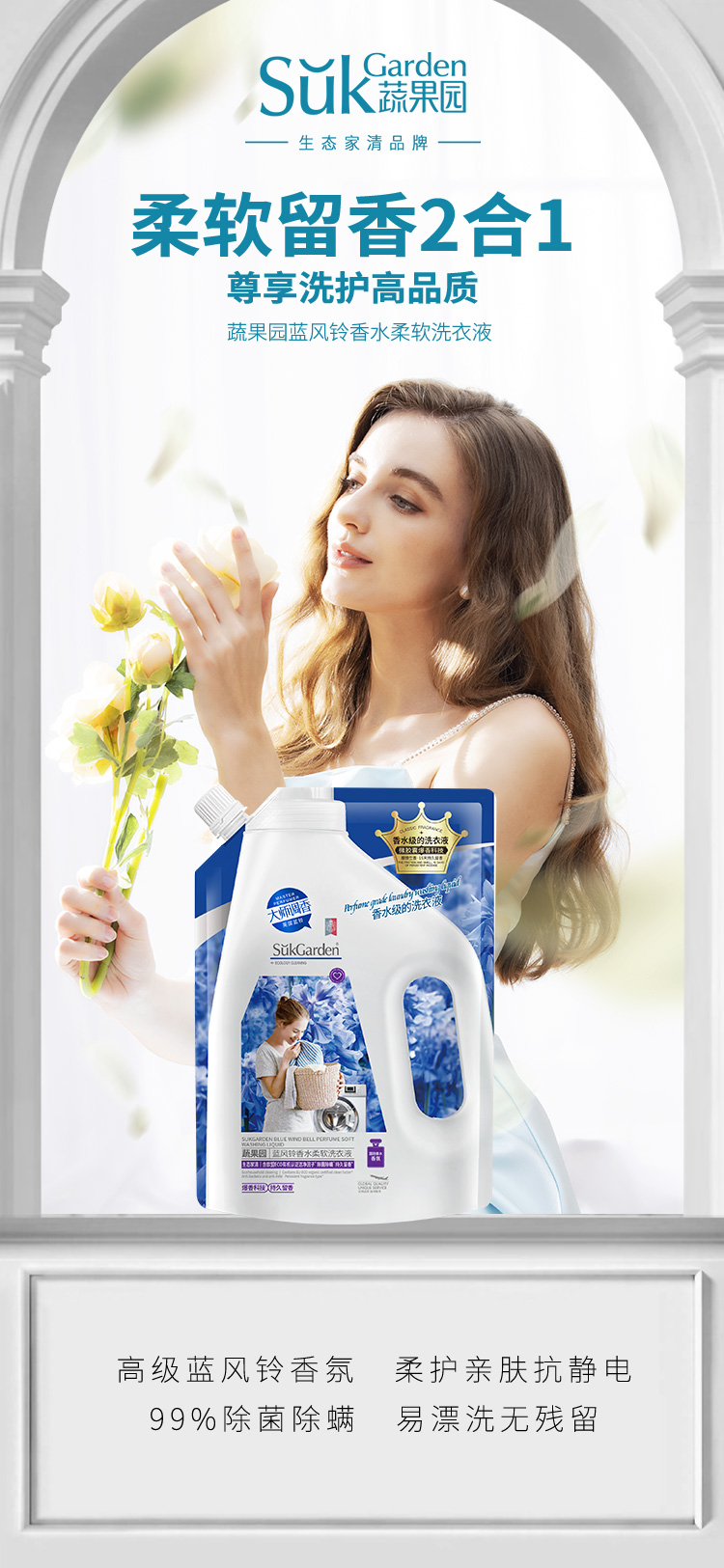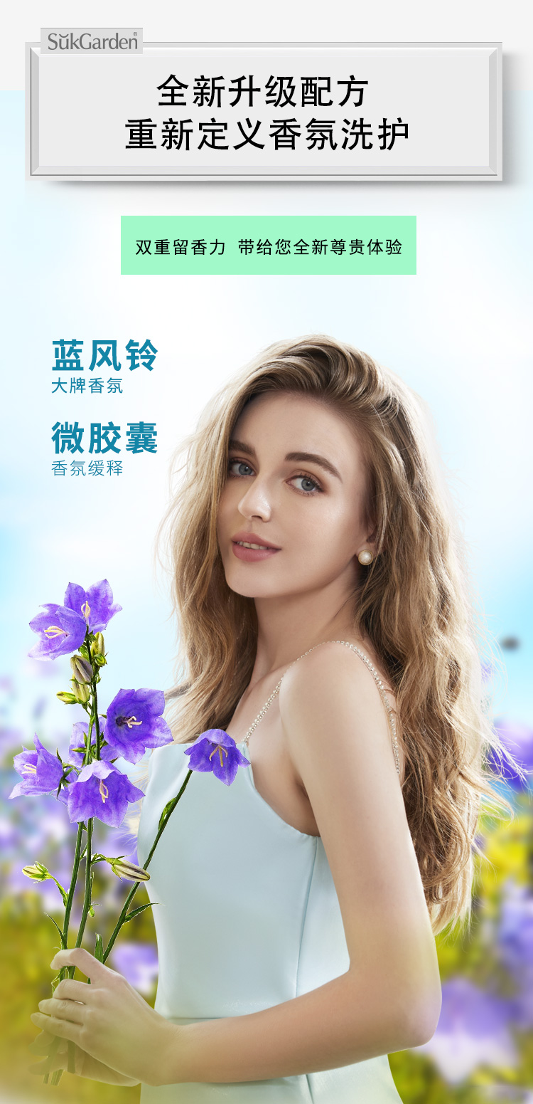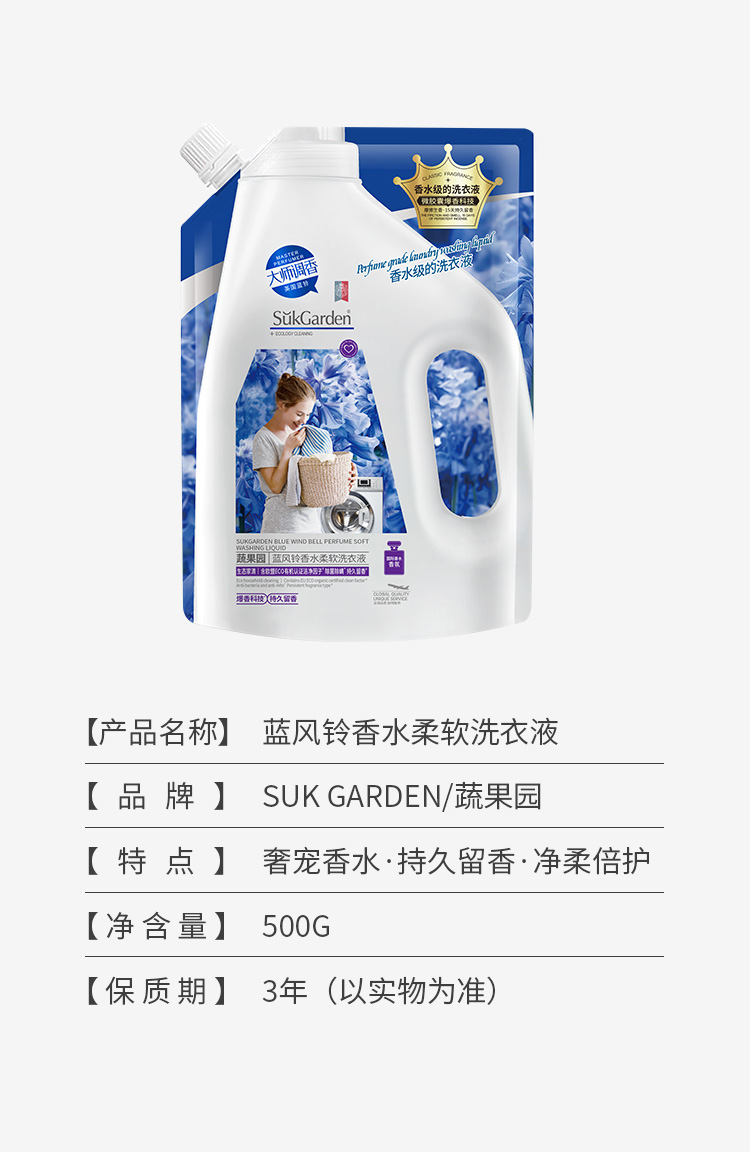 SukGarden蔬果园蓝风铃香水柔软洗衣液(持久留香)500g(袋装)