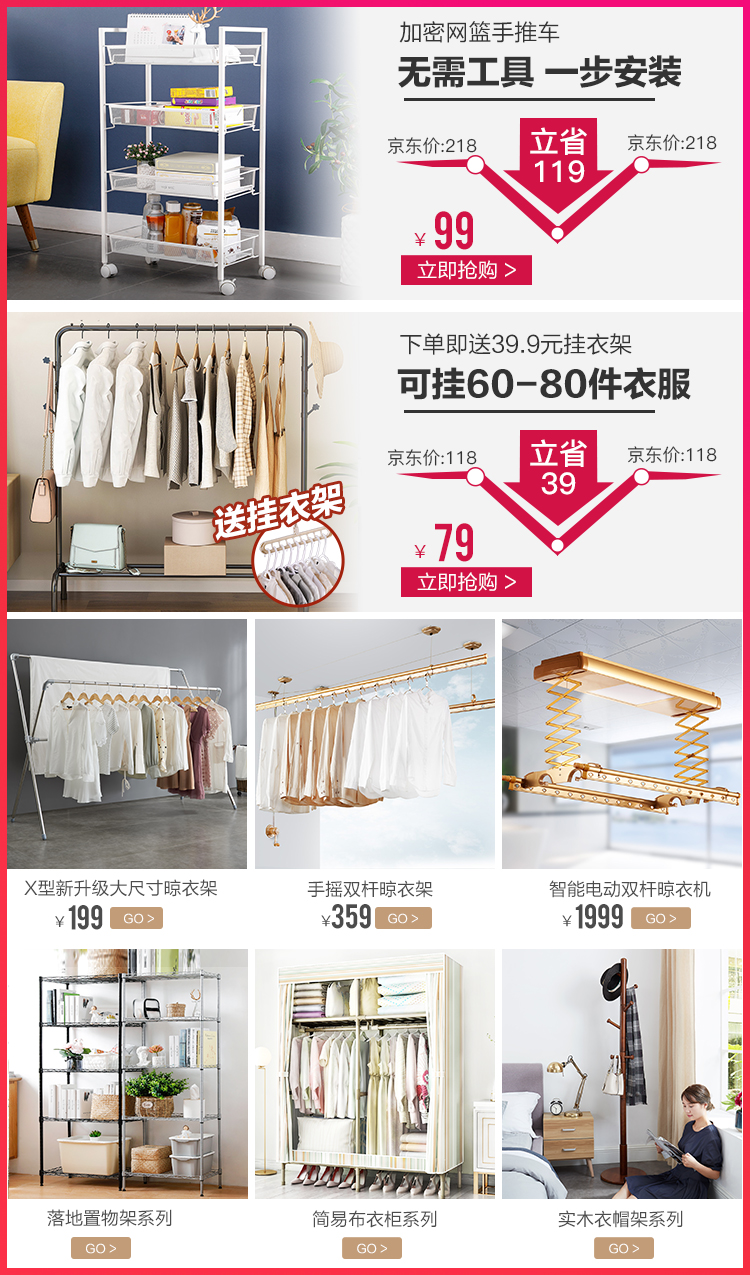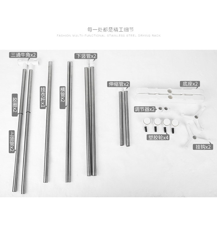 溢彩年华 粗管不锈钢晾衣架 落地晾衣杆阳台伸缩晒衣晾晒衣架升降挂衣架白色YCC2072