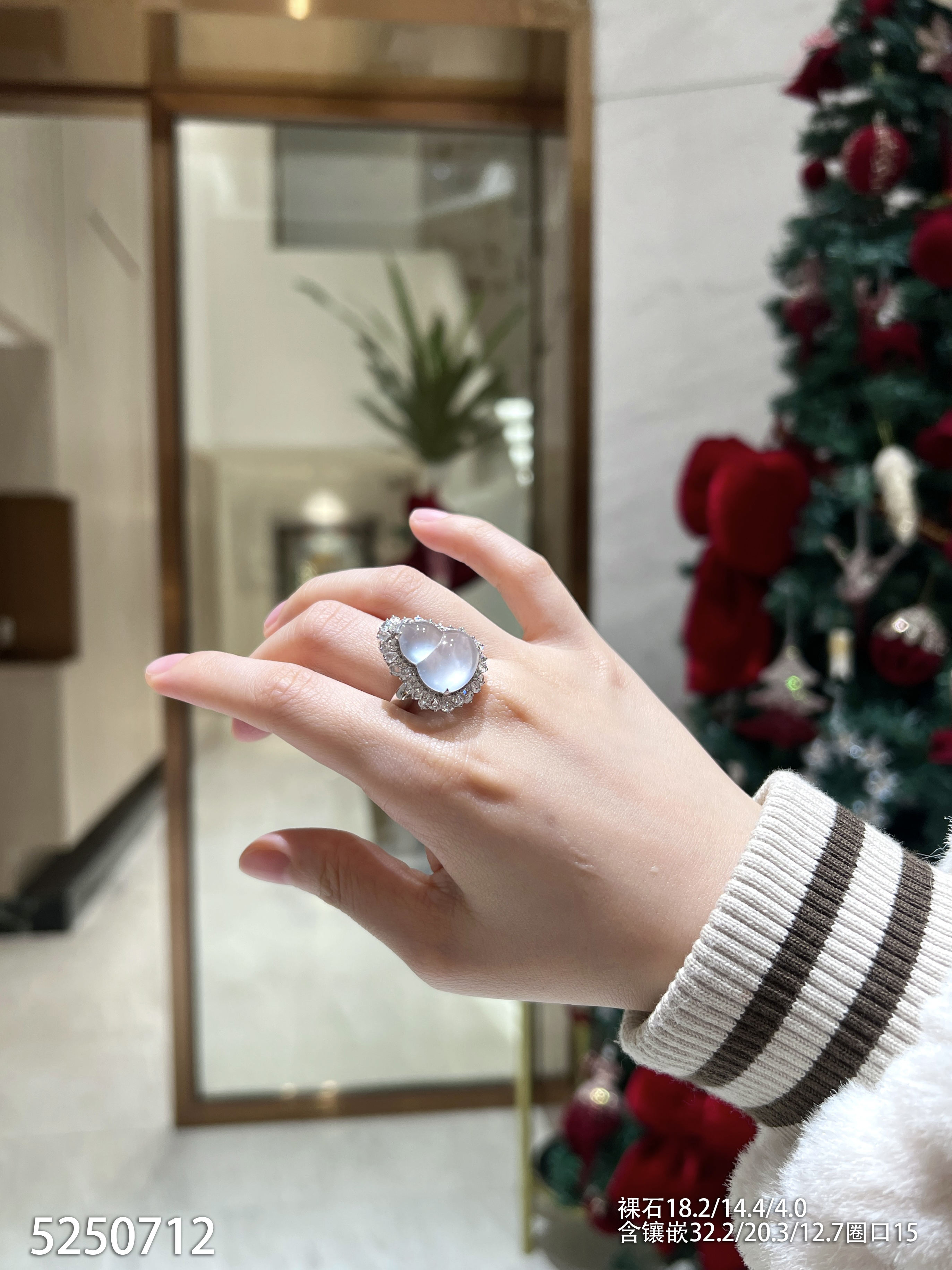 120-1232908,玻璃种木那艳绿蛋面戒指,具体价格微信咨询