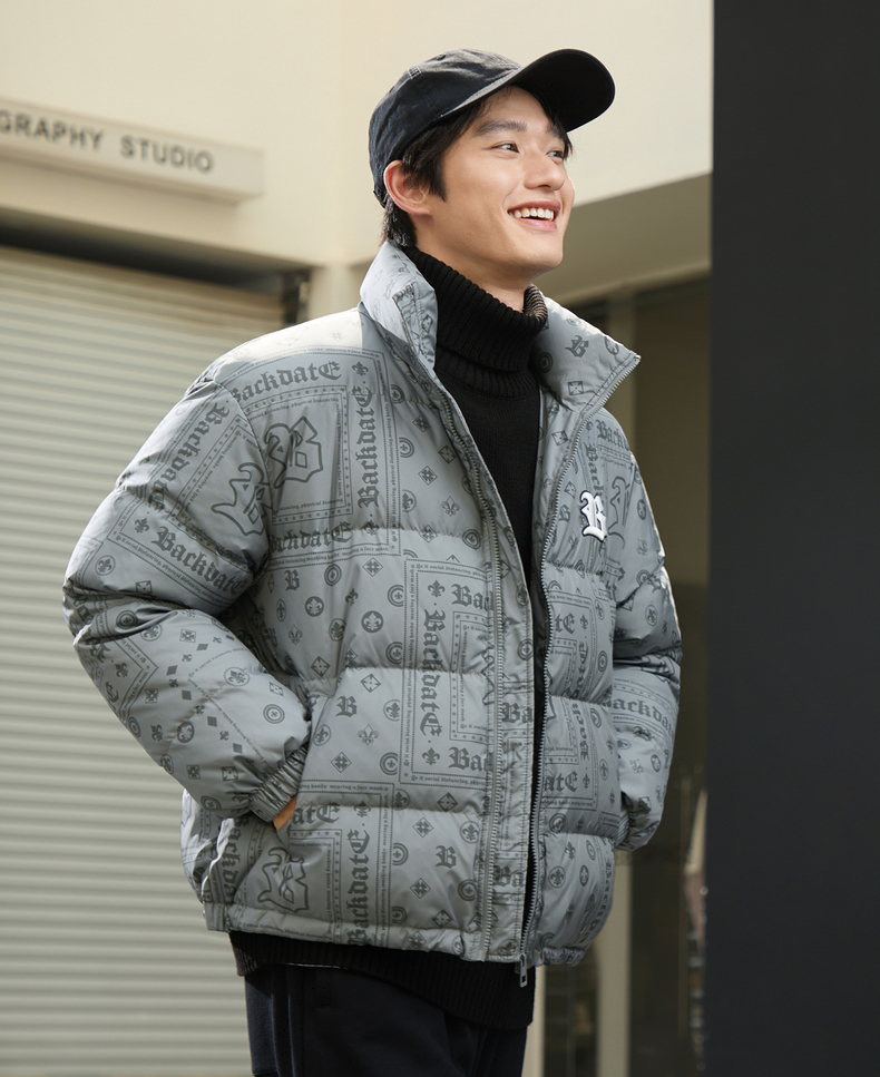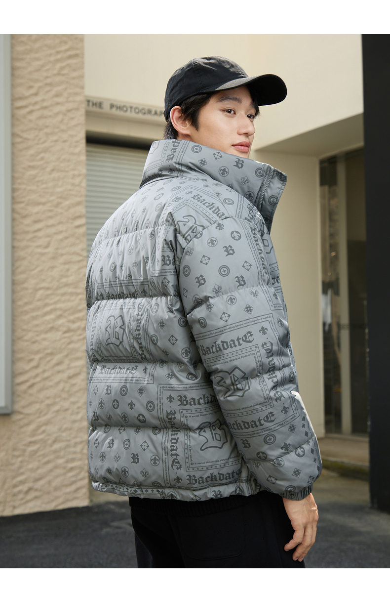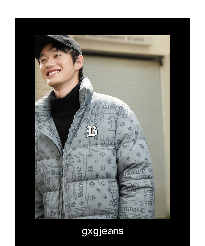 gxg.jeans男装冬季羽绒服个性印花刺绣休闲羽绒服男
