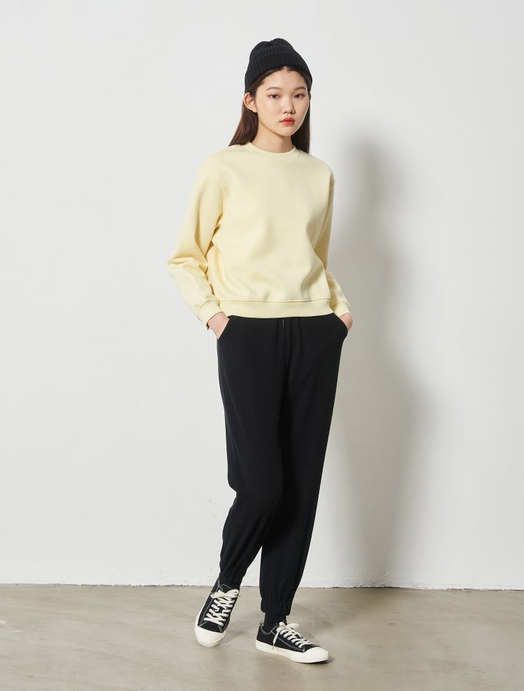 8seconds Black tiger skin thick黄色拉丝实心圆领运动衫女款JPY带授权招加盟代理