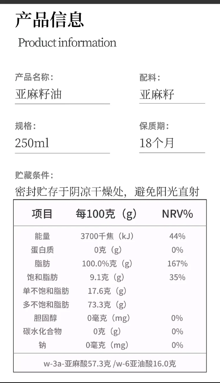 【新品活动:一箱20瓶特价】亚麻籽油