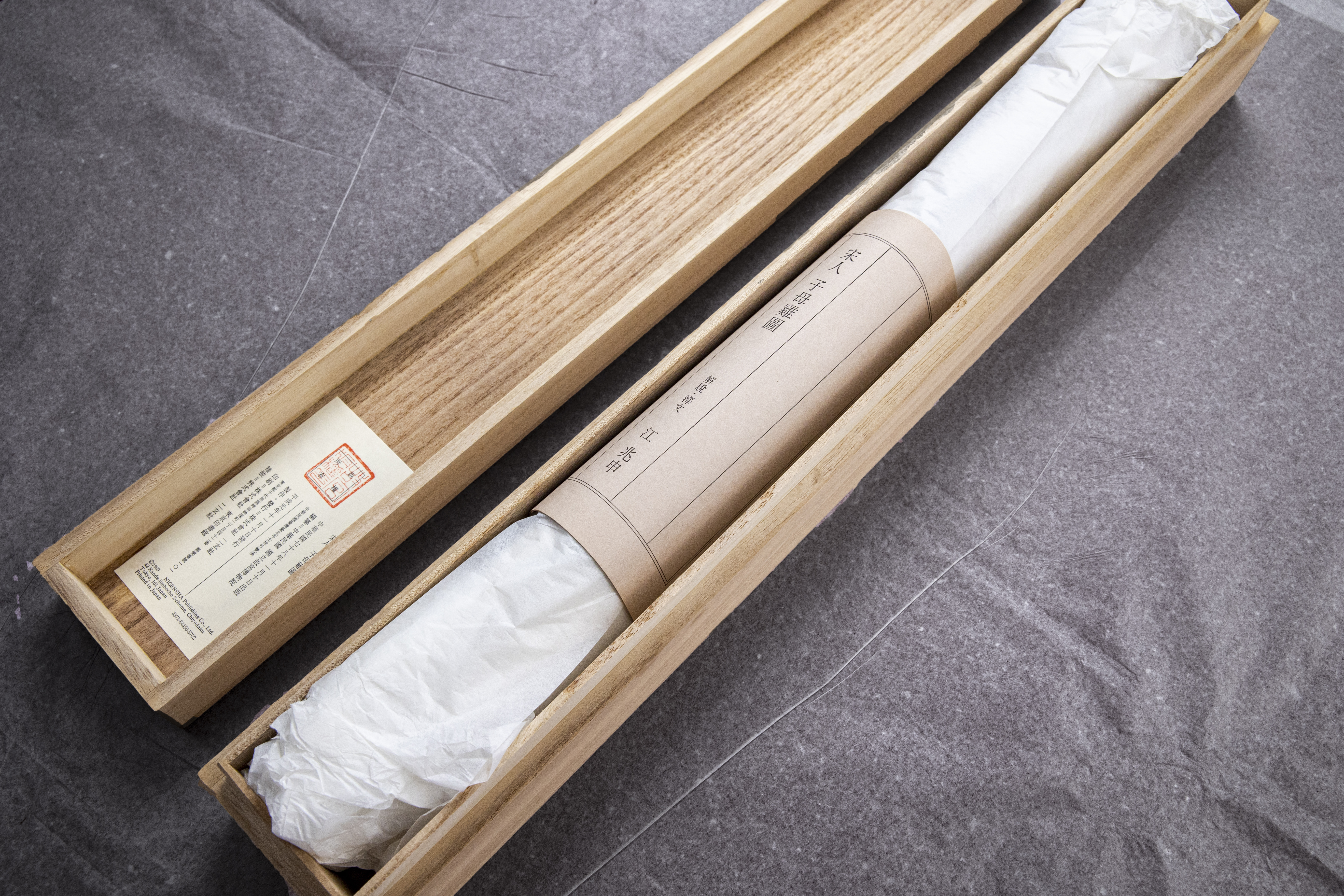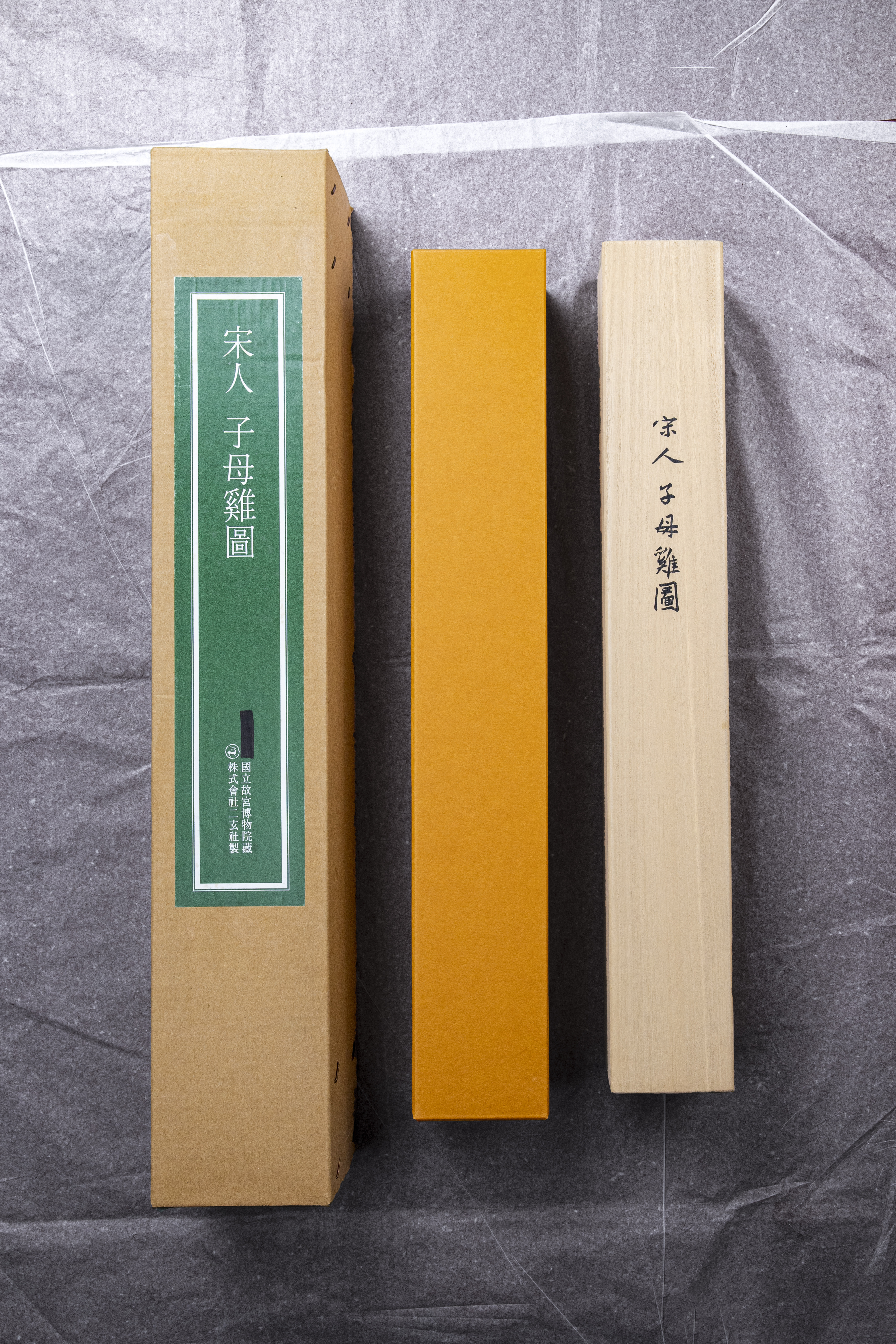 纸、绢、合成纤维等印刷材料的 开始也遇到了极大的困难。以某种西洋纸和非洲进口的特殊原料混合,加入特殊的材料使其产生柔软的感触,另一方面,提高印时的伸缩安定性,进而制成特种纸 材,经过无数次的反复实验终于成功地开发了于原蹟极为相似的印刷素材。在装裱上,从根本上改良了原有的材料和技术。中国书画还是中国式的文人装裱简洁大 方,极力排除了日本传统的装裱方式。方使原蹟逼真地再现。